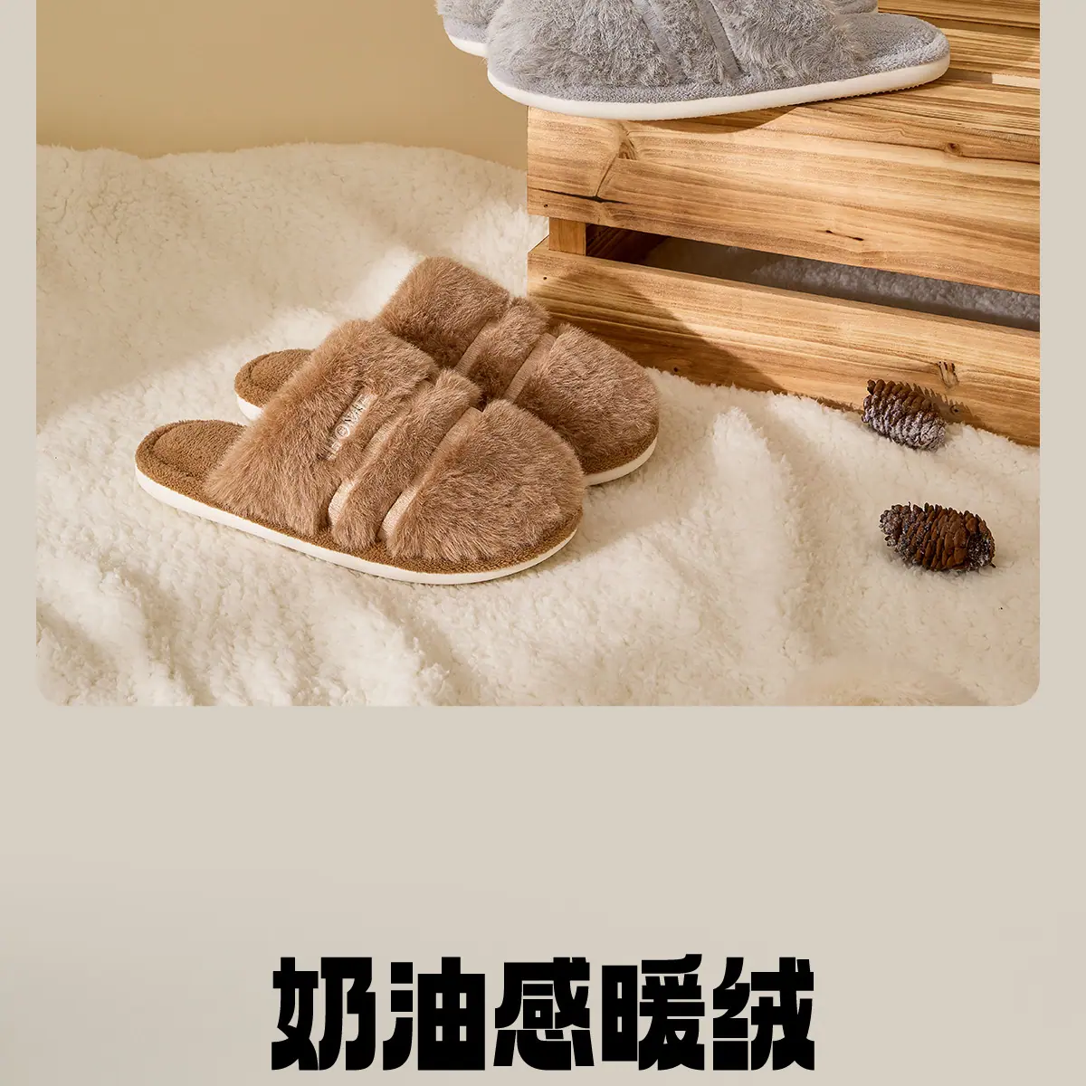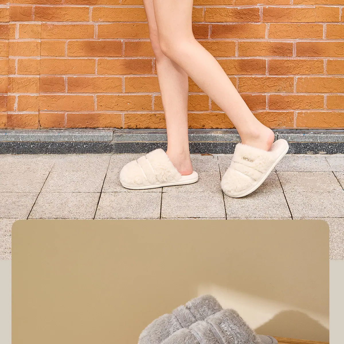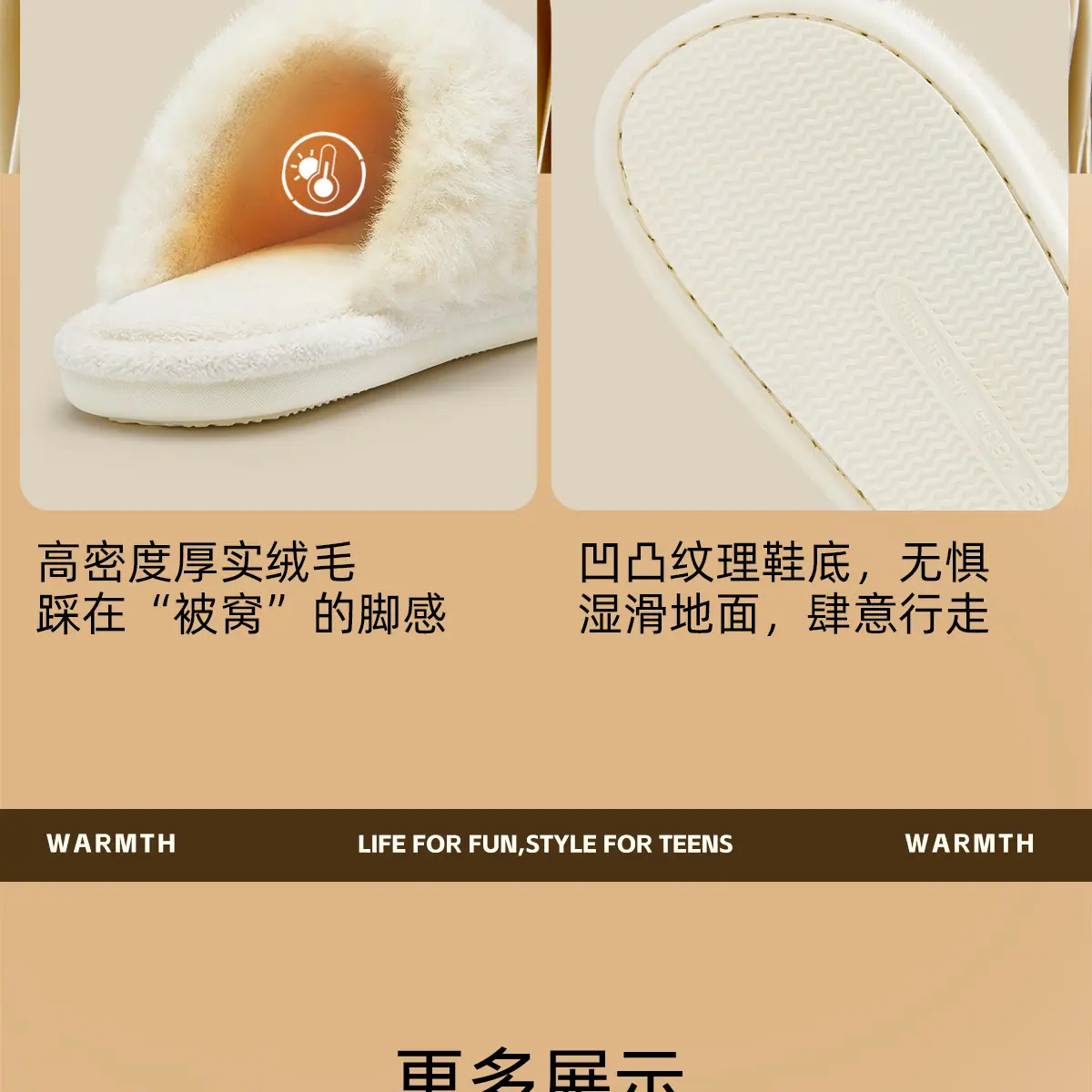 Zapatillas de Algodón Felpa Jie Liya para Mujer Otoño Invierno Más Terciopelo Cálido para Interior Hogar Suela Gruesa Antideslizante para Exterior Zapatillas de Piel para Hombre