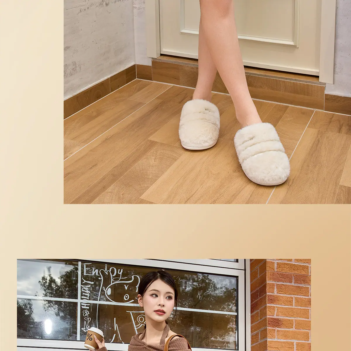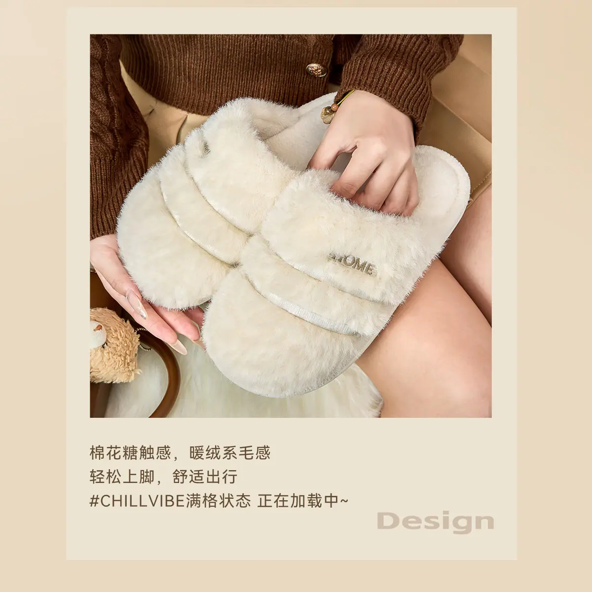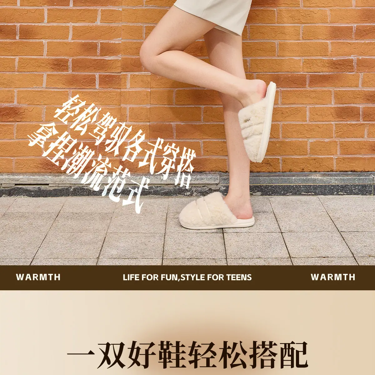 Zapatillas de Algodón Felpa Jie Liya para Mujer Otoño Invierno Más Terciopelo Cálido para Interior Hogar Suela Gruesa Antideslizante para Exterior Zapatillas de Piel para Hombre