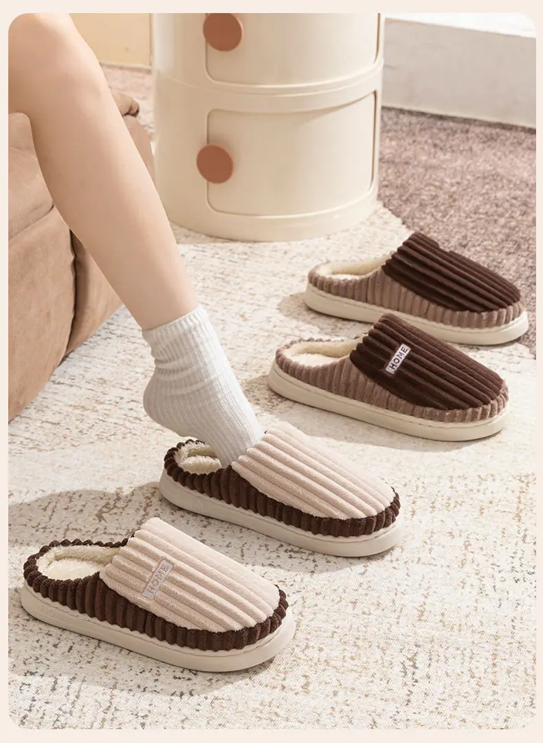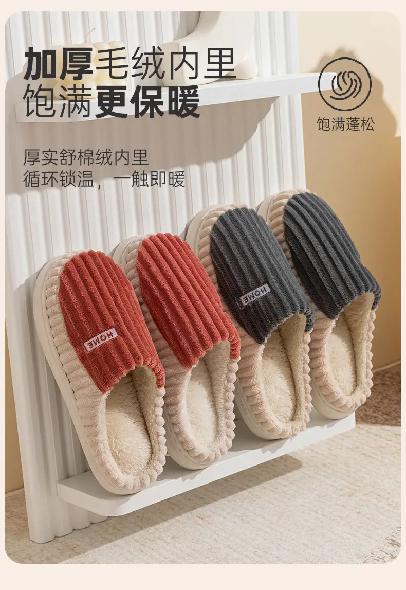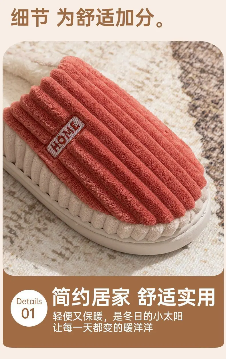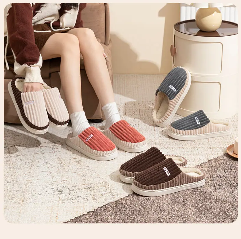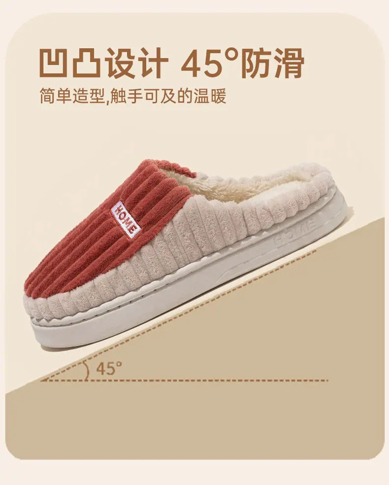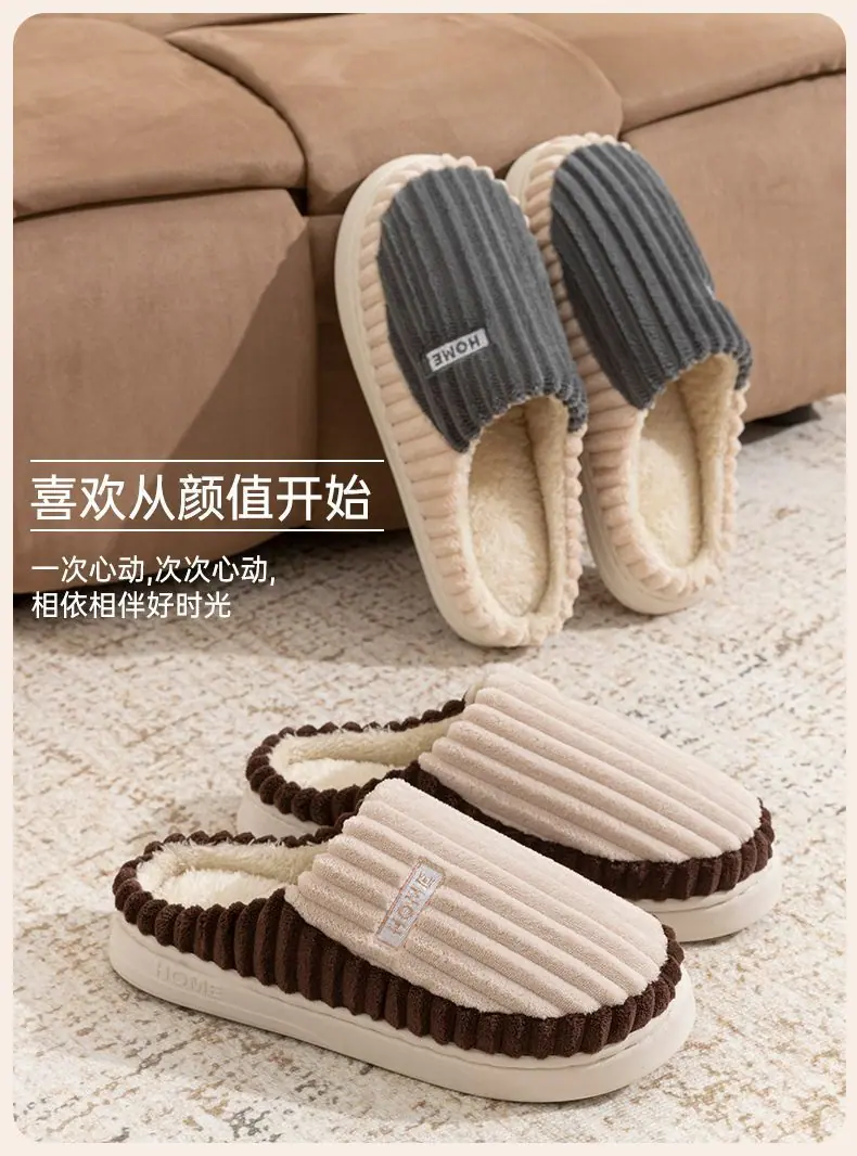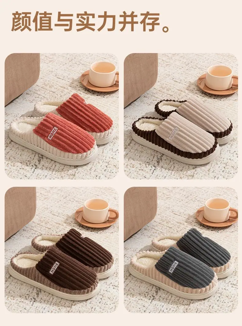Pantuflas de Algodón para Mujer Invierno 2025 Nuevo Estilo Interior Hogar Simple Cálido Felpa Antideslizante Suela Gruesa Pantuflas de Algodón para Hombre
