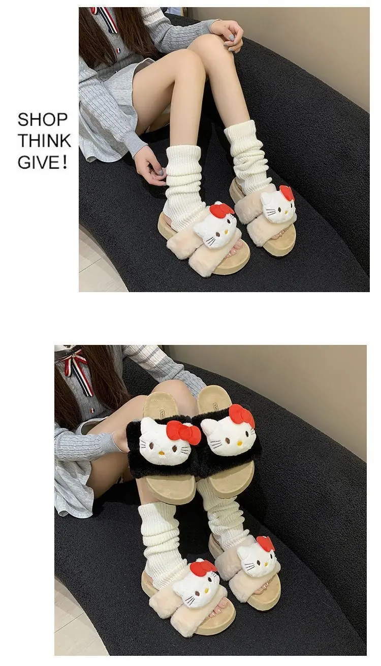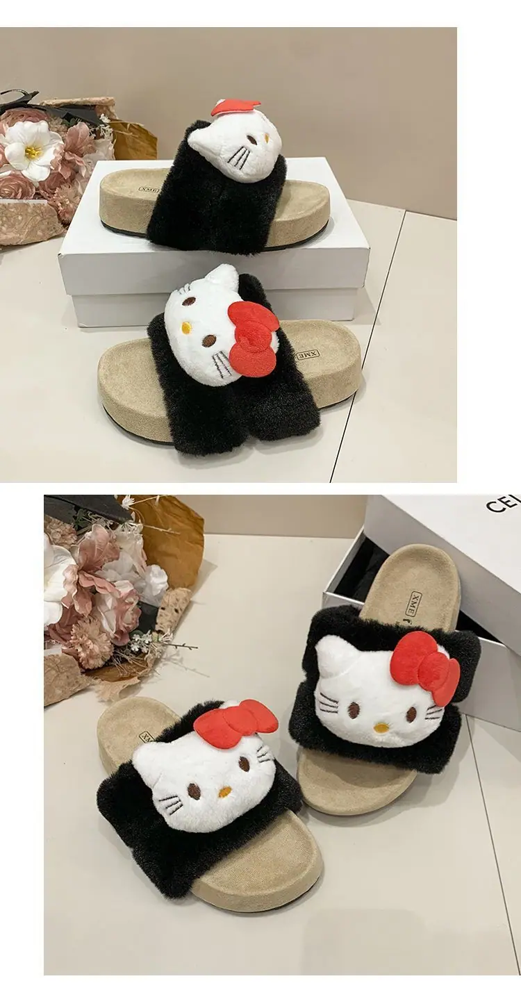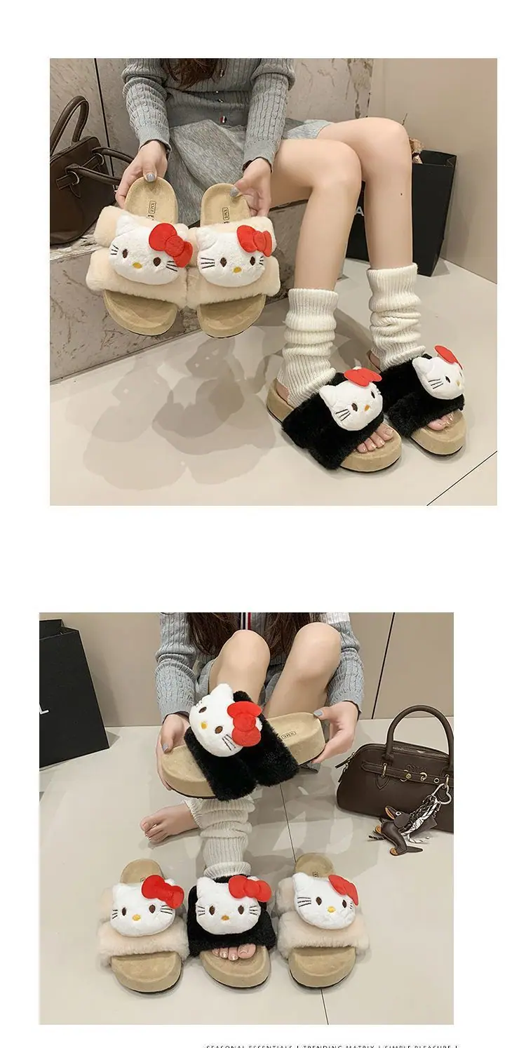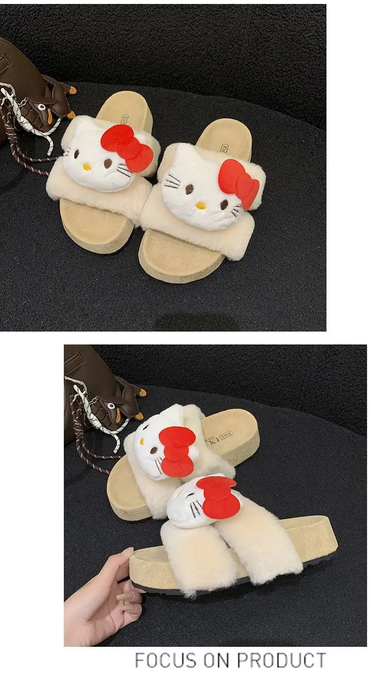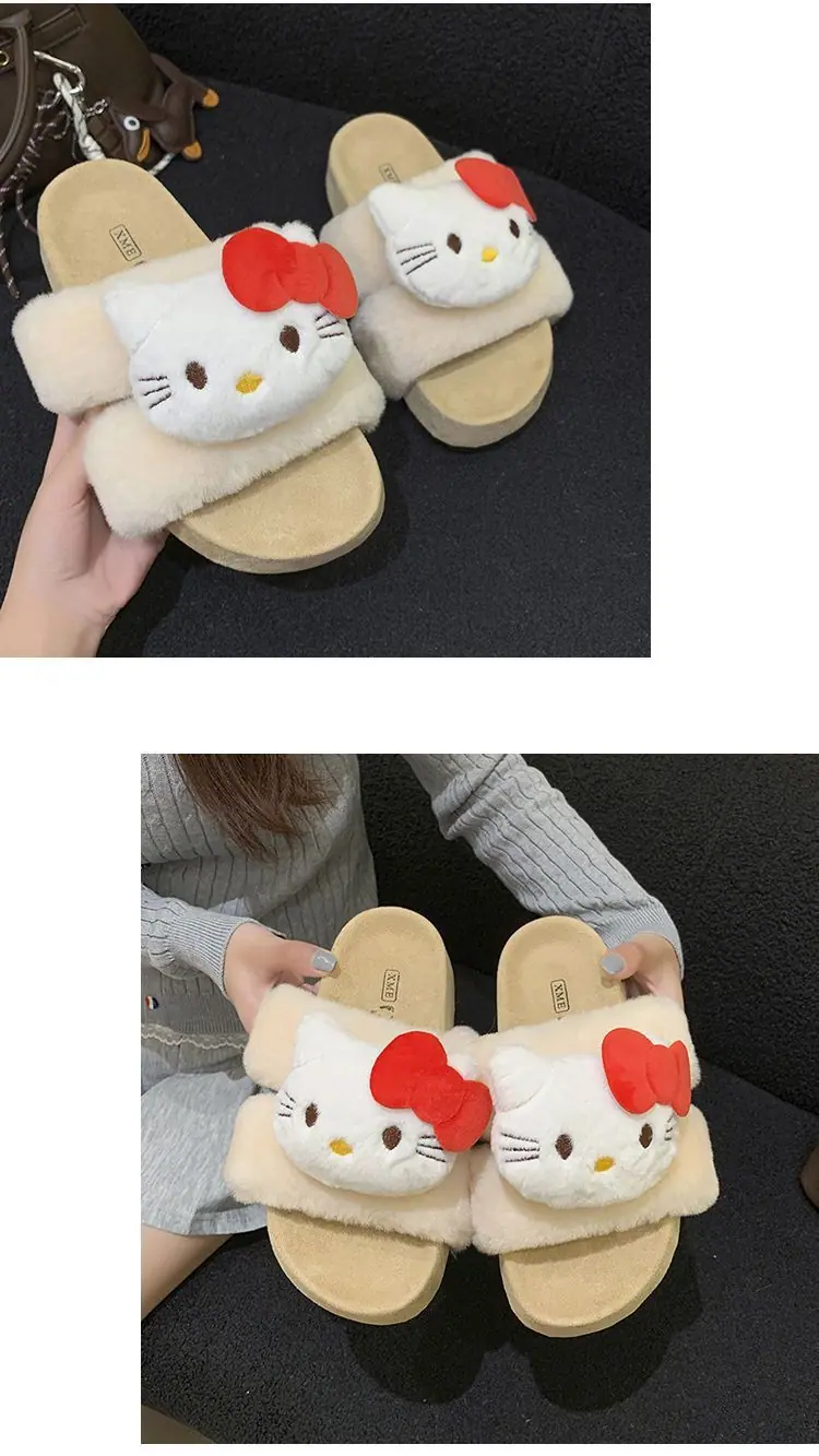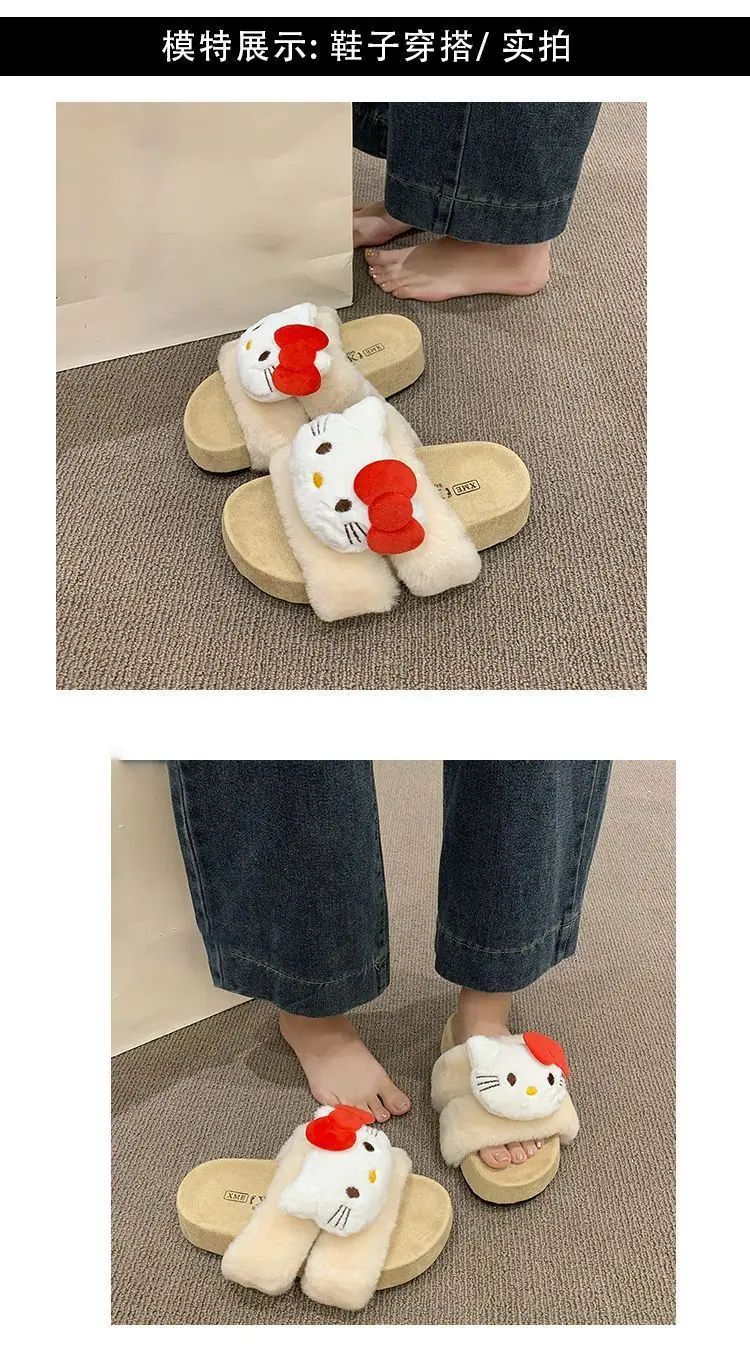 Zapatillas de felpa de algodón con dibujos animados de suela gruesa y elegantes para aumentar la altura, zapatillas peludas rojas de internet para mujer, ropa de exterior 2025 otoño e invierno nuevo