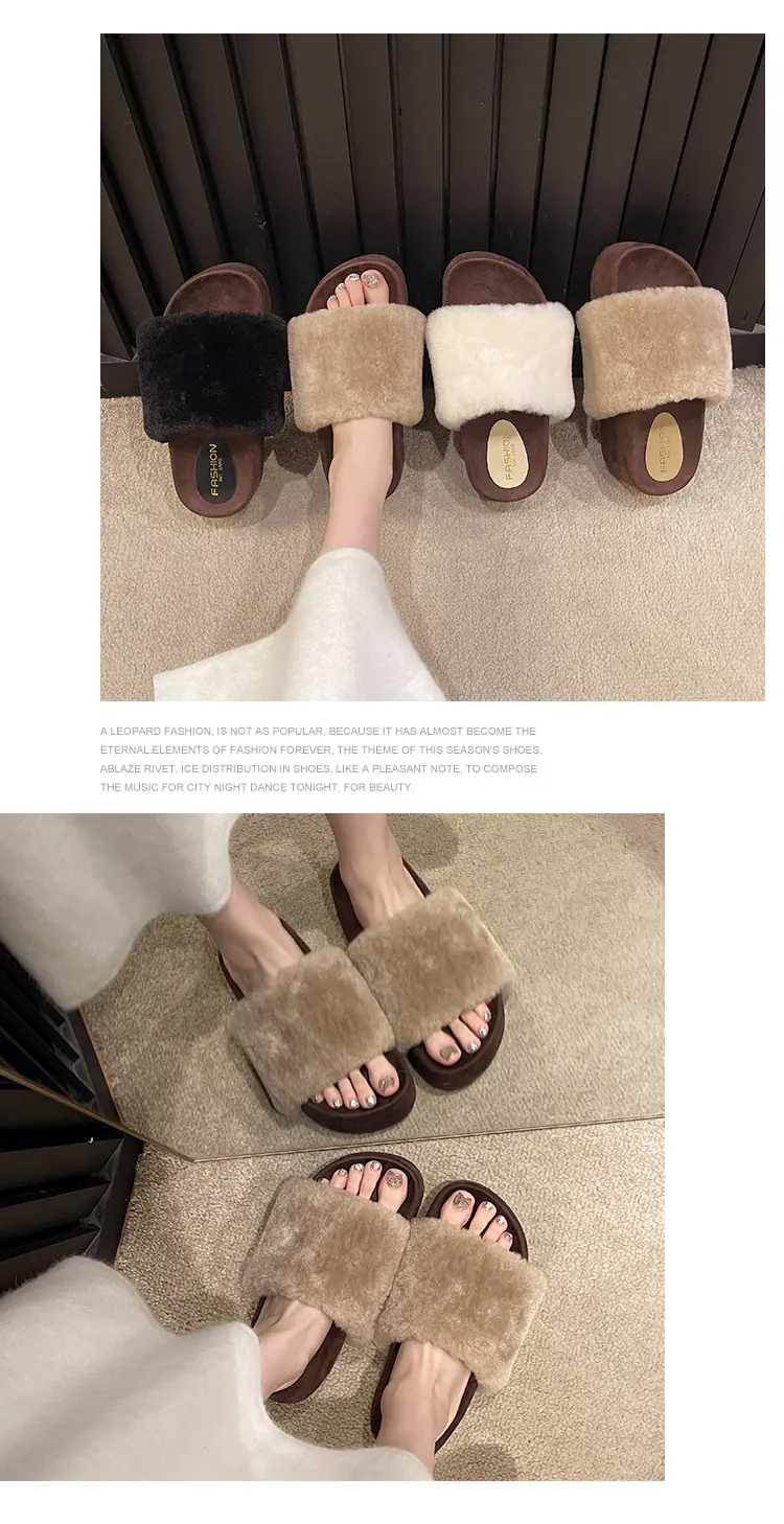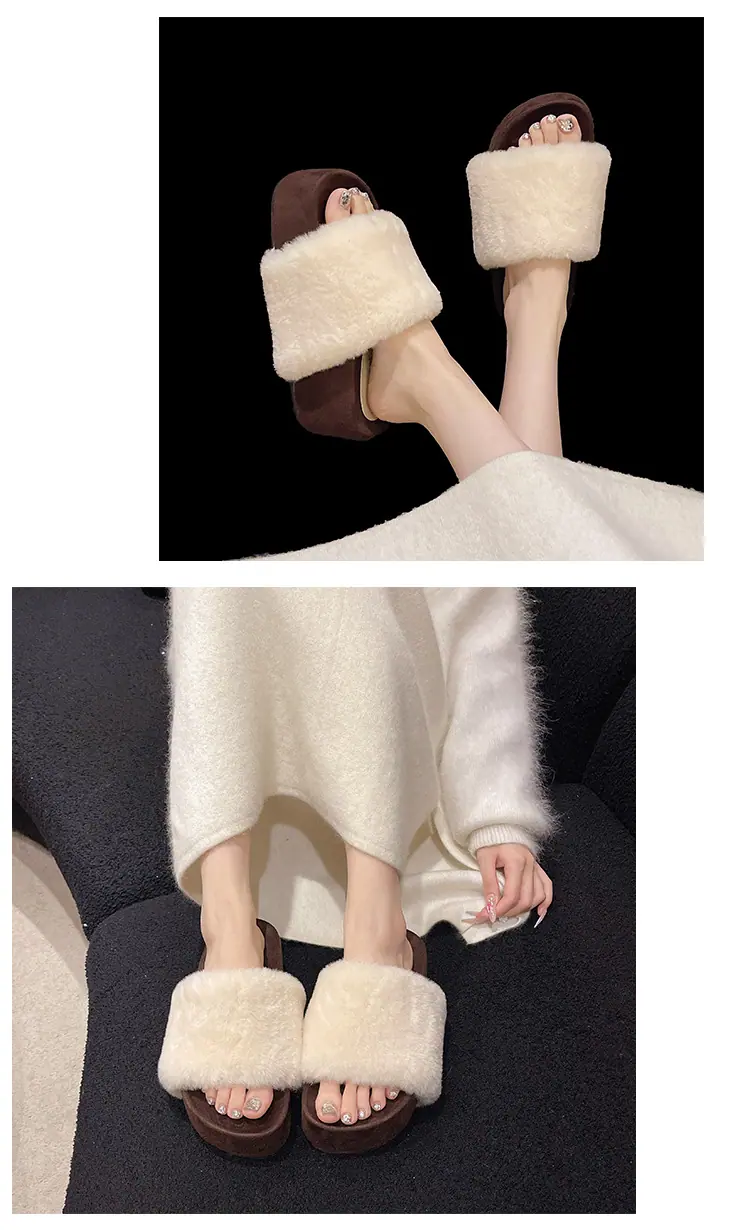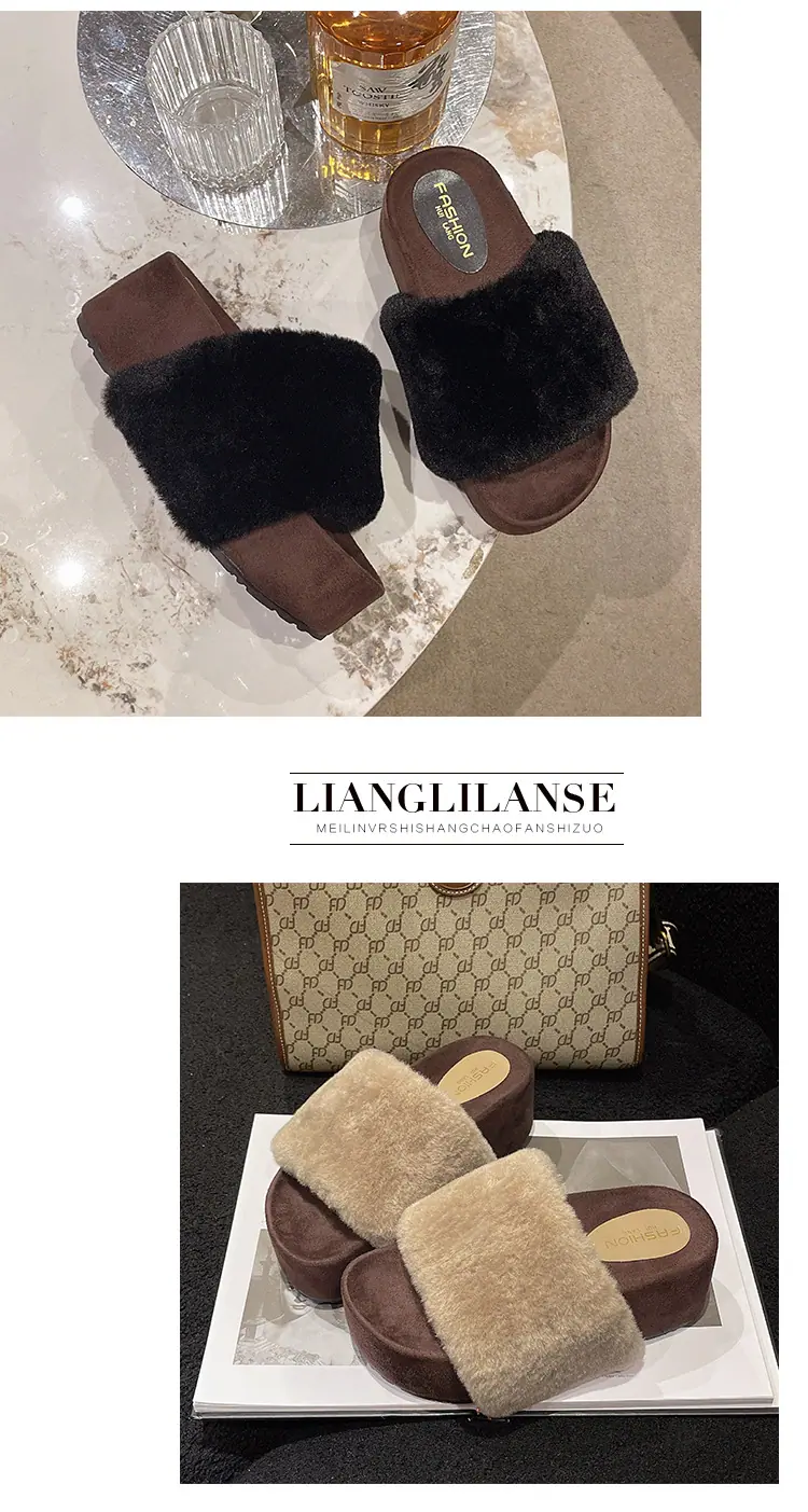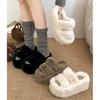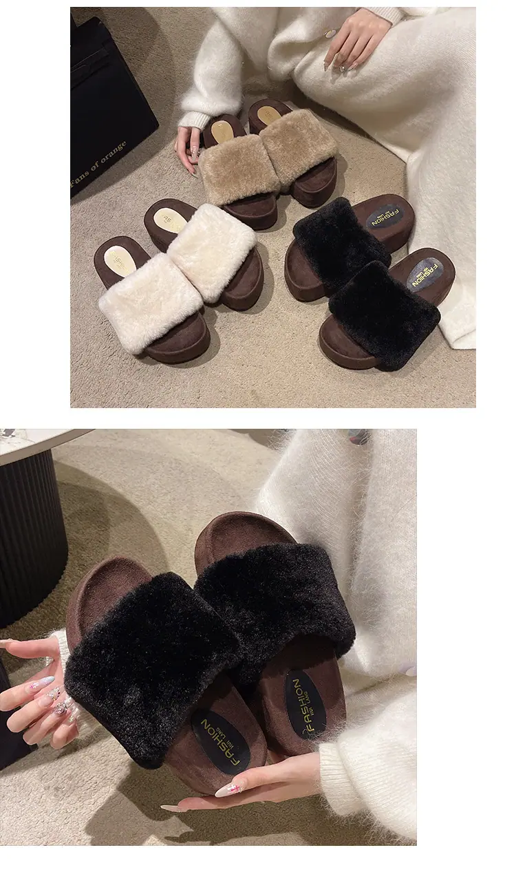 Pantuflas Difusas de Estilo Minimalista 2025 Nuevas Pantuflas de Una Tira para Mujer para Exterior Otoño e Invierno Antideslizantes Cómodas con Plataforma Pantuflas de Algodón para Mujer