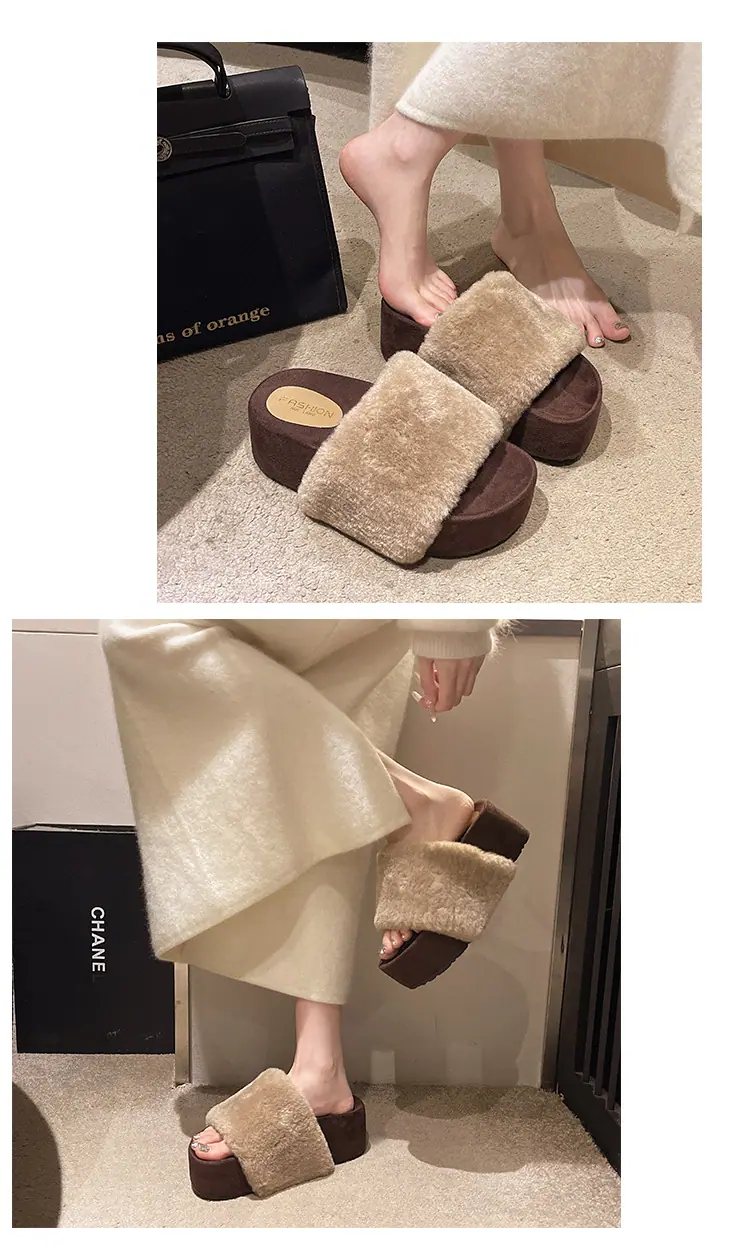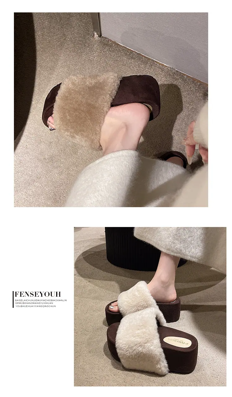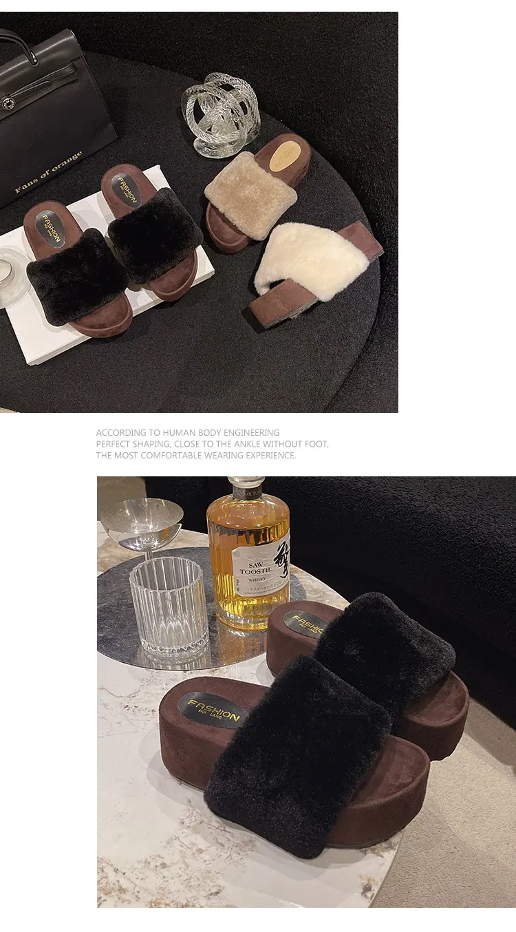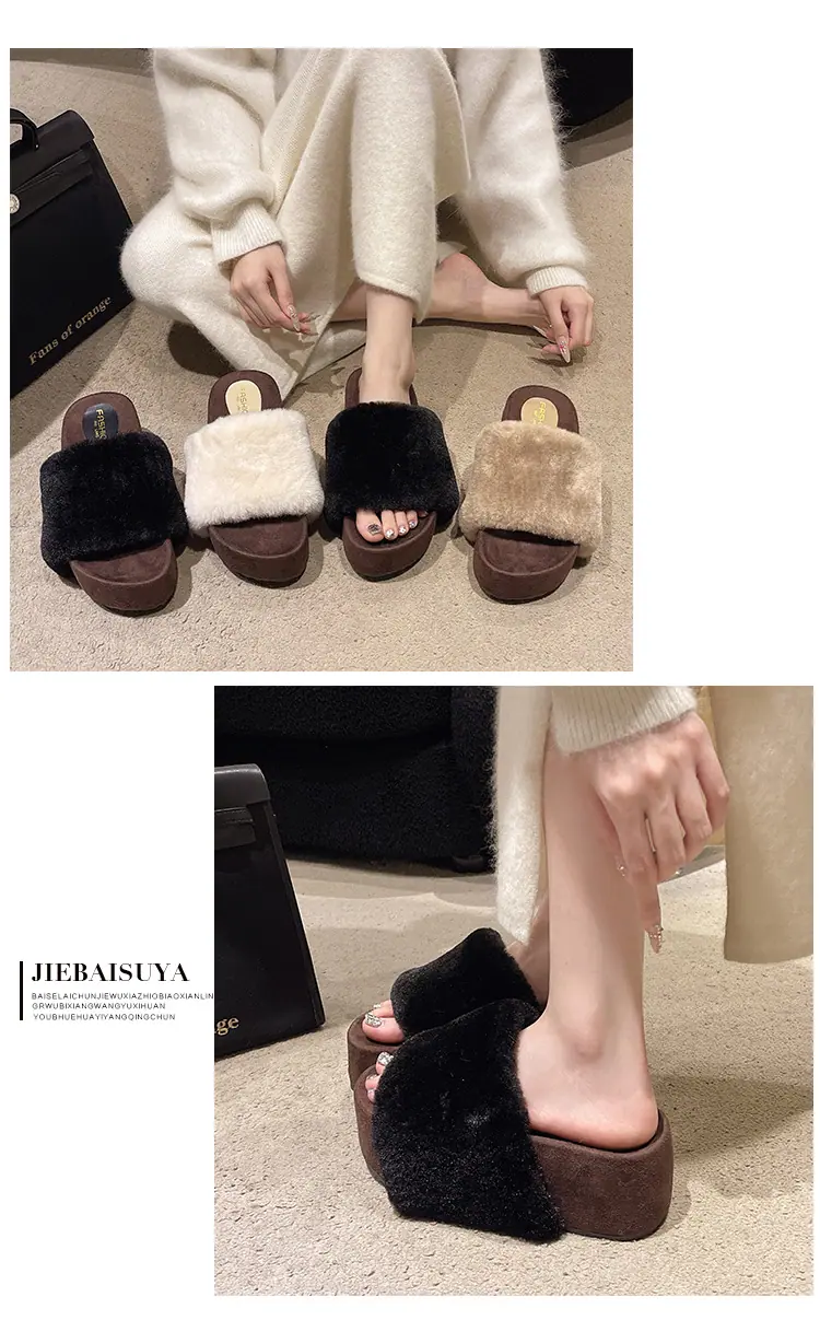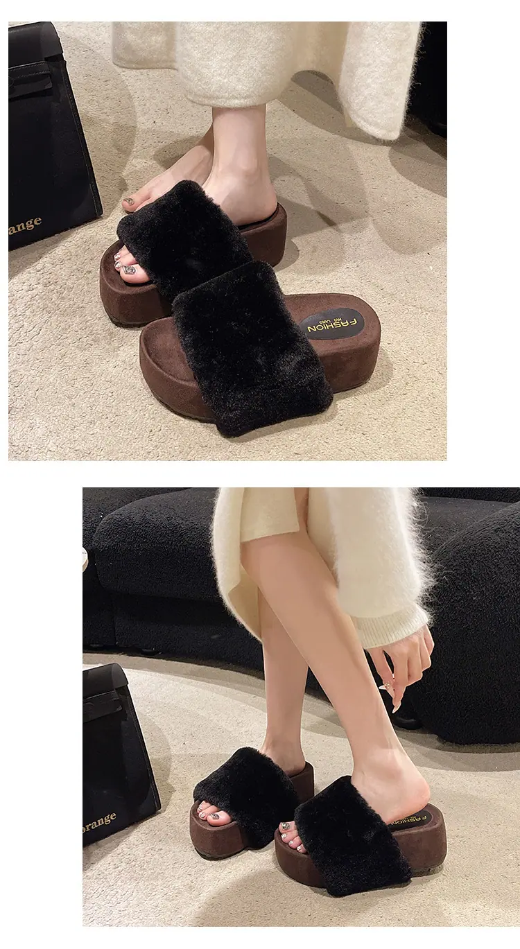 Pantuflas Difusas de Estilo Minimalista 2025 Nuevas Pantuflas de Una Tira para Mujer para Exterior Otoño e Invierno Antideslizantes Cómodas con Plataforma Pantuflas de Algodón para Mujer