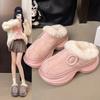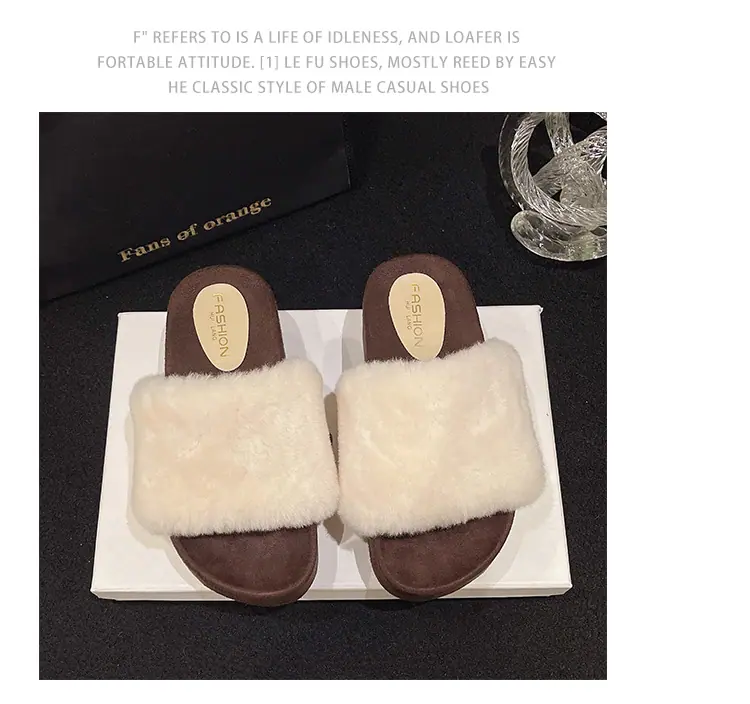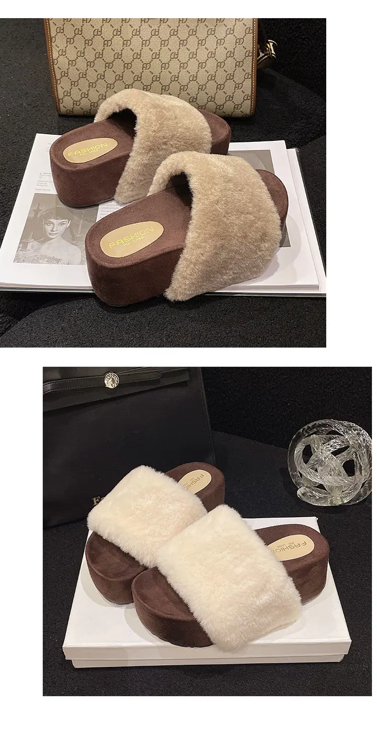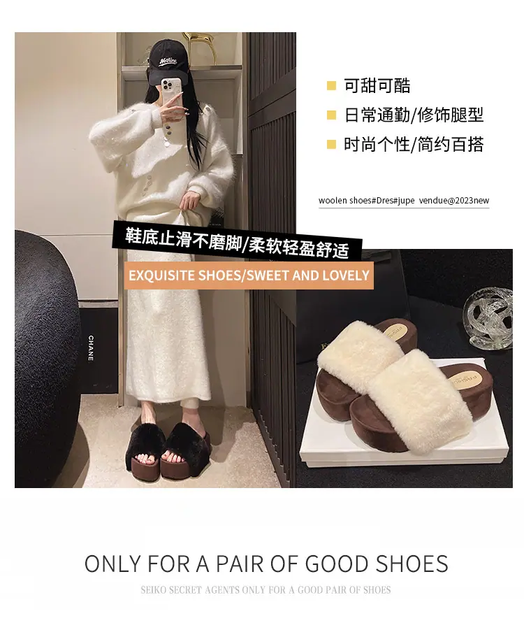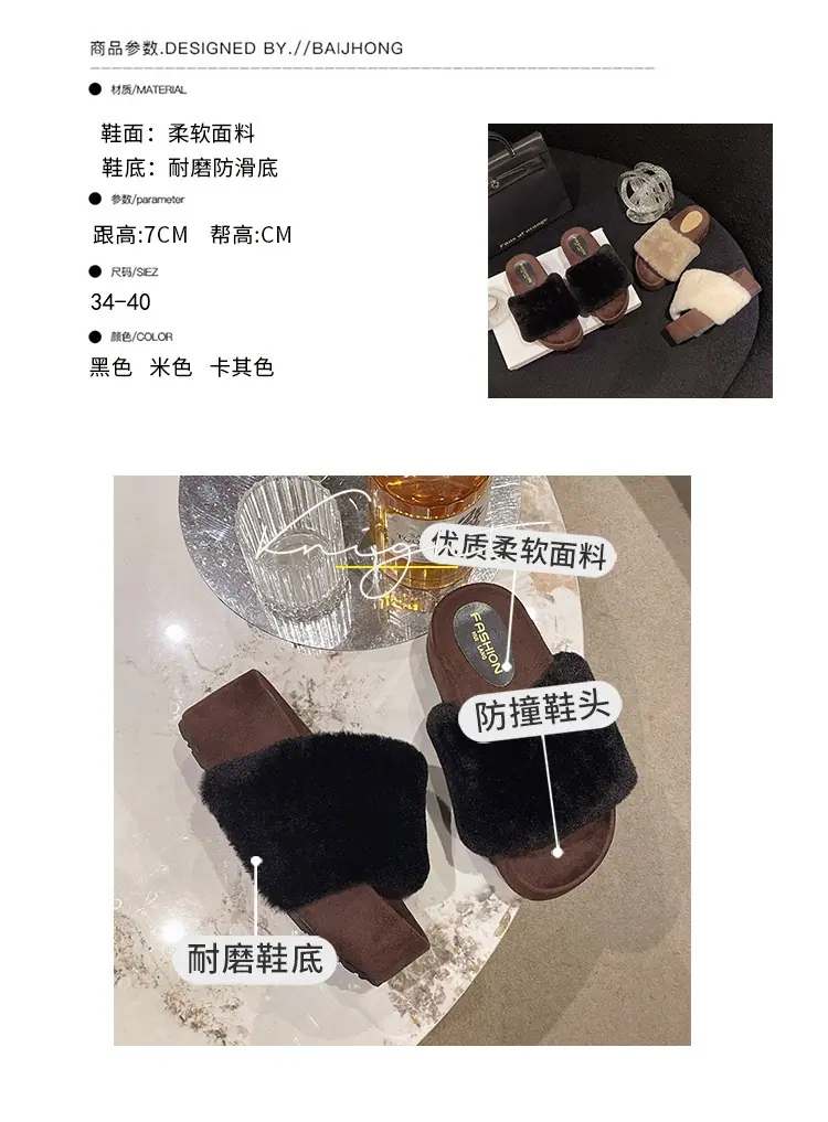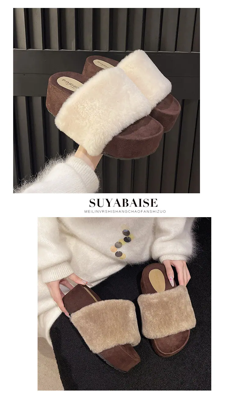 Pantuflas Difusas de Estilo Minimalista 2025 Nuevas Pantuflas de Una Tira para Mujer para Exterior Otoño e Invierno Antideslizantes Cómodas con Plataforma Pantuflas de Algodón para Mujer