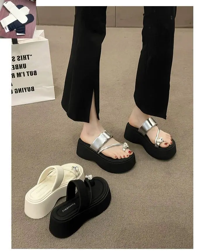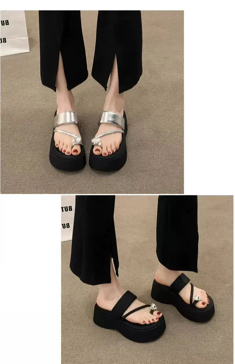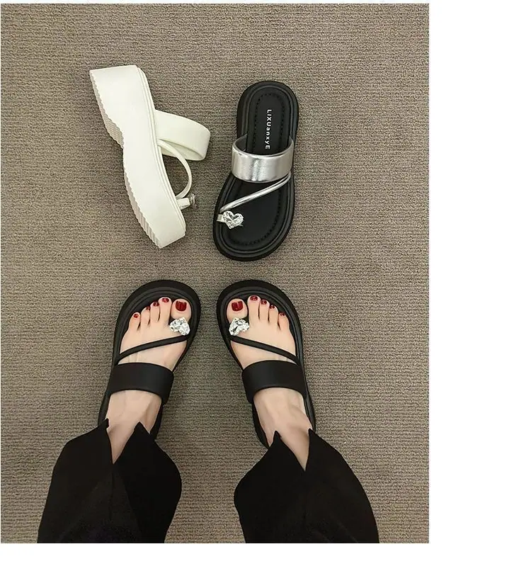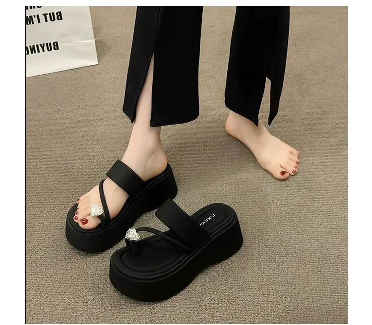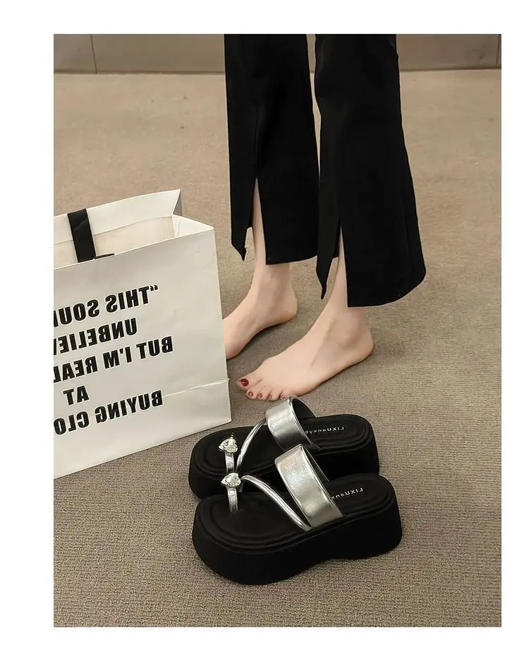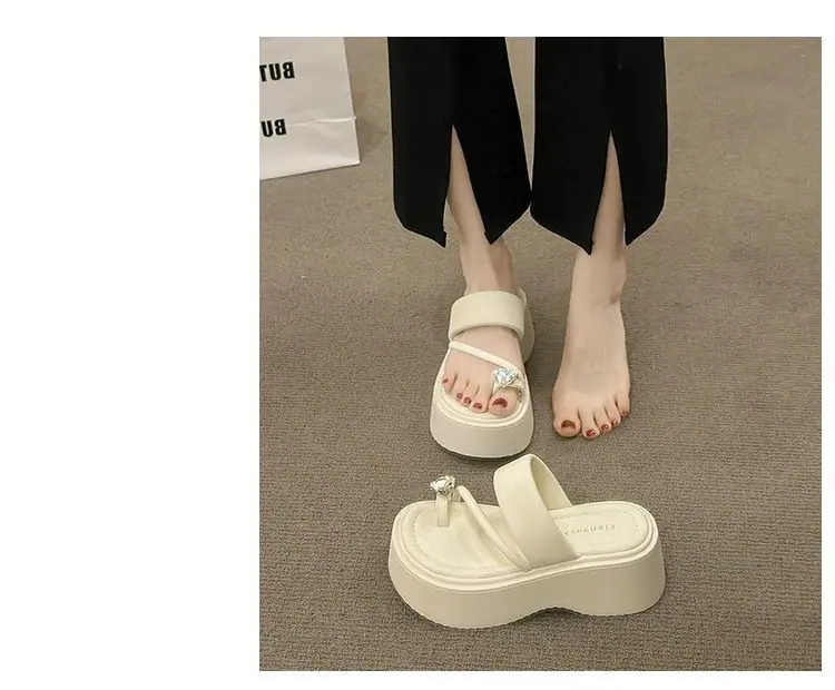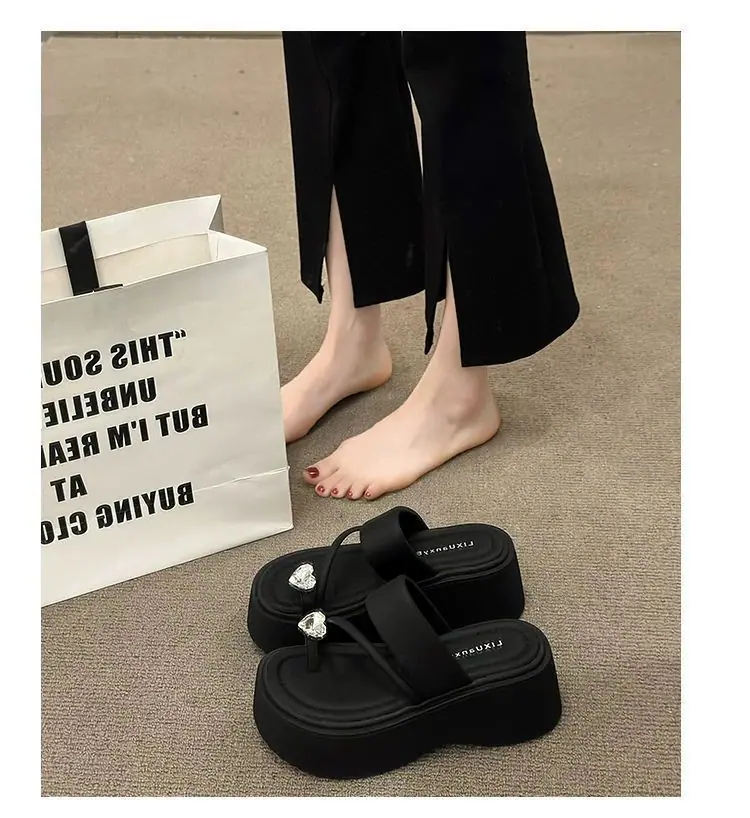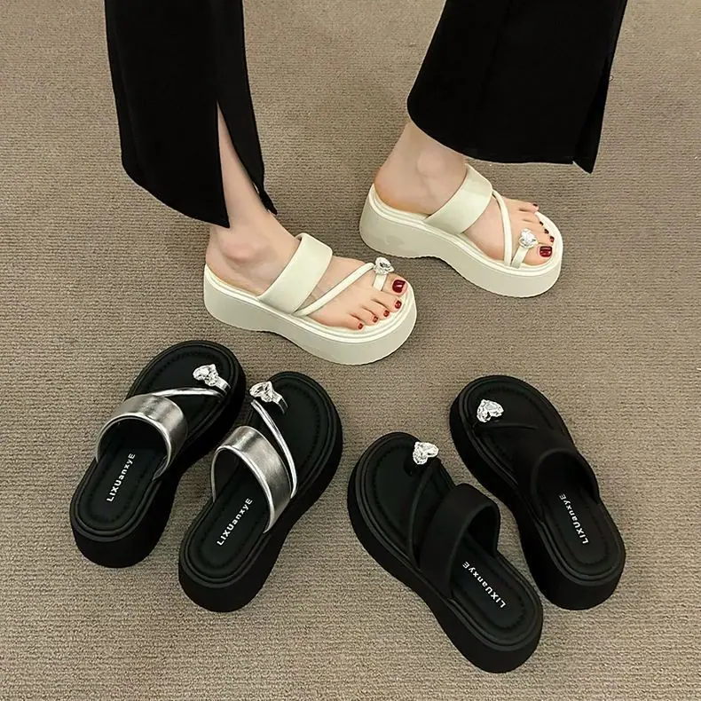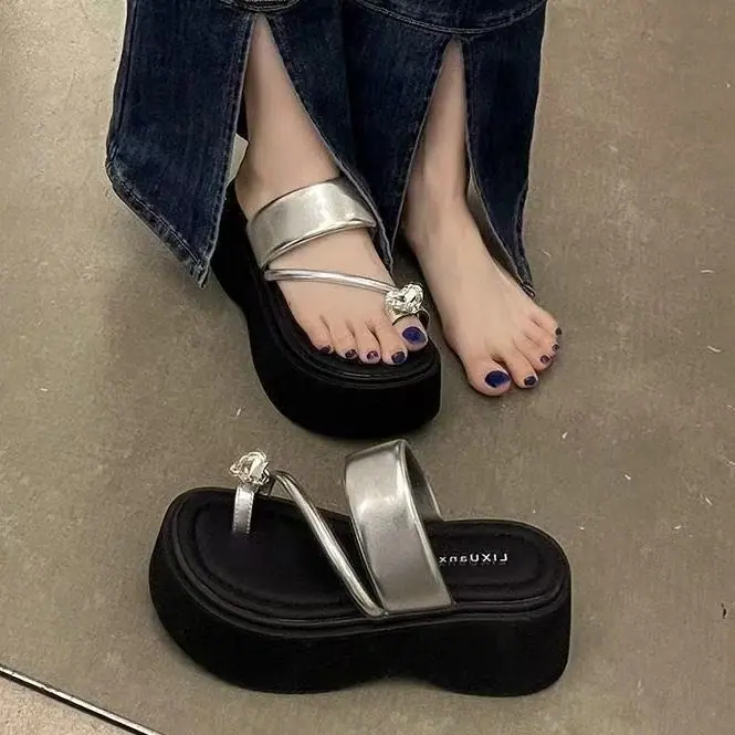 Sandalias populares de plataforma con pedrería para mujeres bajas para aumentar la altura, sandalias y pantuflas de moda nueva para mujer para el verano de 2025