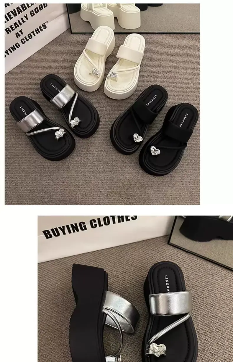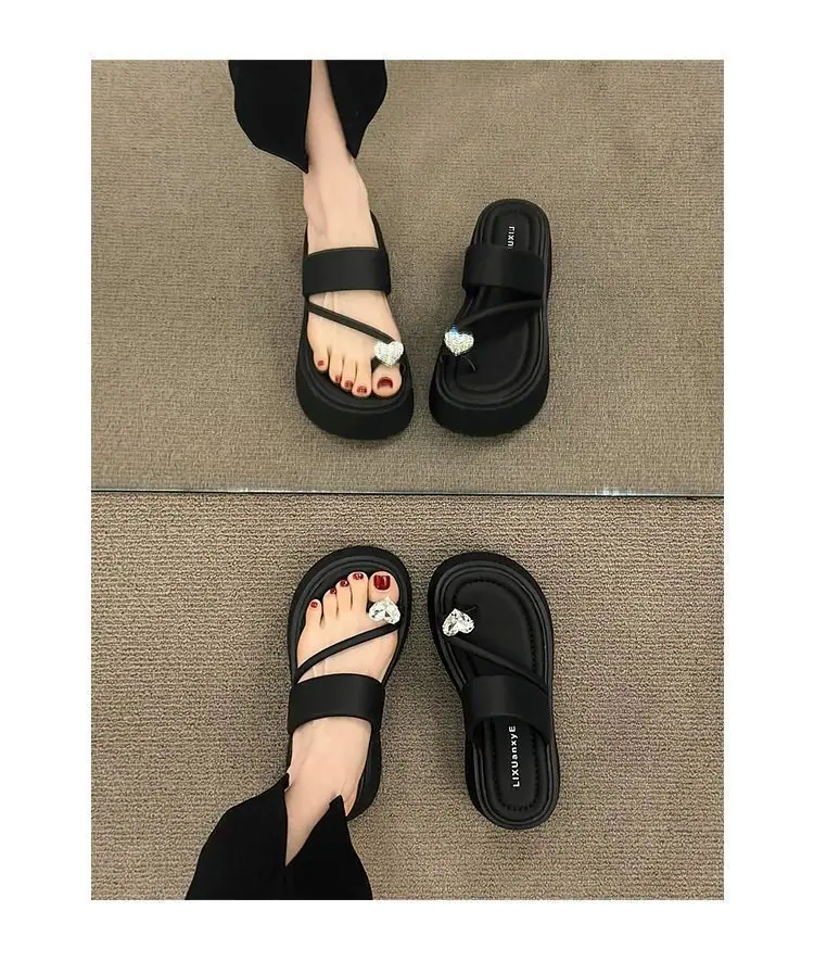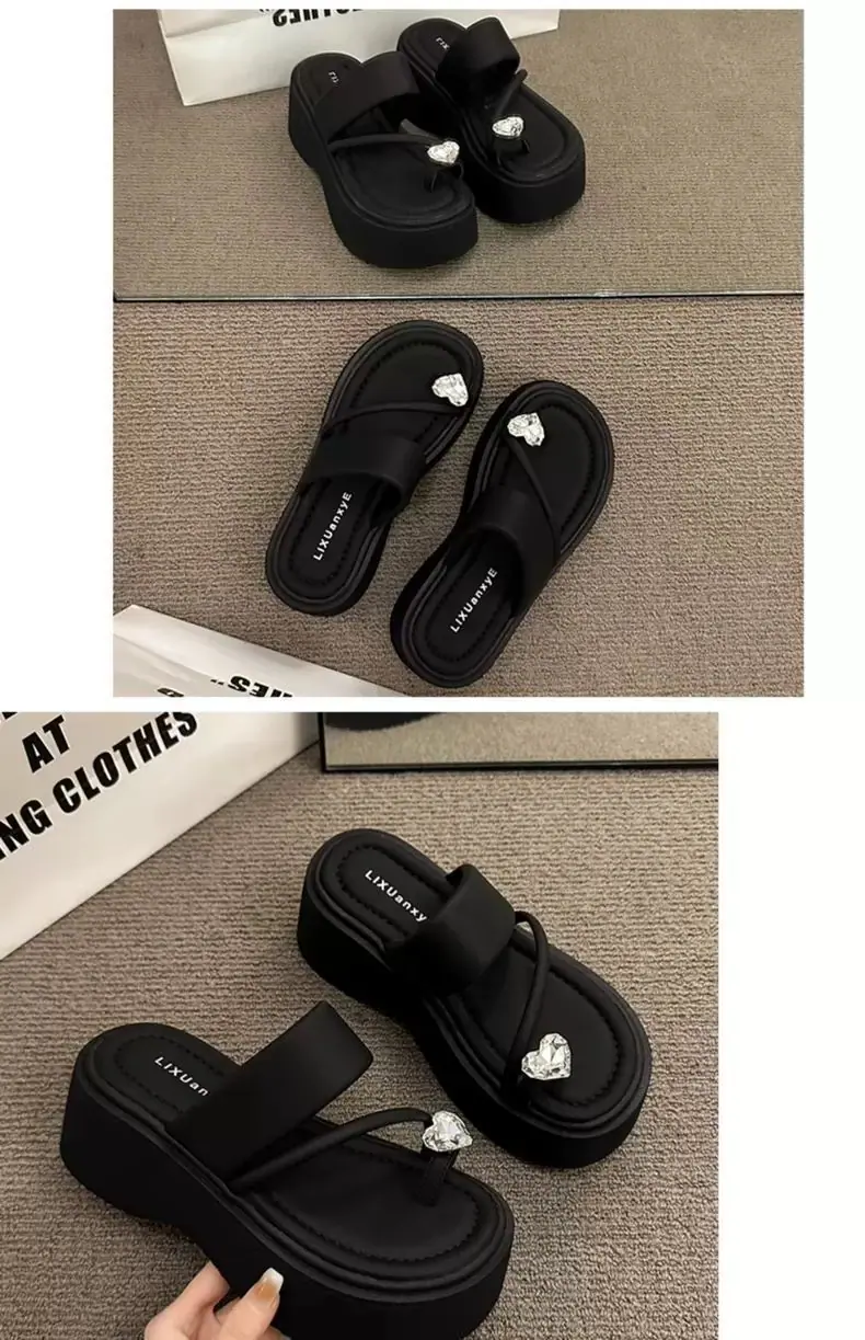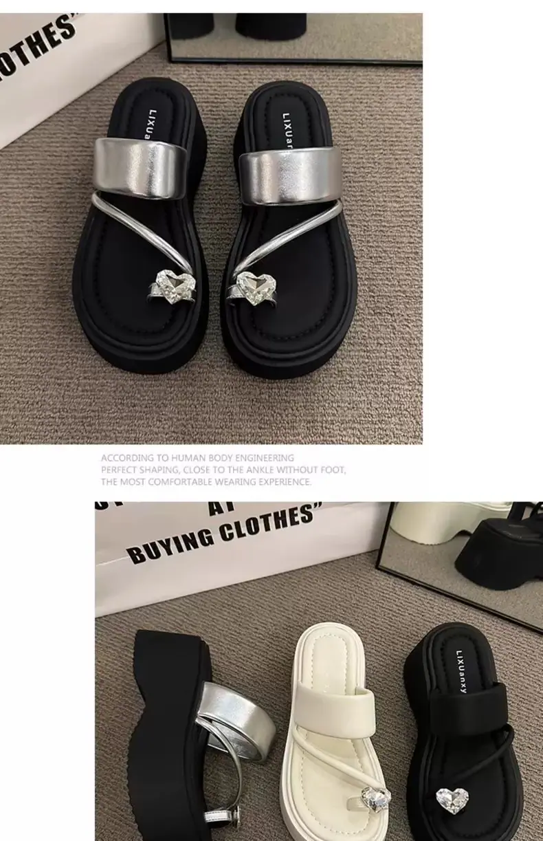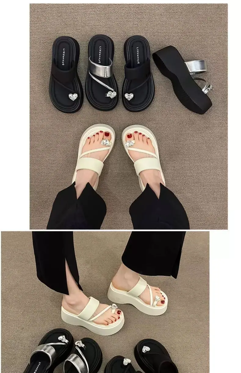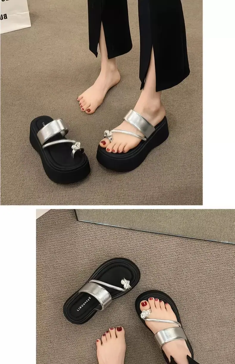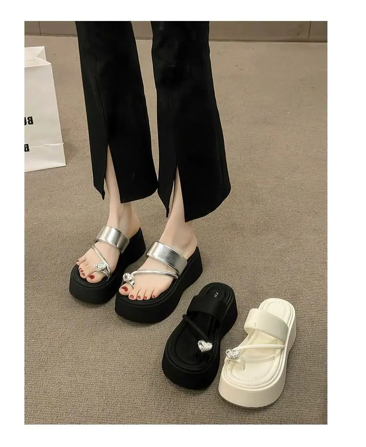 Sandalias populares de plataforma con pedrería para mujeres bajas para aumentar la altura, sandalias y pantuflas de moda nueva para mujer para el verano de 2025