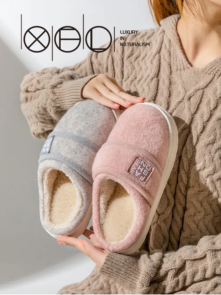 Pantuflas de Algodón para Mujer Invierno 2025 Nuevas para Interior Hogar Cálidas de Suela Gruesa Peludas para Casa Parejas Hombres