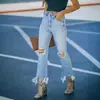 Amazon Aliexpress Jeans para Mujer Estilo Europeo y Americano Rasgados Hasta la Rodilla Cintura Alta Pantalones Largos Venta Directa de Fábrica para Mujer