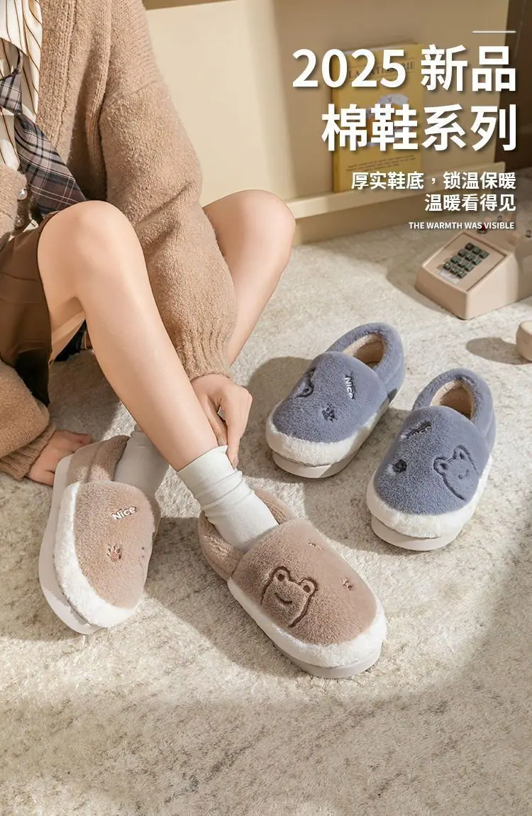 Pantuflas de Algodón para Hombre Otoño e Invierno para Interior Hogar Antideslizantes Suela Gruesa Cálidas Esponjosas de Felpa Pantuflas de Algodón 2025 Nuevo Estilo Sensación de Pisar Mierda