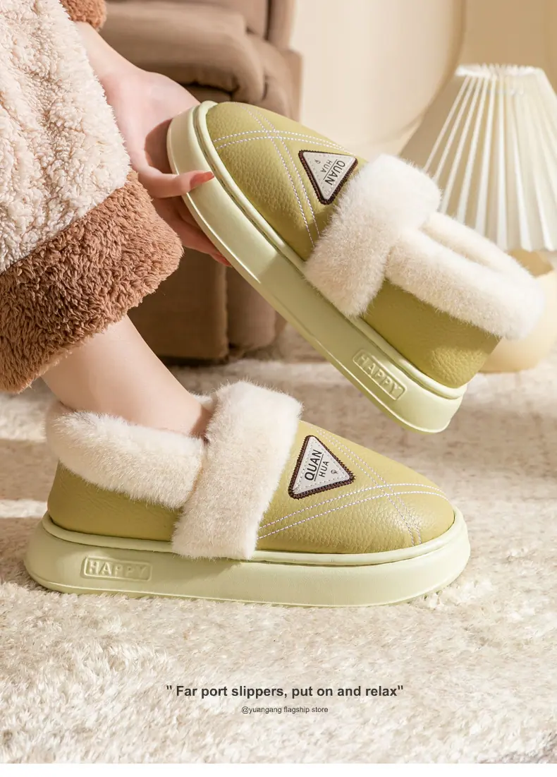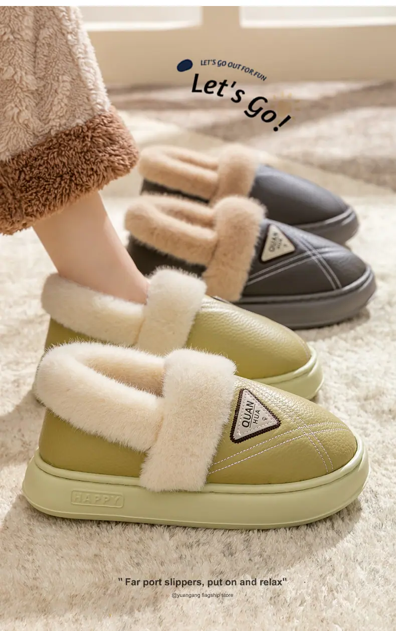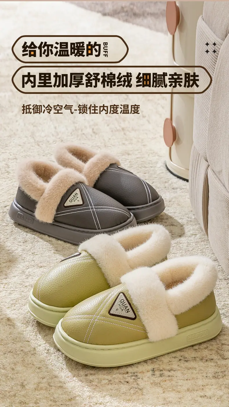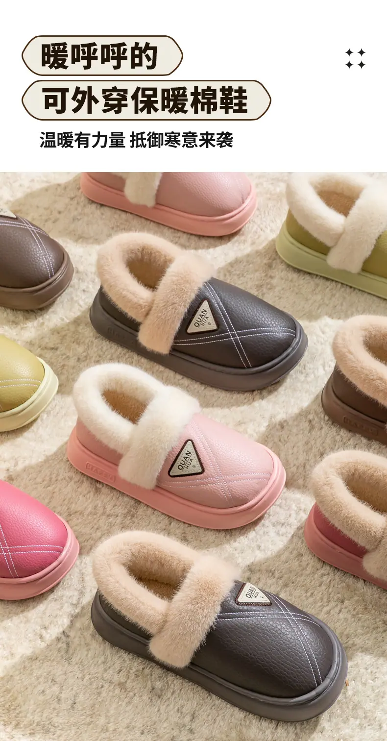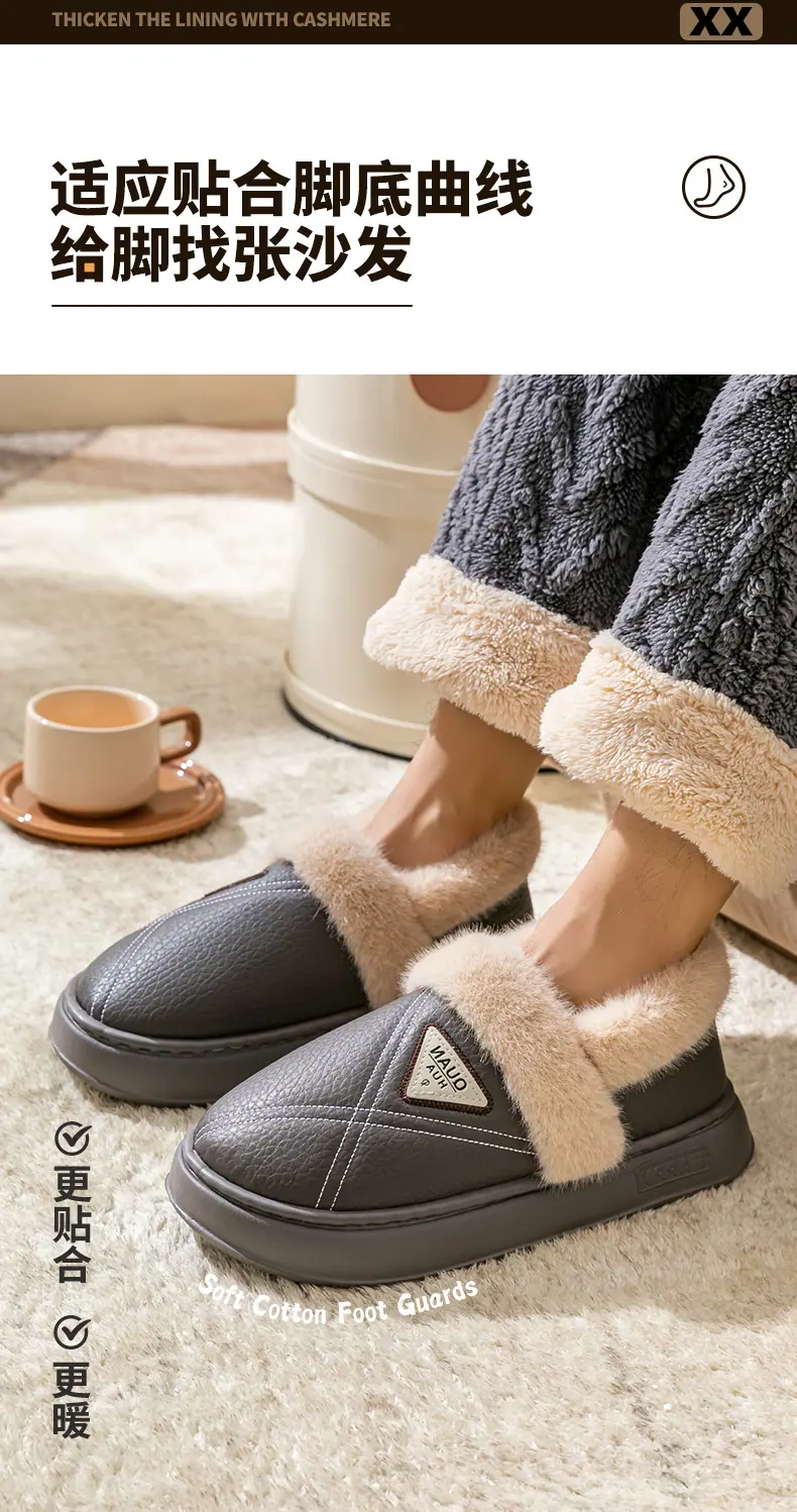 Bolsa impermeable y pantuflas de algodón para hombre invierno 2025 nuevo estilo interior para el hogar suela gruesa antideslizante resistente al olor cálido más terciopelo zapatos de algodón