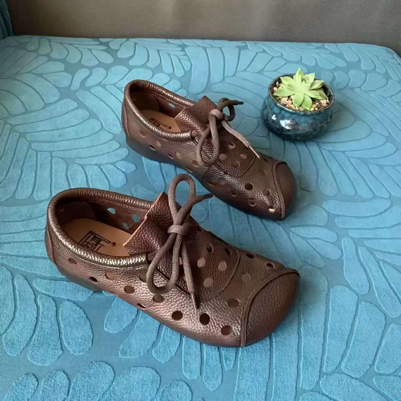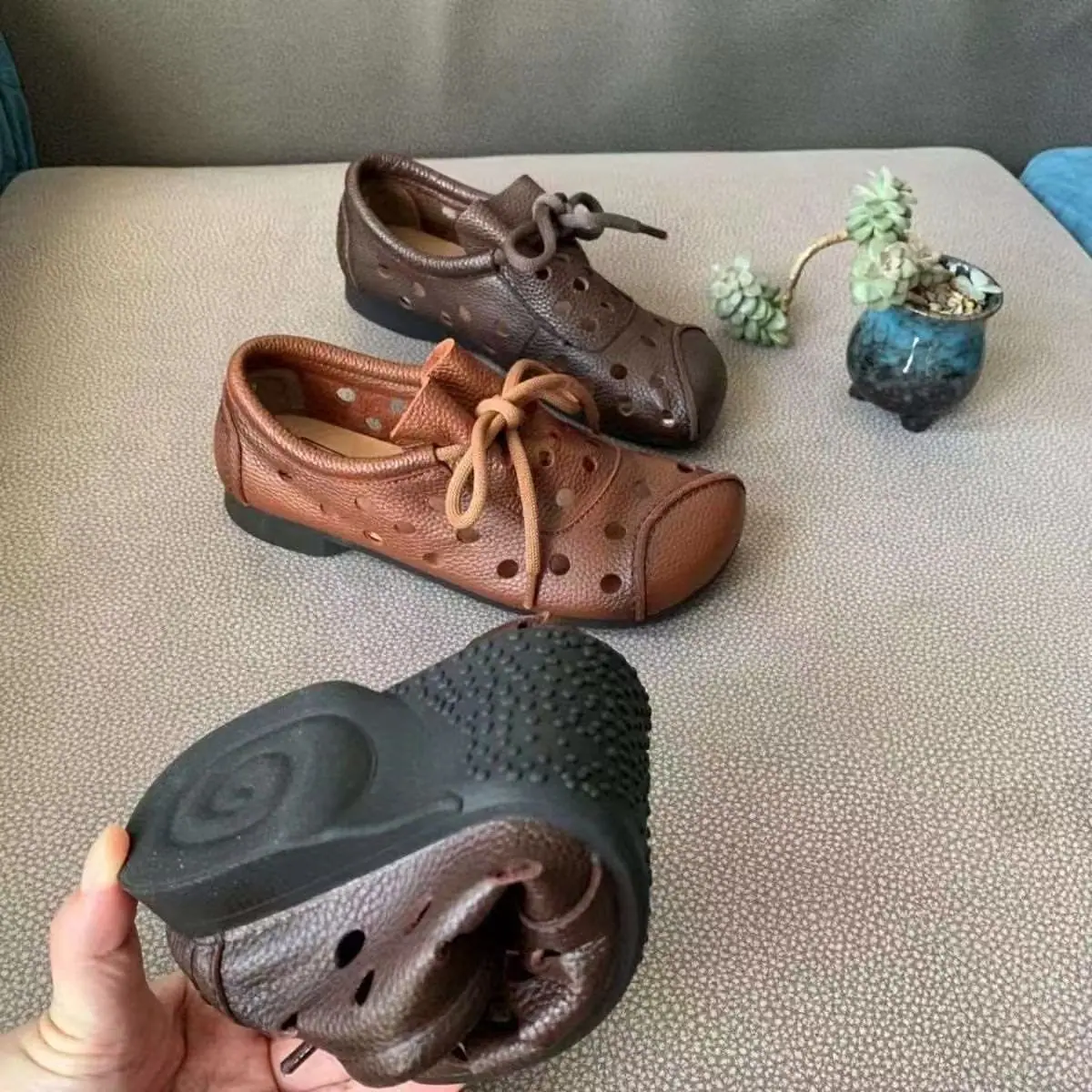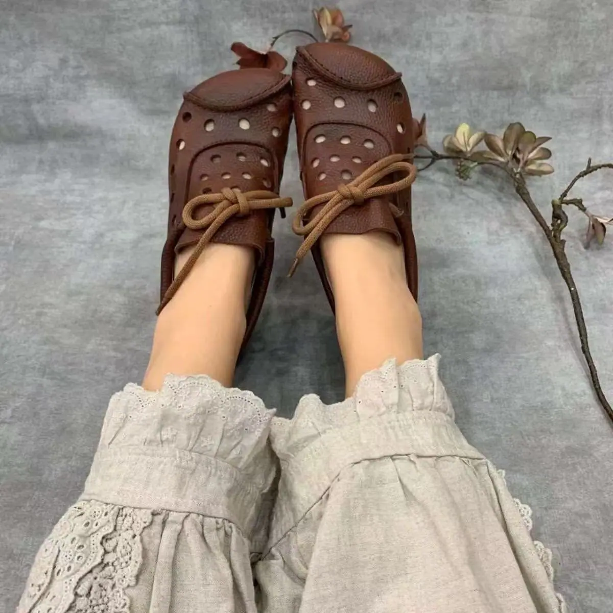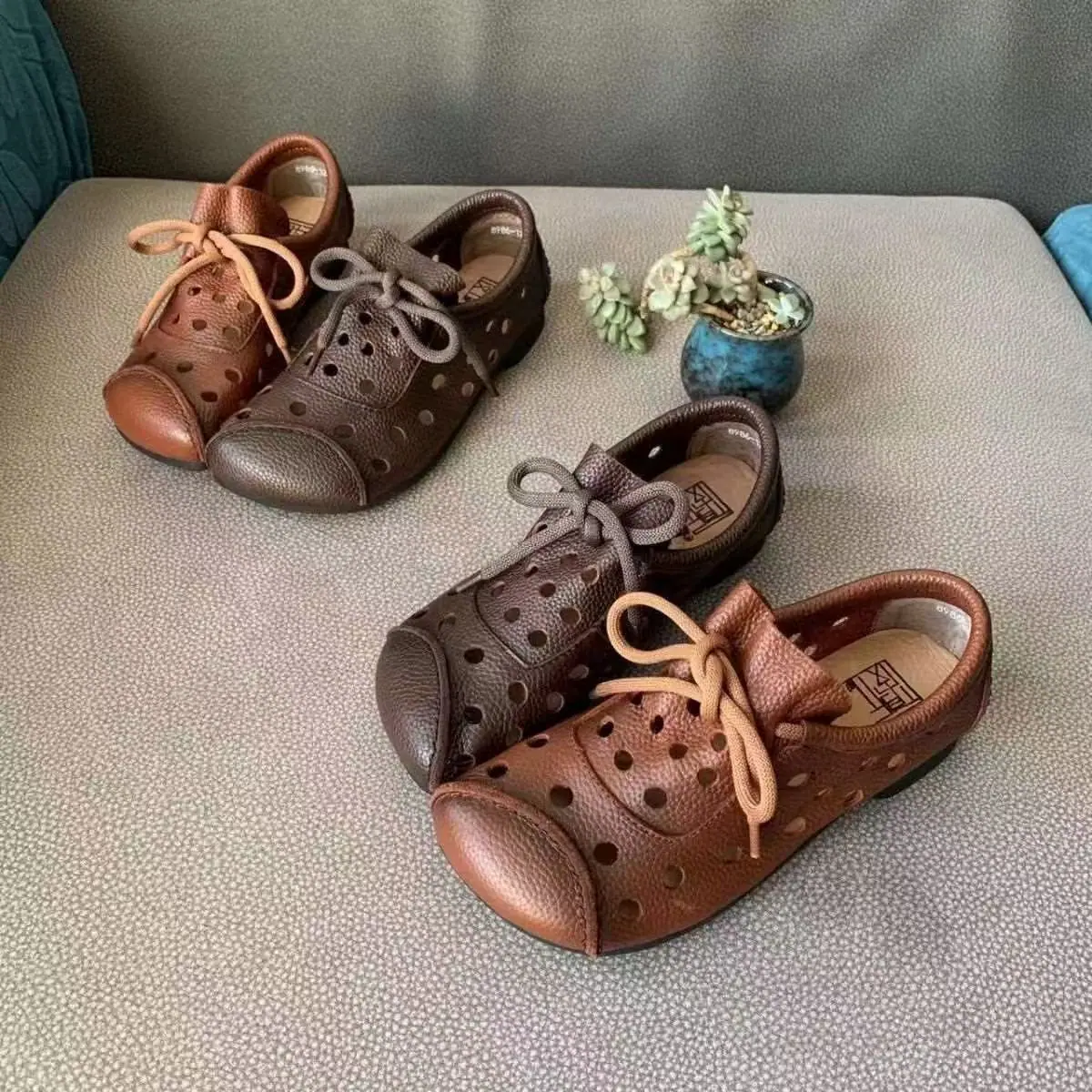 Zapatos individuales de otoño 2025 retro de punta redonda para mujer, verano nuevo, para mediana edad y ancianas, cómodos, de suela suave, zapatos de madre con agujero hueco