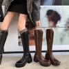 Botas de Caballero con Suela Gruesa para Aumentar Altura, Boca en V para Mujer, Nuevo Estilo 2025, Negras Pequeñas, Puntera Redonda, Tacón Grueso, Botas Elásticas, Botas Altas