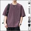 Verano Nueva Camiseta de Manga Corta para Hombre 230g Pesada Suelta Cuello Redondo Manga Media Camiseta Simple Niños Ropa Superior Bordada