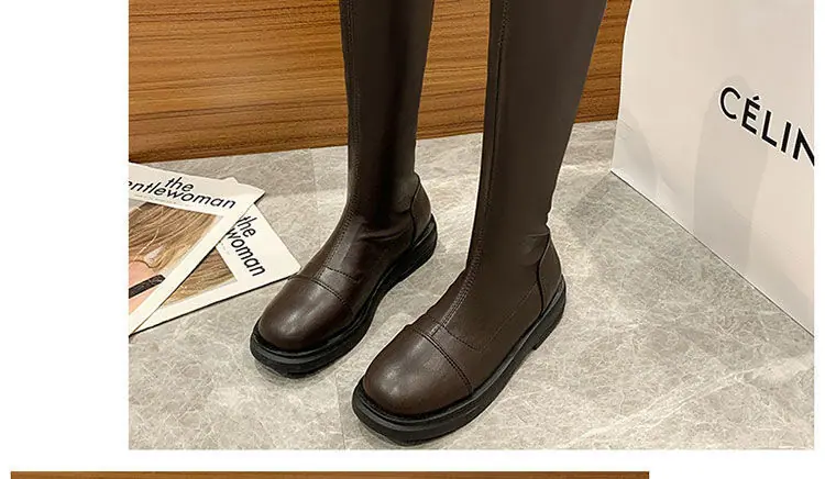Botas altas hasta el muslo para mujer 2025 nuevo otoño e invierno estudiante botas por encima de la rodilla botas largas tacón plano botas de caña alta botas de caballero a la moda