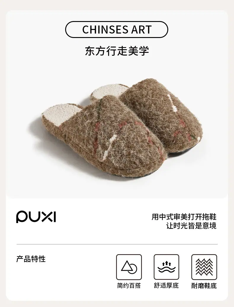 Pantuflas de algodón Puxi pisando mierda sensación pantuflas de felpa gruesas mujeres interior pareja hogar cómodas cálidas antideslizantes pantuflas de algodón