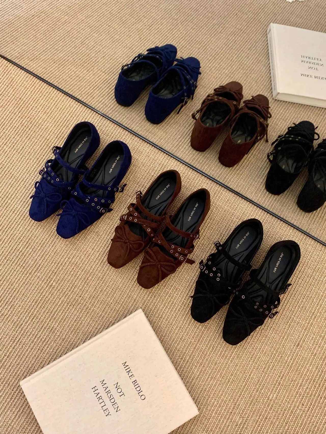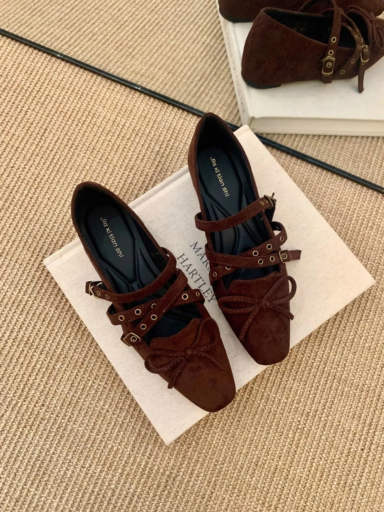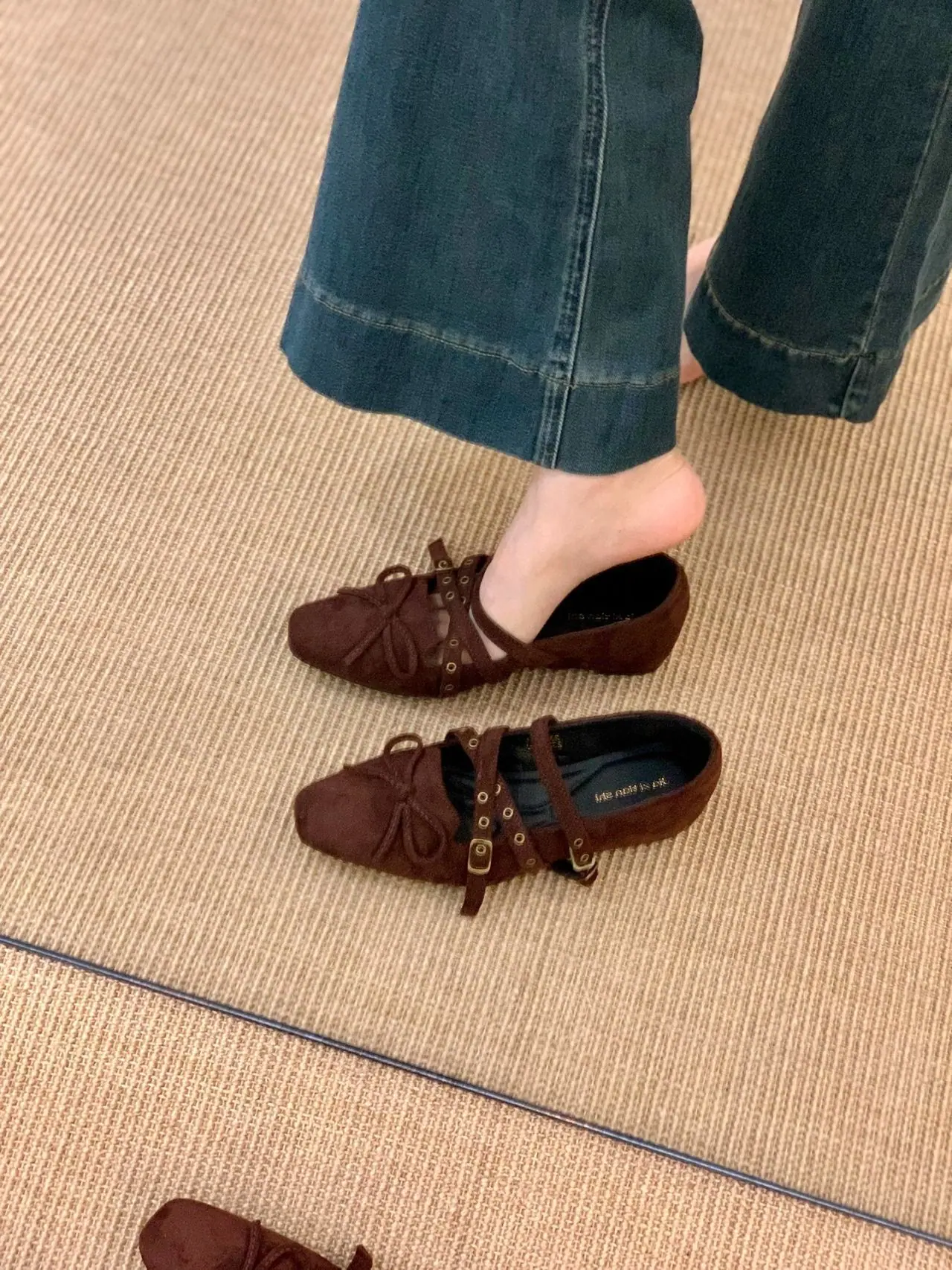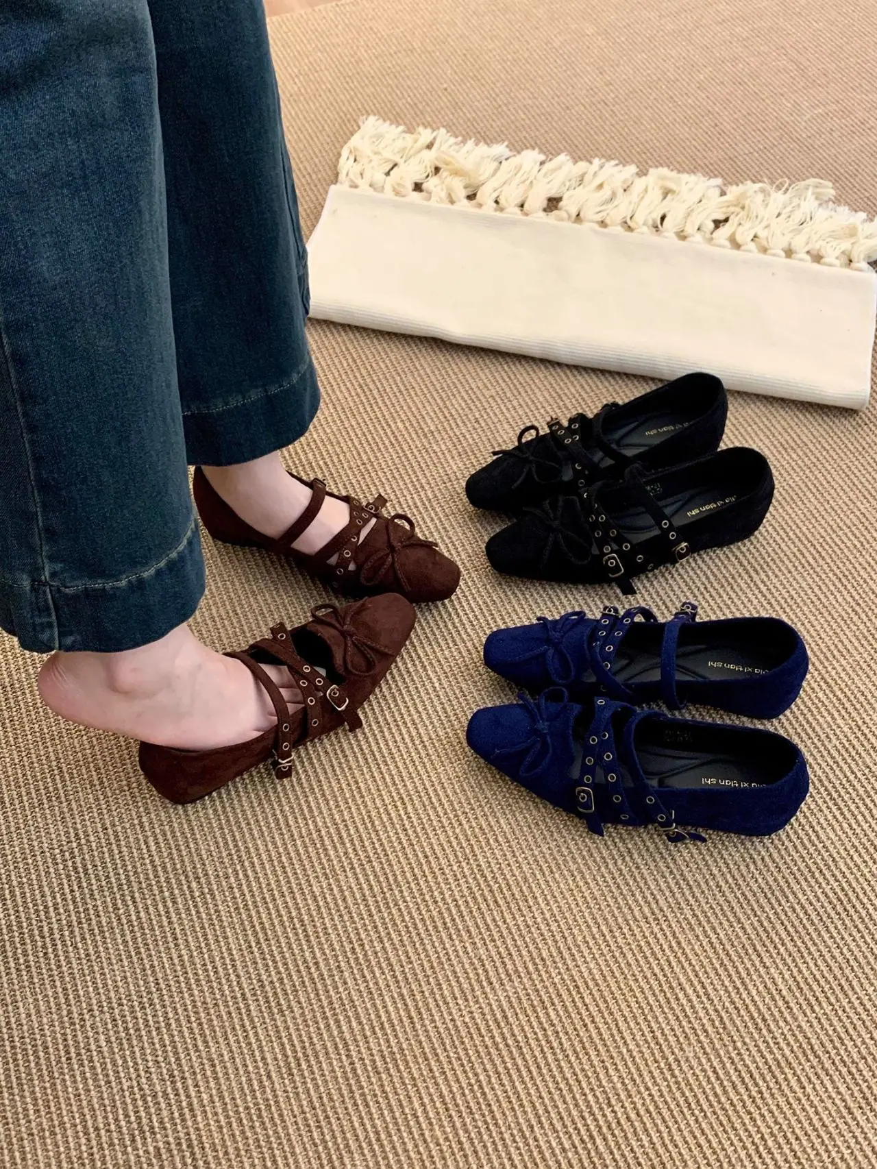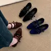 Zapatos Mary Jane de gamuza plana con borlas de diseño retro nicho 2025 nuevos zapatos individuales franceses con realce interior zapatos de mujer
