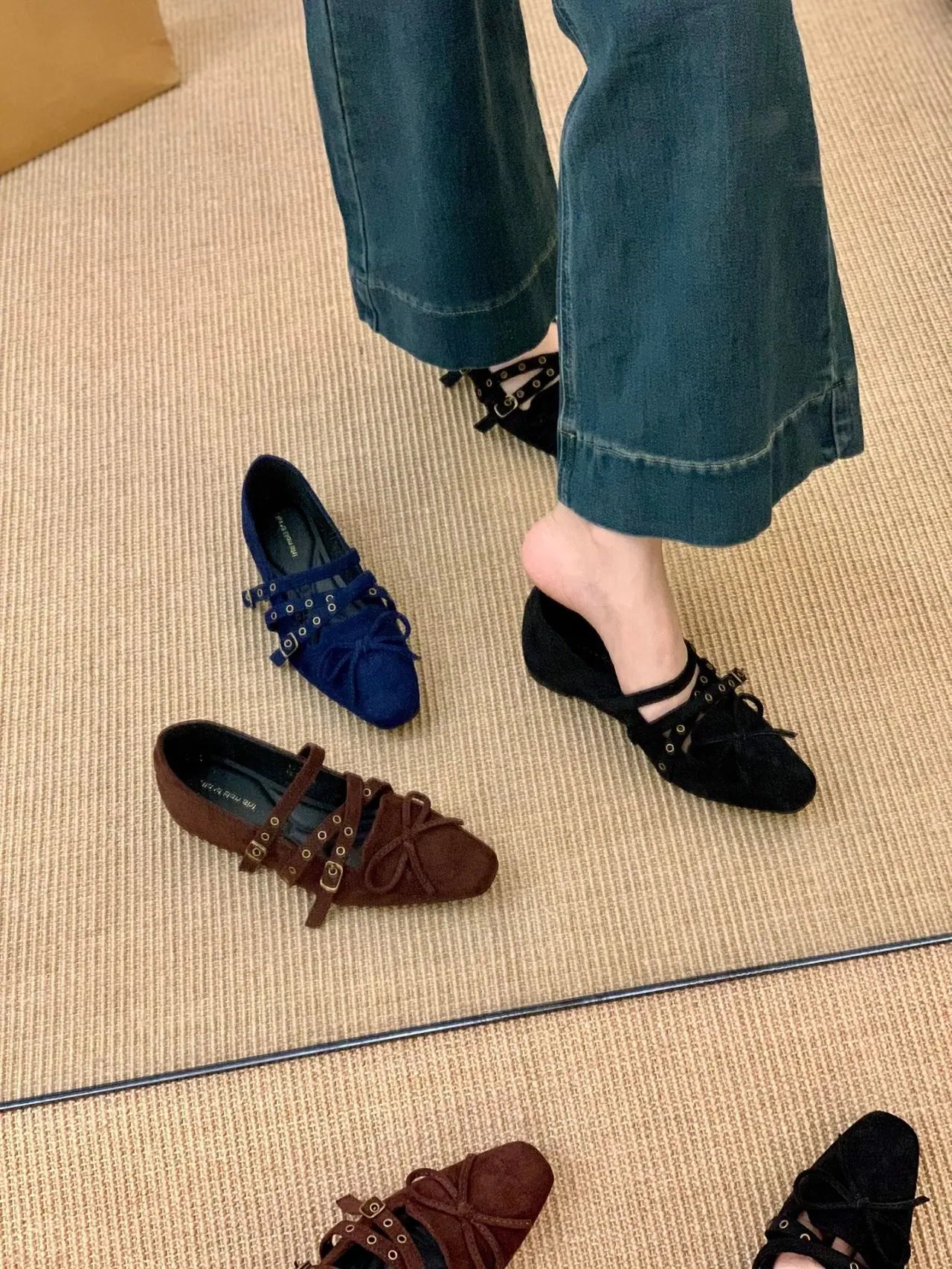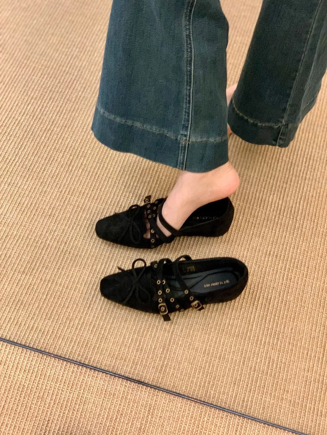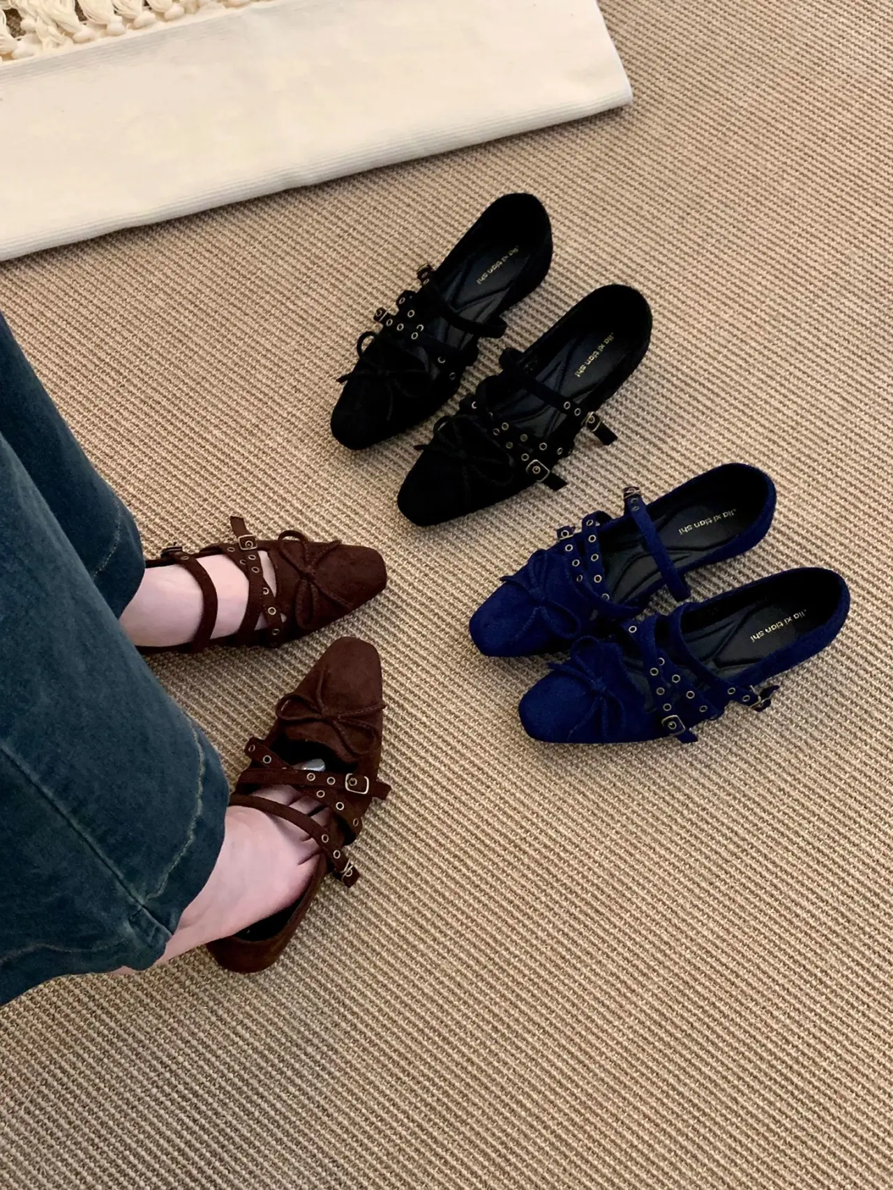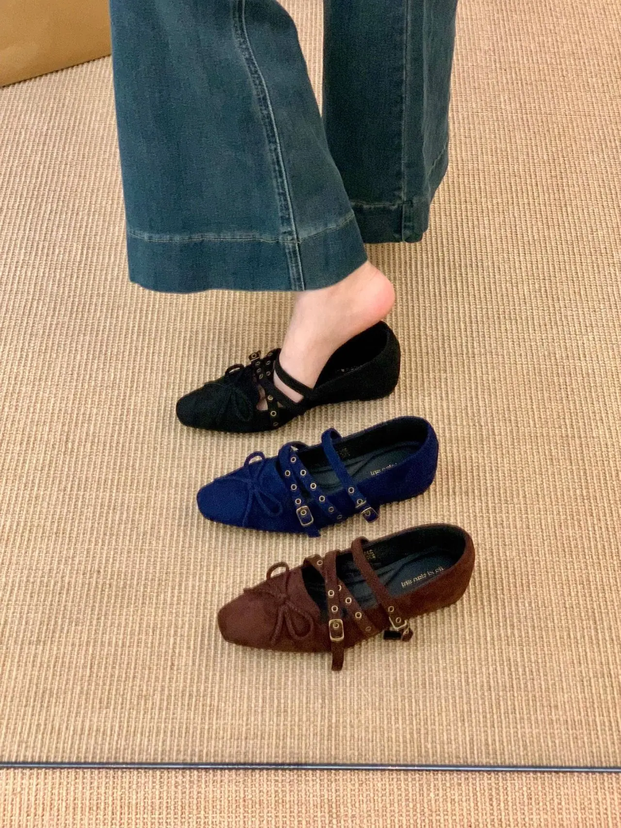 Zapatos Mary Jane de gamuza plana con borlas de diseño retro nicho 2025 nuevos zapatos individuales franceses con realce interior zapatos de mujer