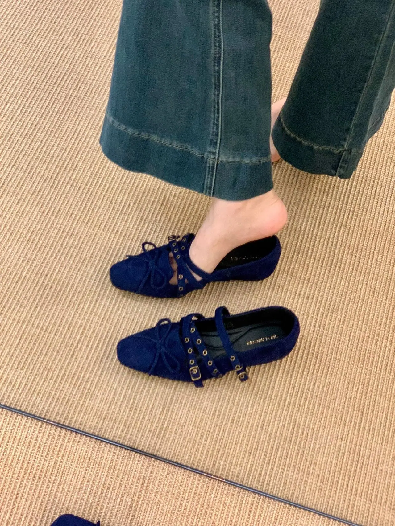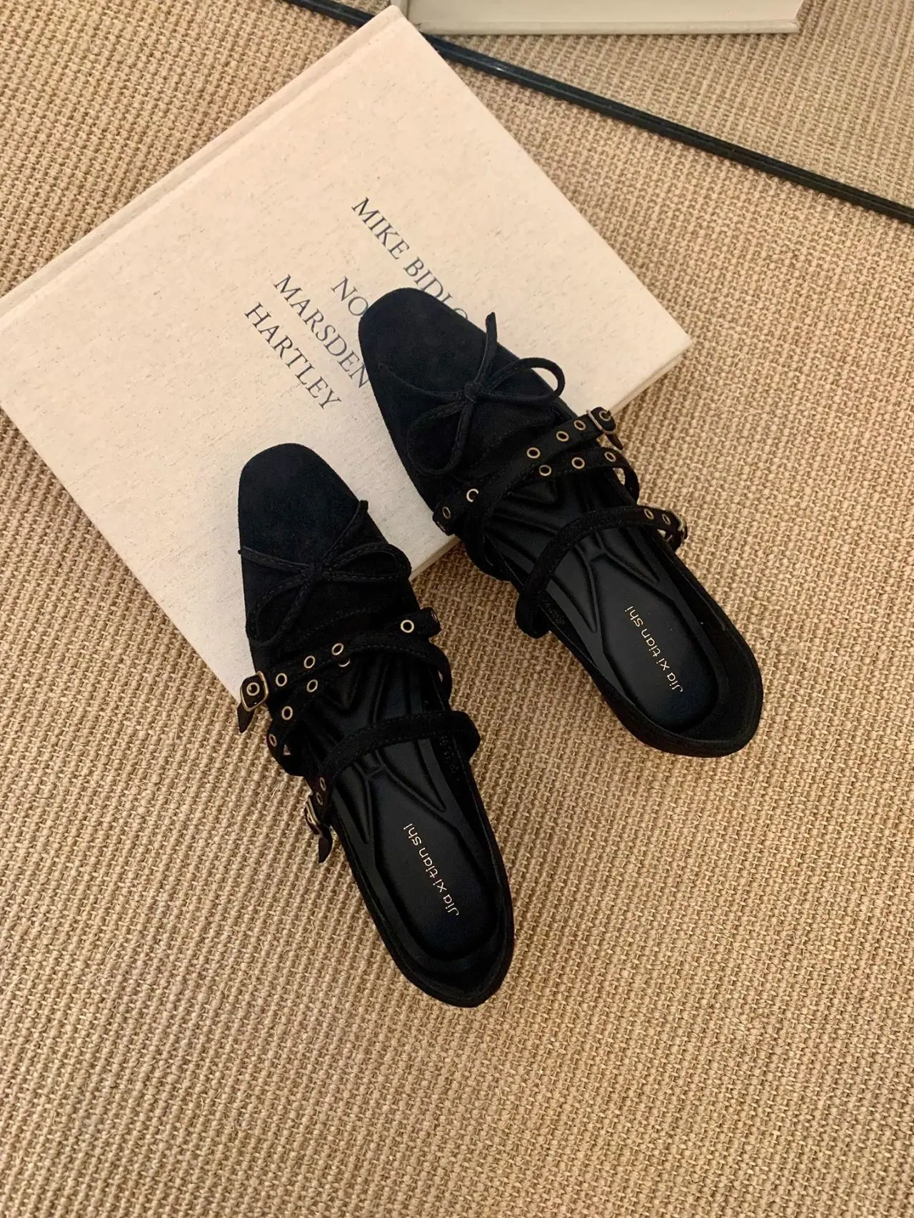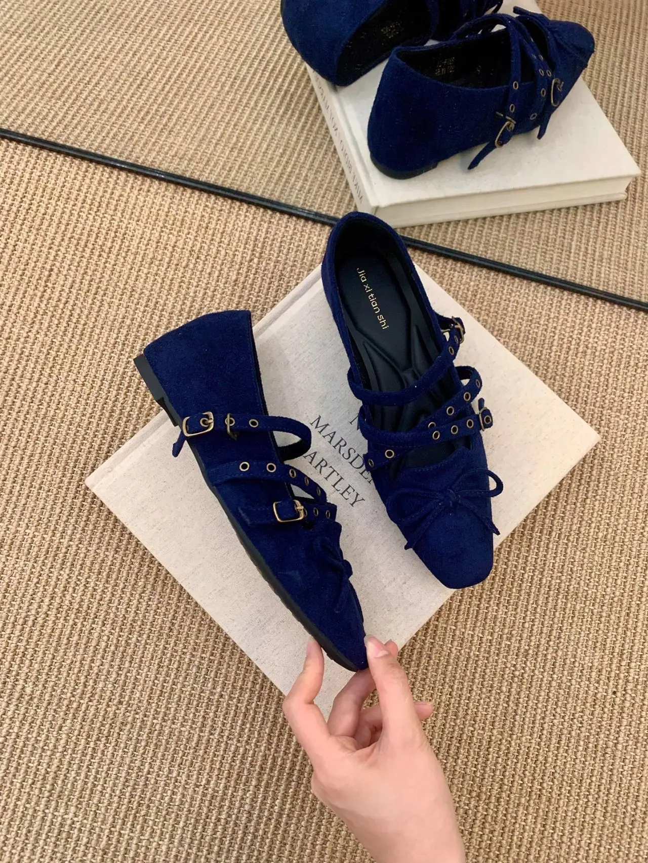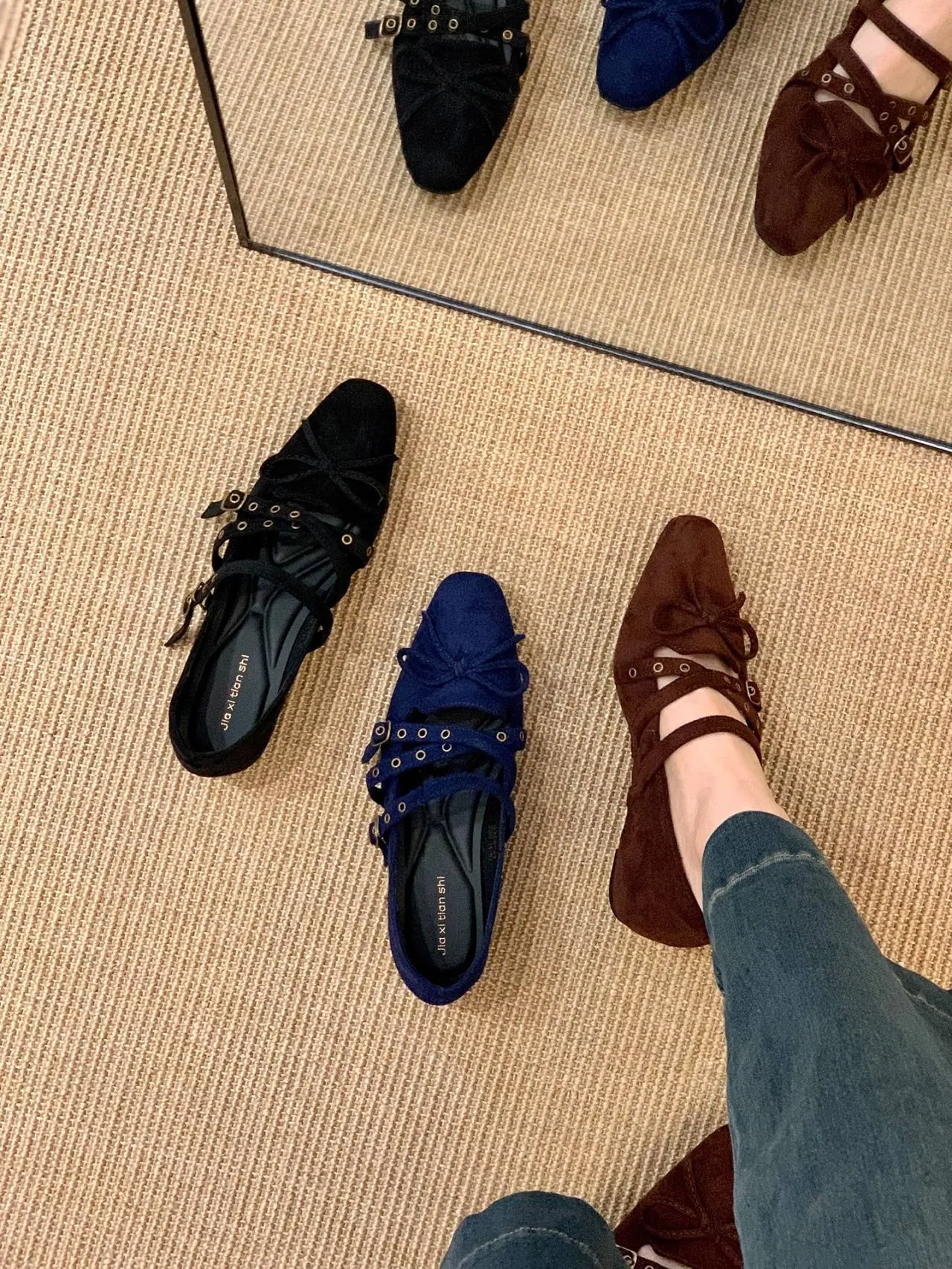Zapatos Mary Jane de gamuza plana con borlas de diseño retro nicho 2025 nuevos zapatos individuales franceses con realce interior zapatos de mujer
