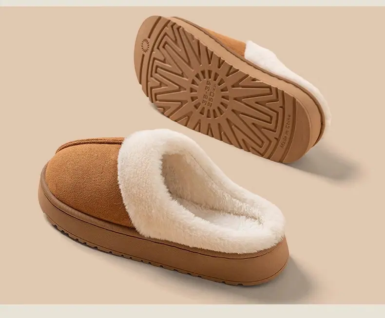 Pantuflas de Algodón para Hombre Otoño e Invierno para Interior Hogar Antideslizantes Suela Gruesa Sensación de Pisar Mierda Felpa Suave Cálidas Pantuflas de Pareja para Mujer