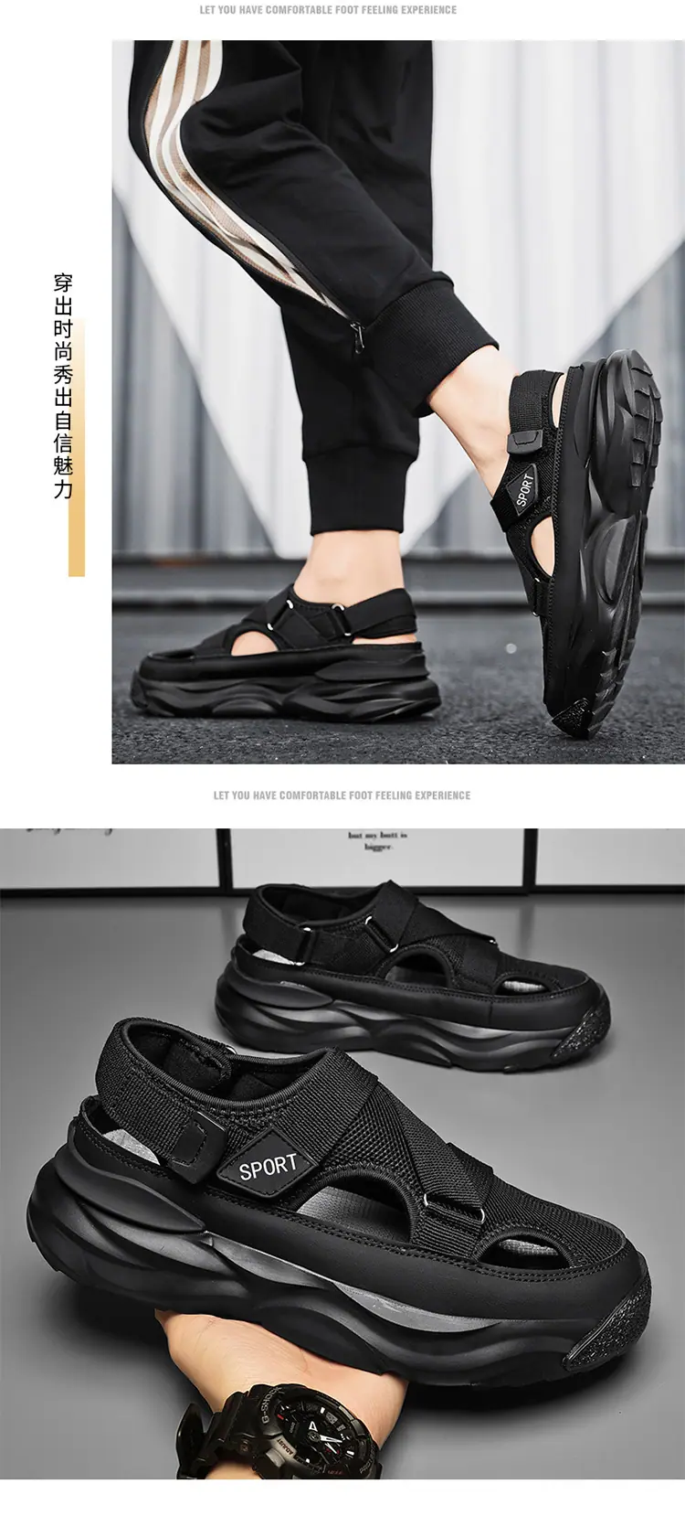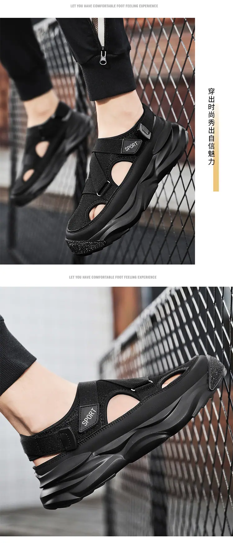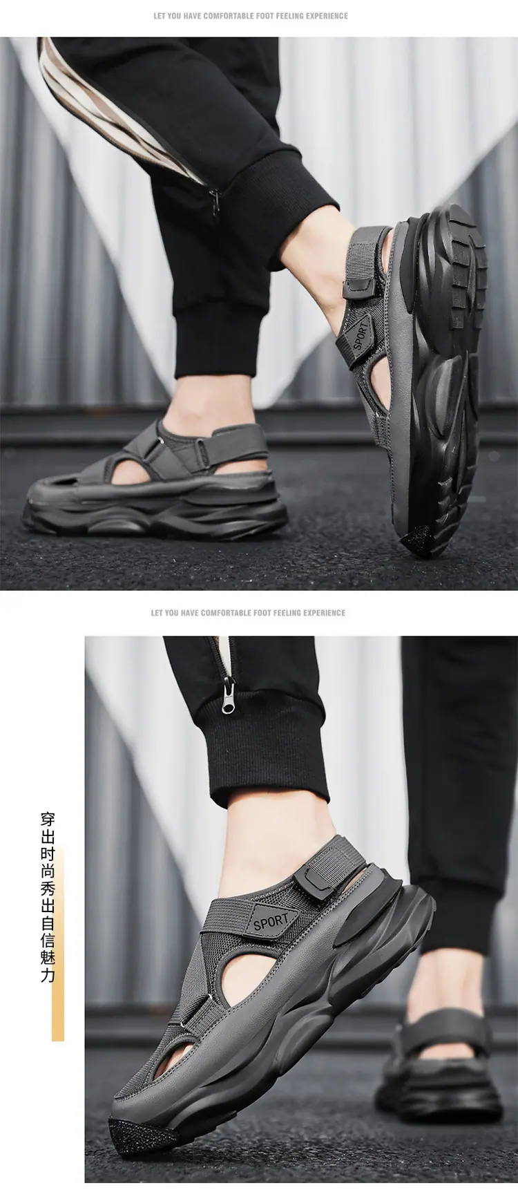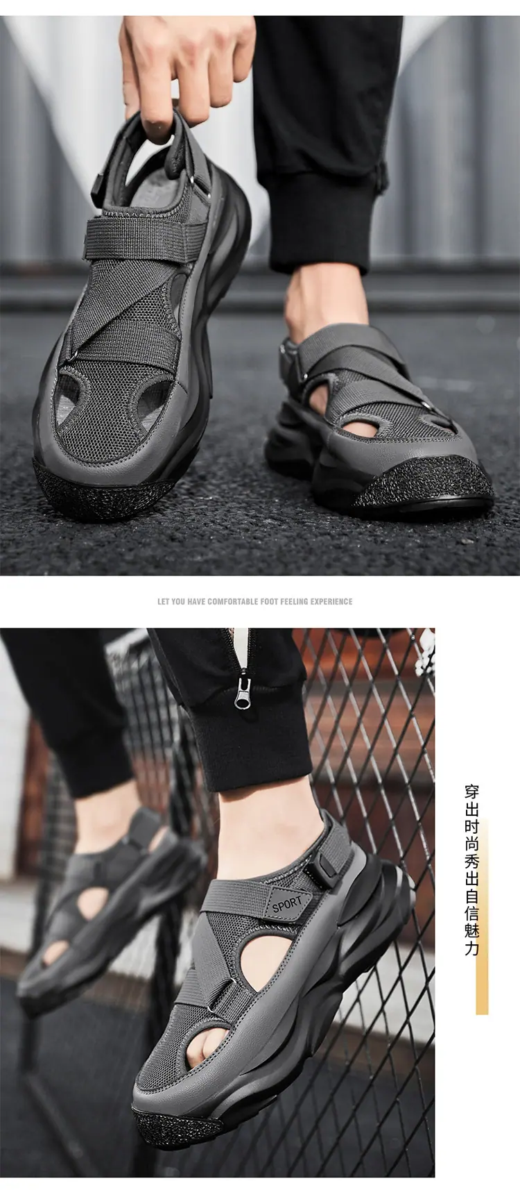 Sandalias para hombre 2025, nuevas, informales, versátiles, para jóvenes, transpirables, modernas, con velcro.
