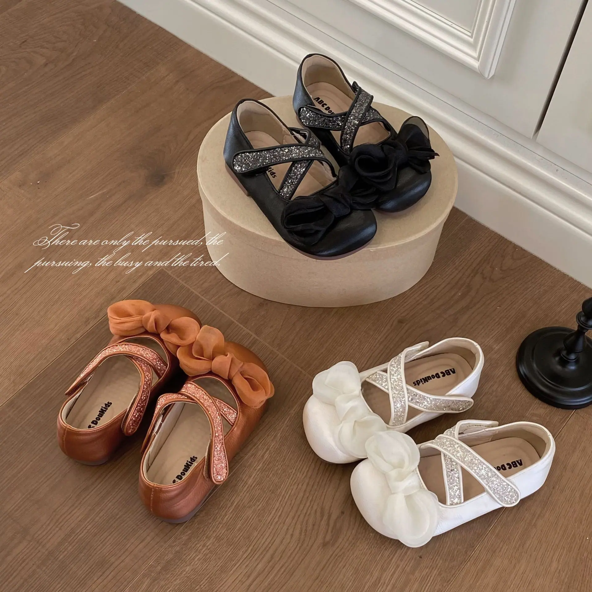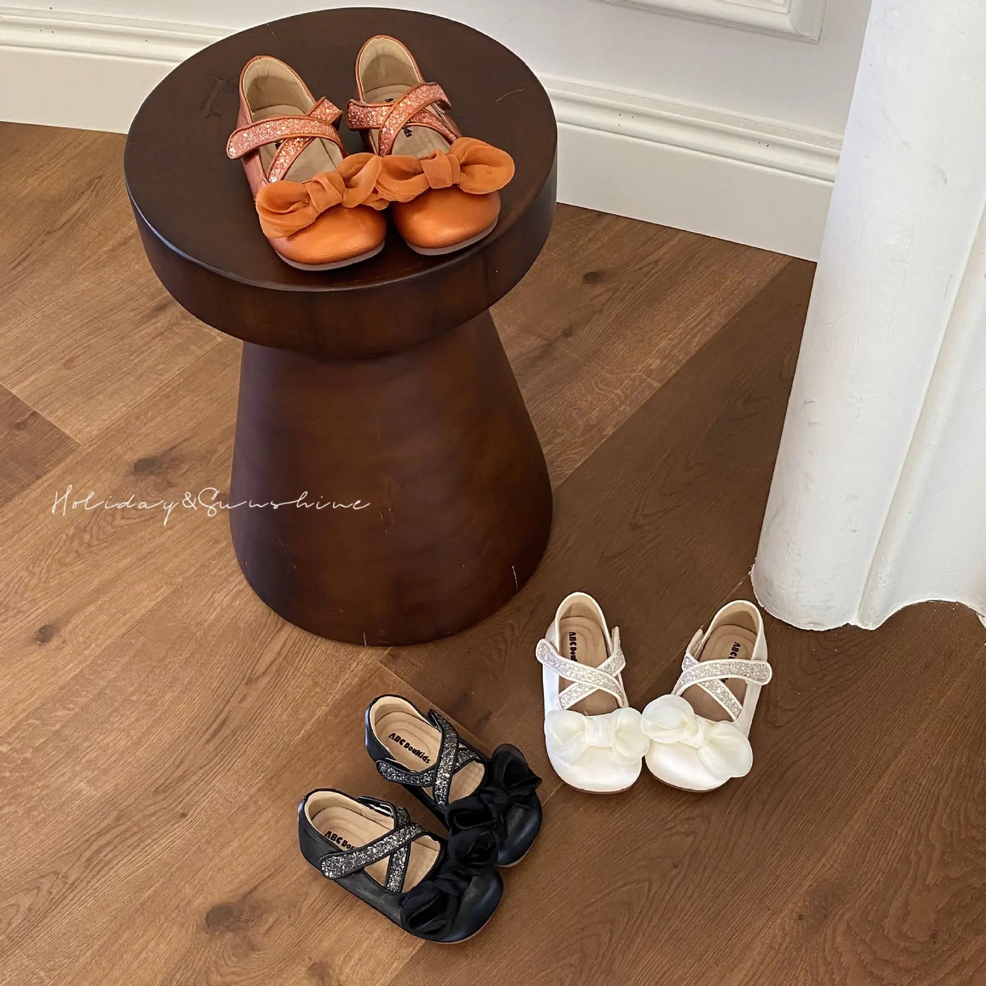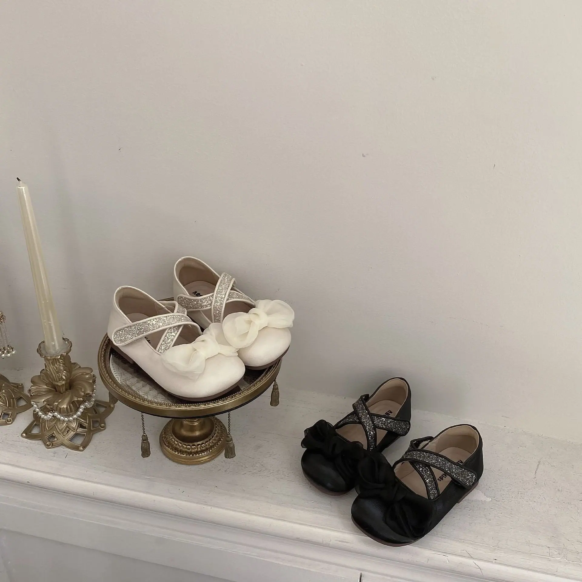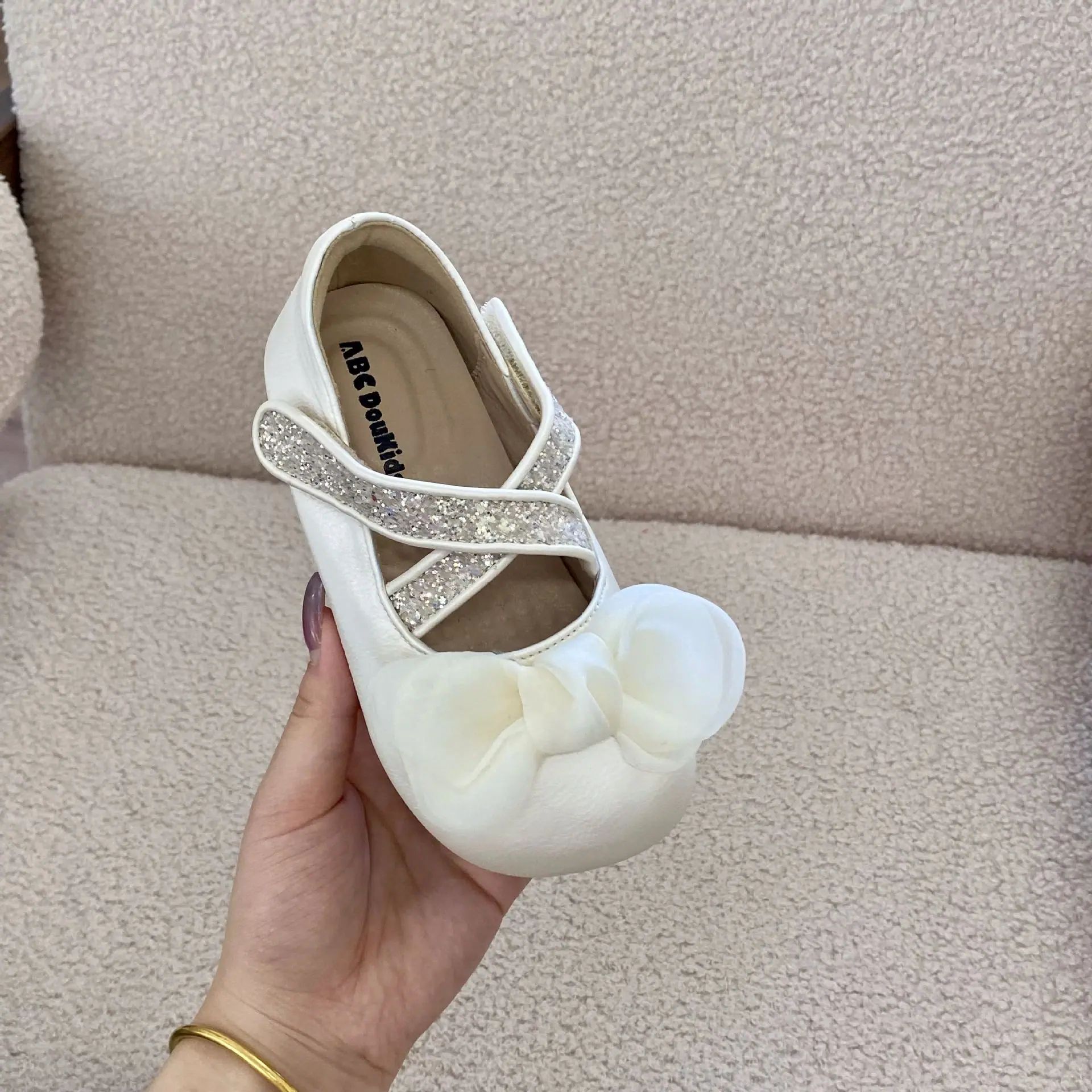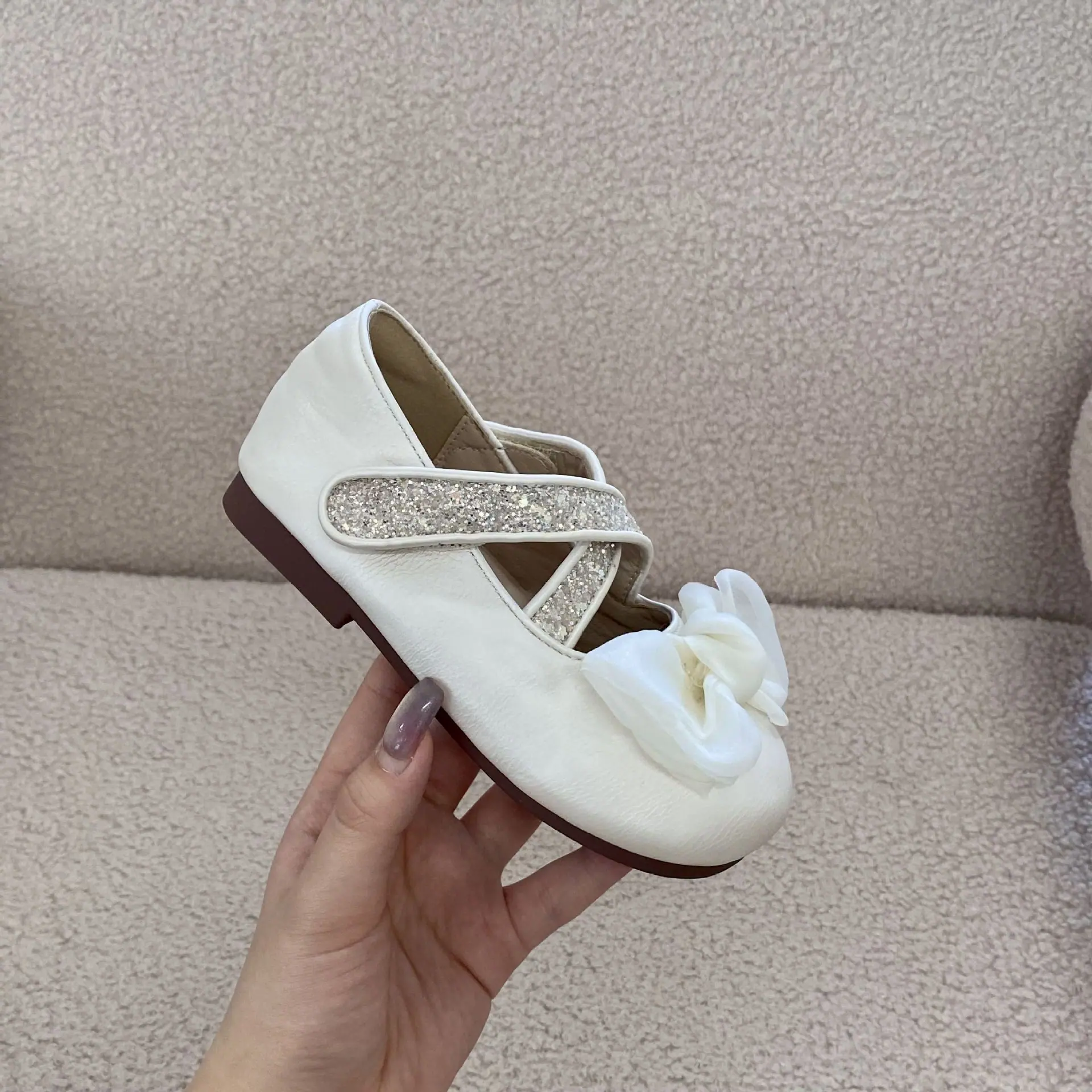 Zapatos de Princesa para Niñas 2025 Otoño Nuevos Zapatos de Cuero con Lazo Francés para Niños Niña Zapatos Individuales de Suela Blanda para Combinar con Vestido de Noche