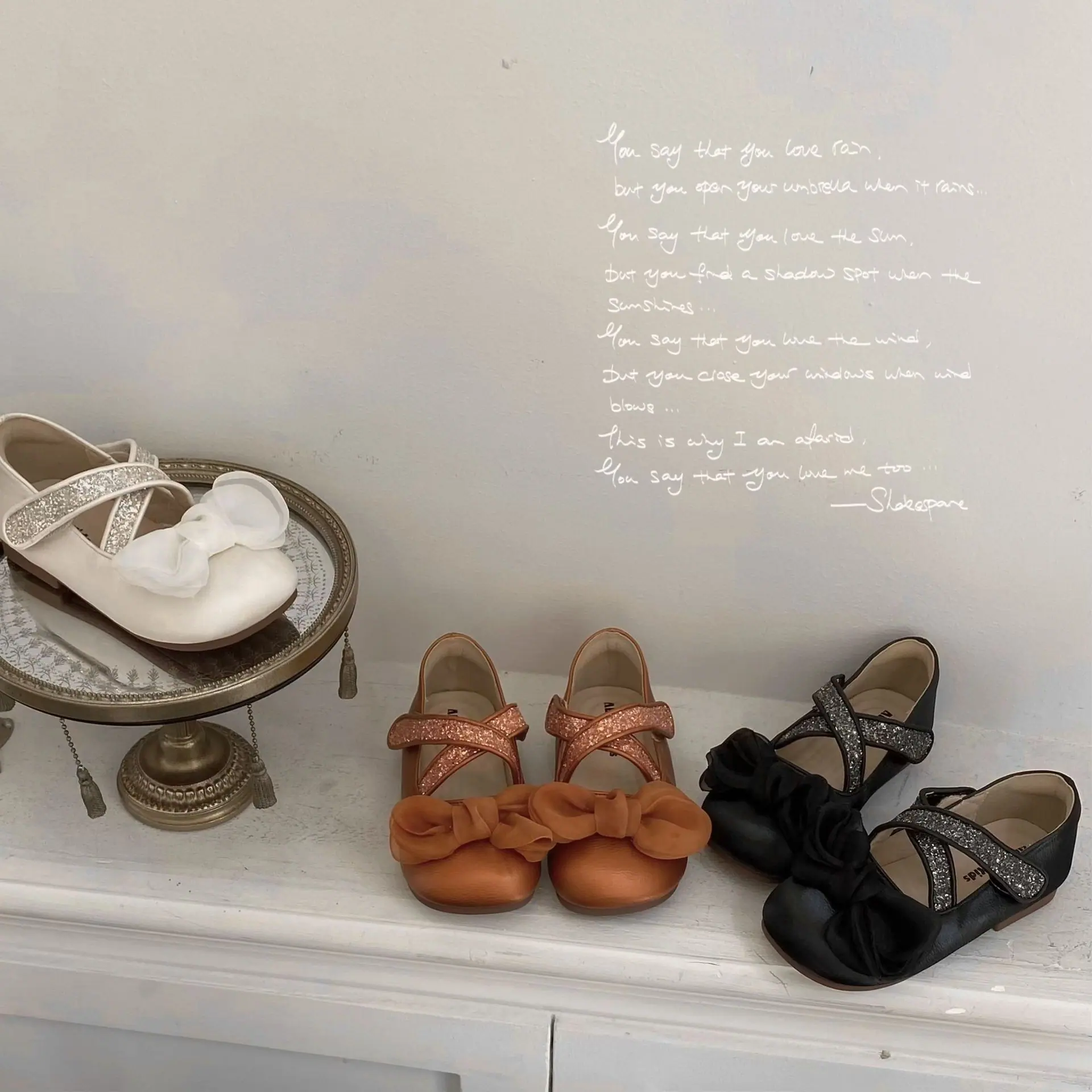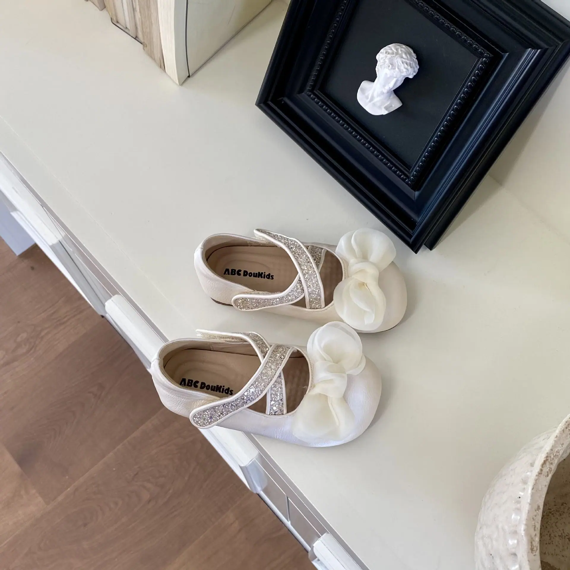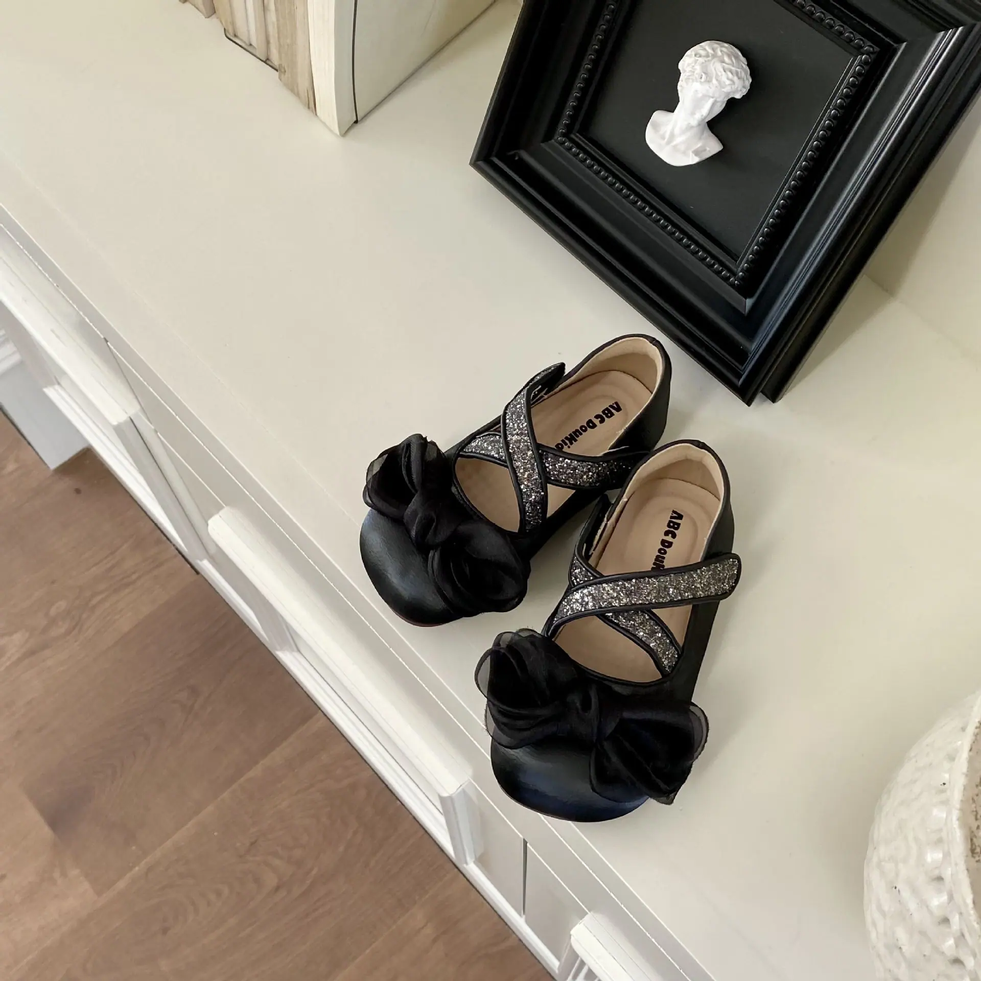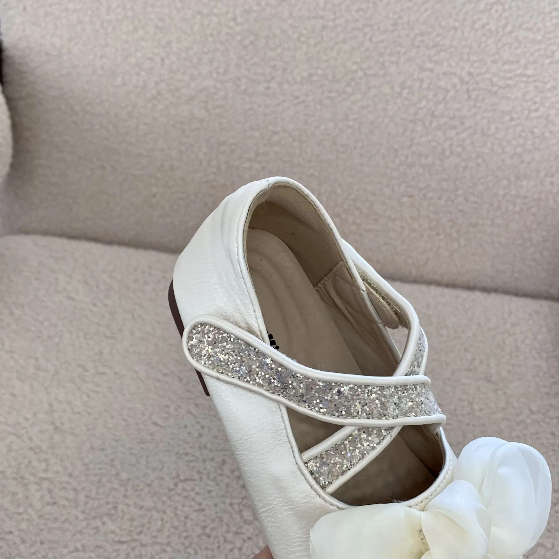Zapatos de Princesa para Niñas 2025 Otoño Nuevos Zapatos de Cuero con Lazo Francés para Niños Niña Zapatos Individuales de Suela Blanda para Combinar con Vestido de Noche