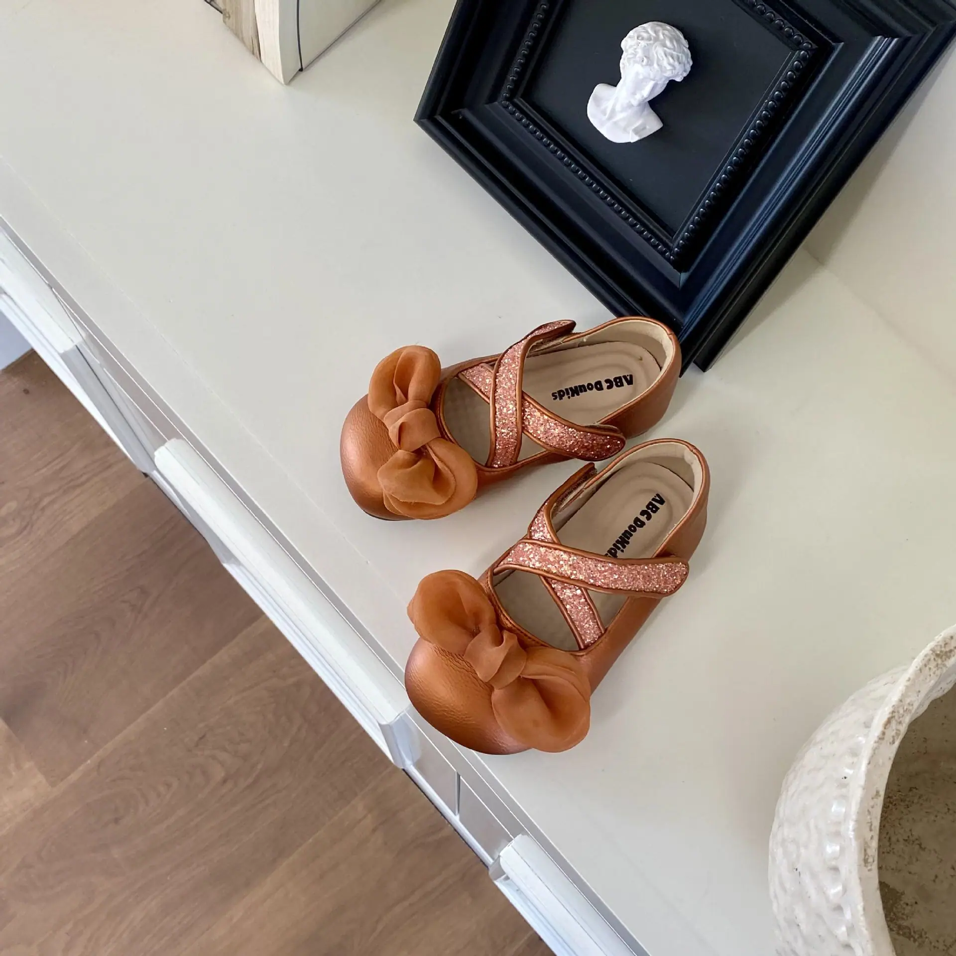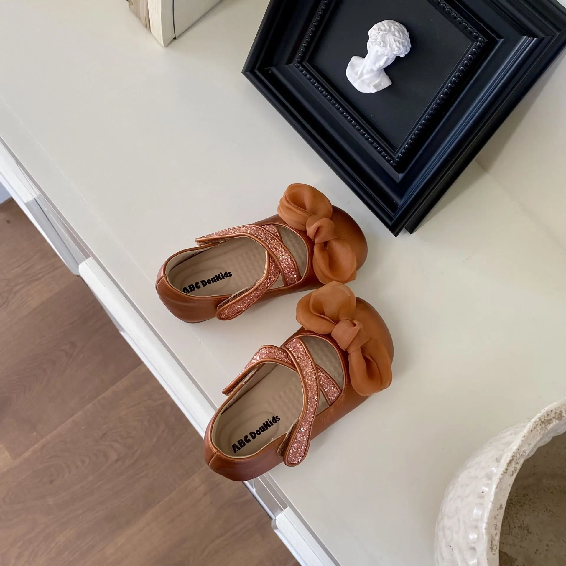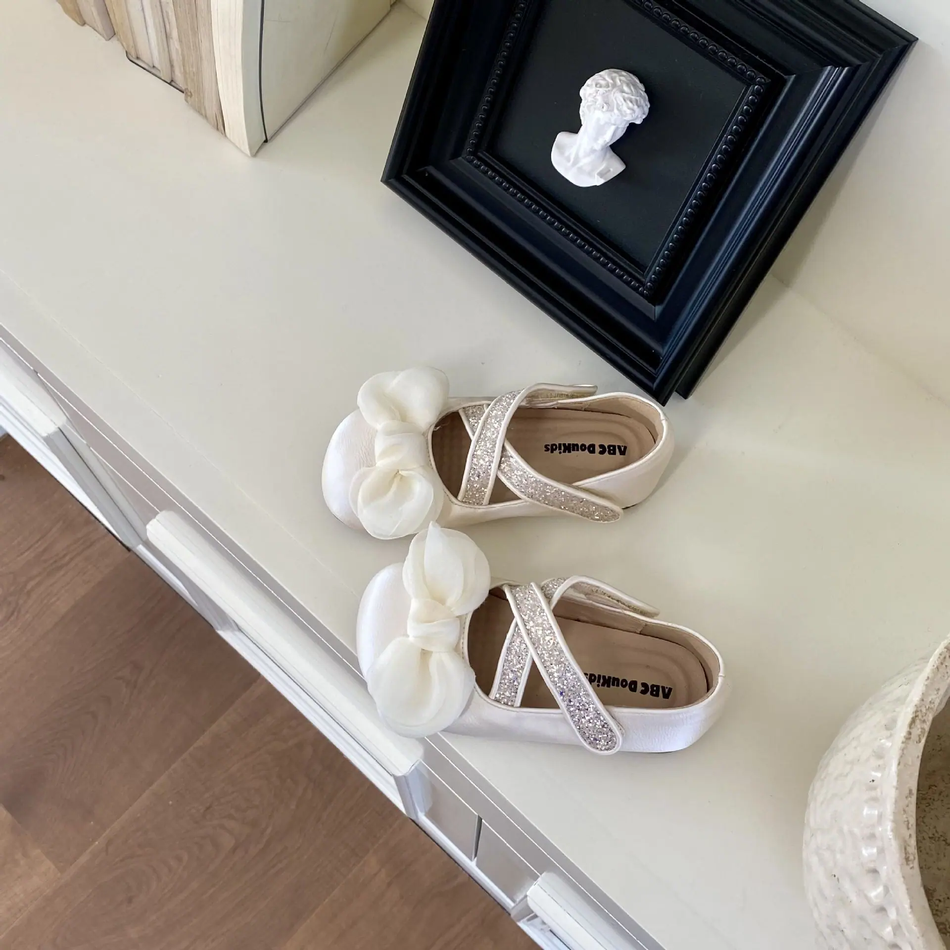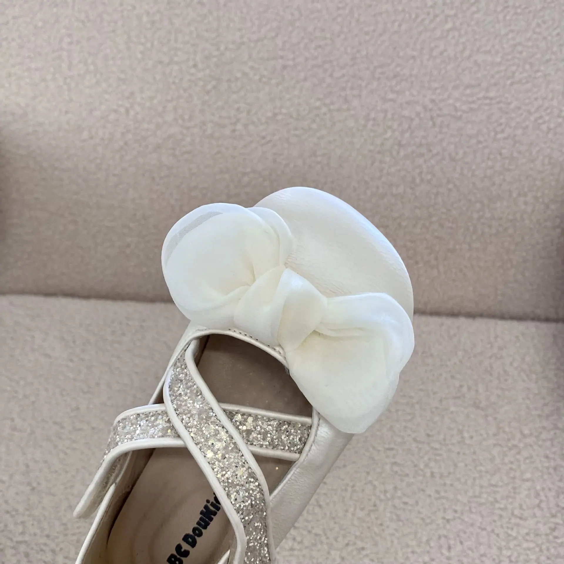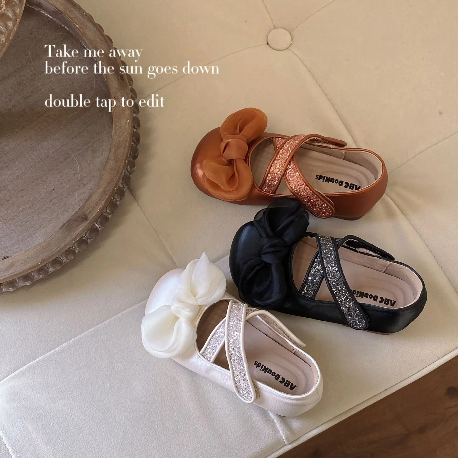 Zapatos de Princesa para Niñas 2025 Otoño Nuevos Zapatos de Cuero con Lazo Francés para Niños Niña Zapatos Individuales de Suela Blanda para Combinar con Vestido de Noche