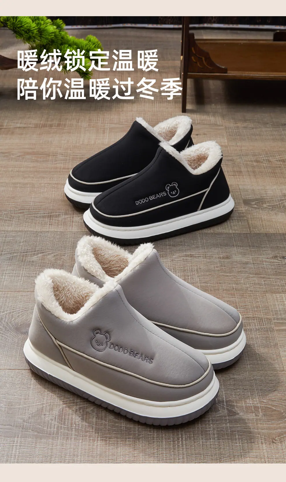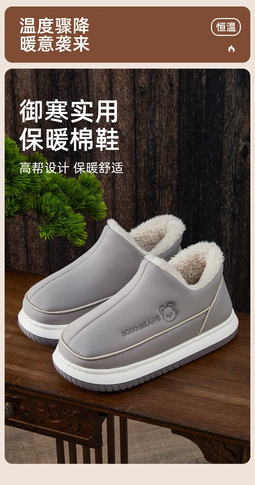 Zapatos de algodón para exterior de invierno para hombre, casa, fondo suave, parejas, interior, antideslizantes, cálidos, bolsa de felpa con pantuflas de algodón, venta al por mayor de invierno para mujer