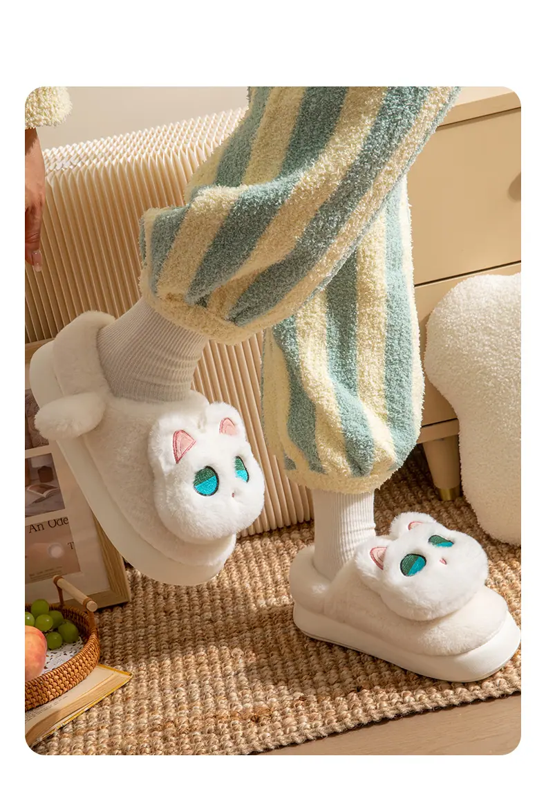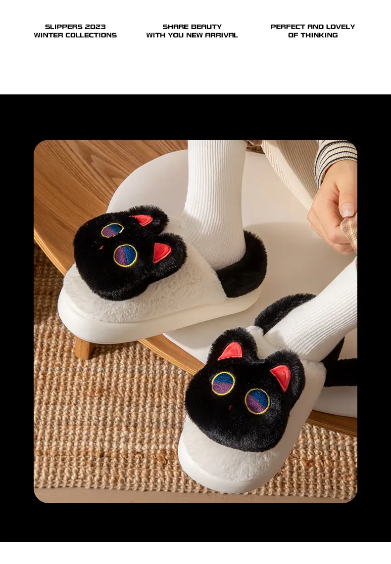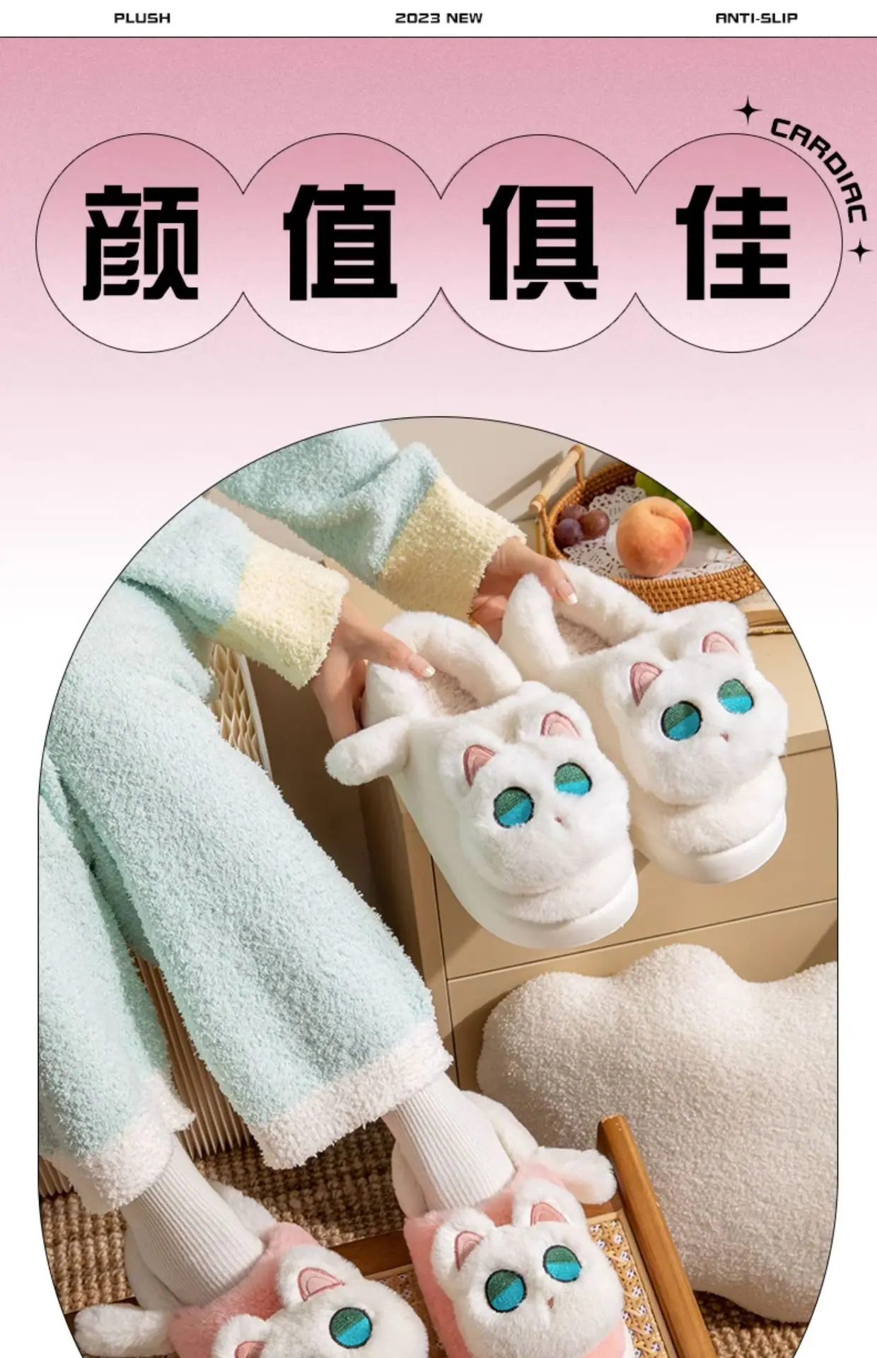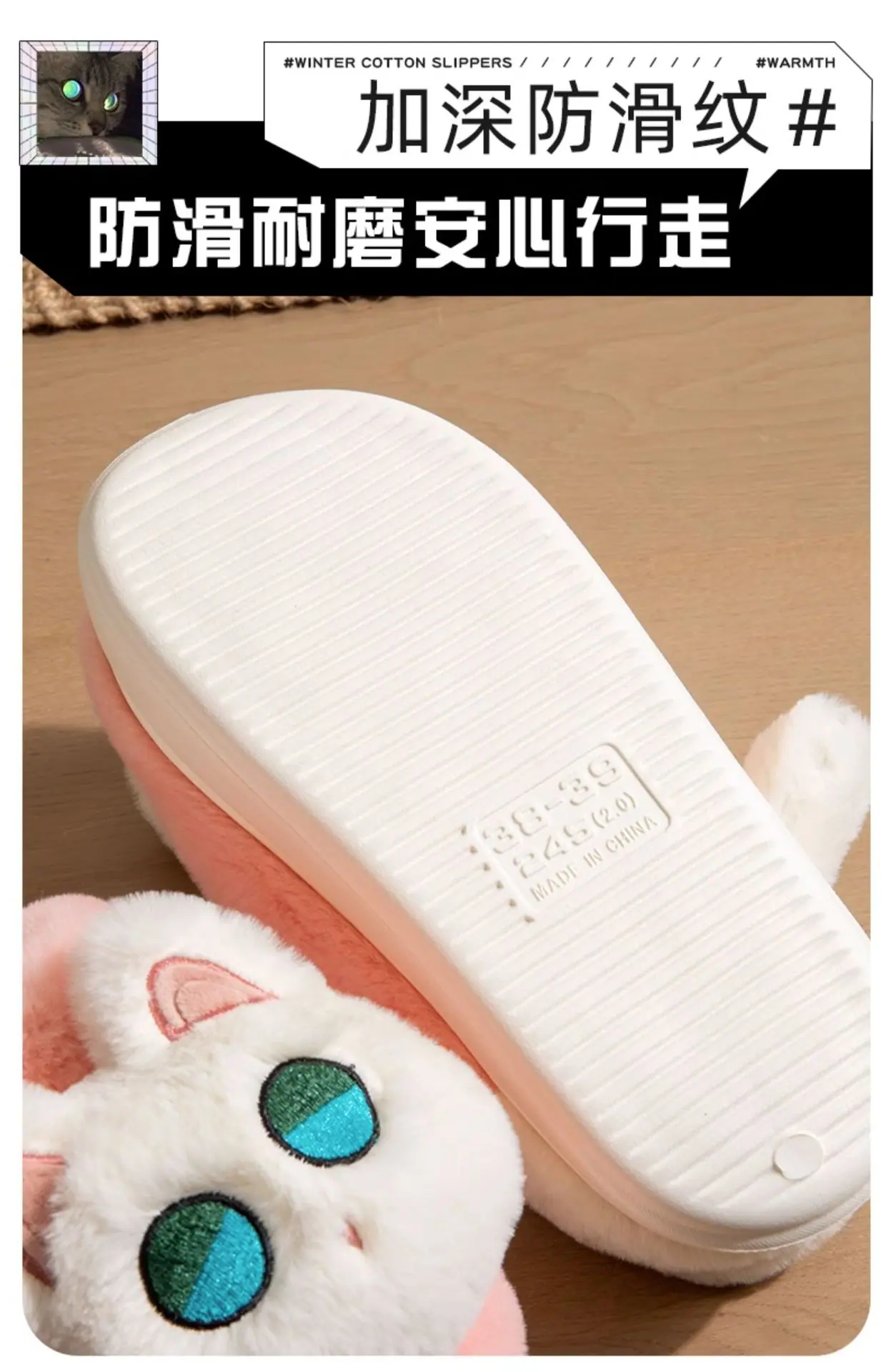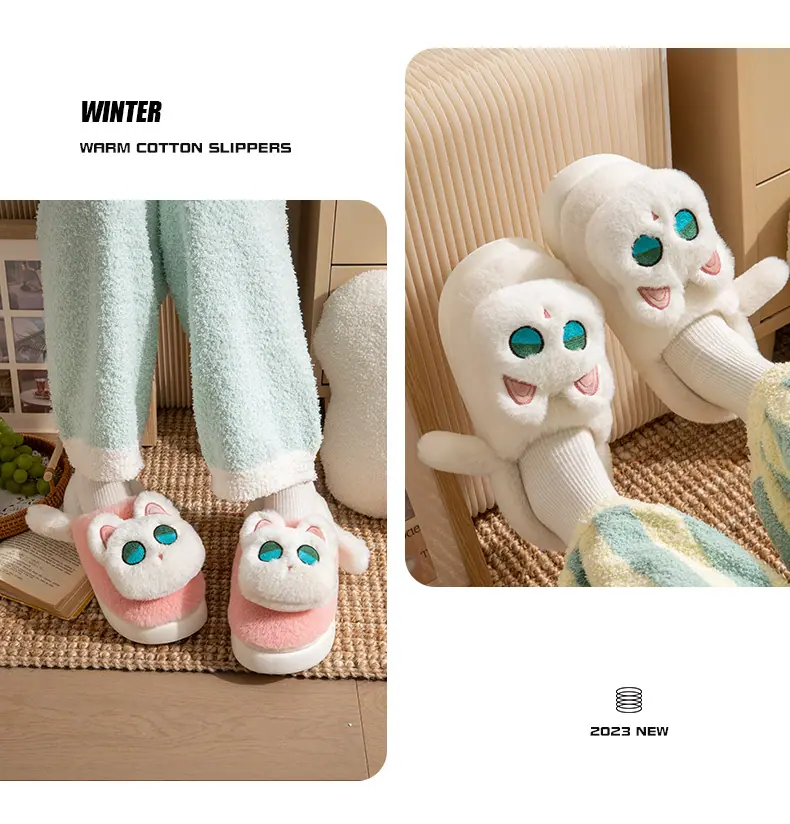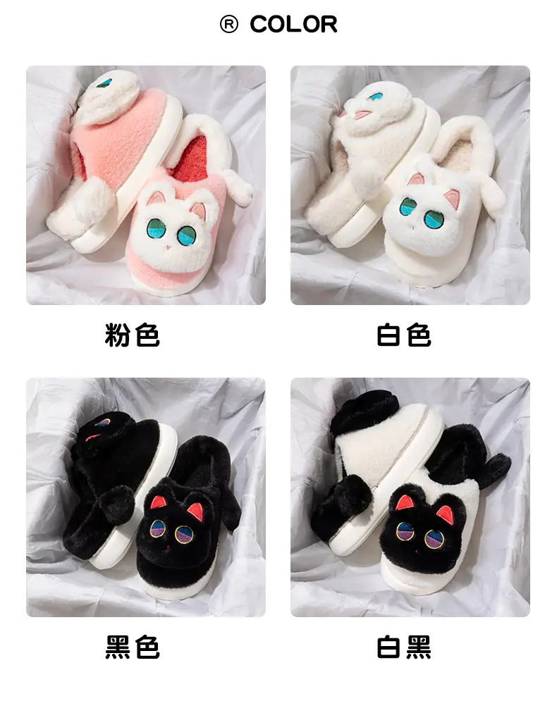 Fábrica de Zapatos Qidan Pantuflas de Dibujos Animados para Mujer Invierno Hogar Punta Cerrada Cálidas Cómodas Felpa Lindas Pareja Eva Pantuflas para Hombre