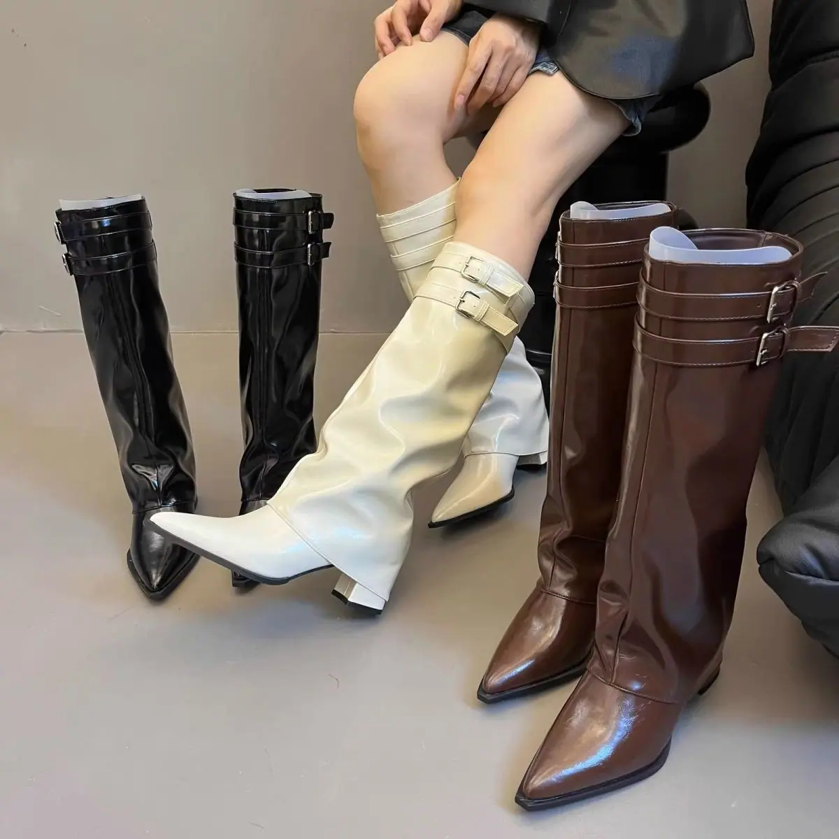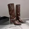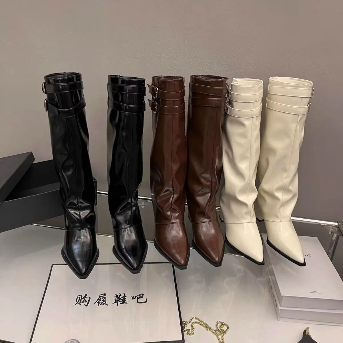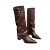 Botas altas blancas de caña alta por encima de la rodilla de aspecto delgado, botines petite de media caña, tacón alto realzante, botas para mujer, otoño e invierno, más terciopelo, caña alta, botas de cuero