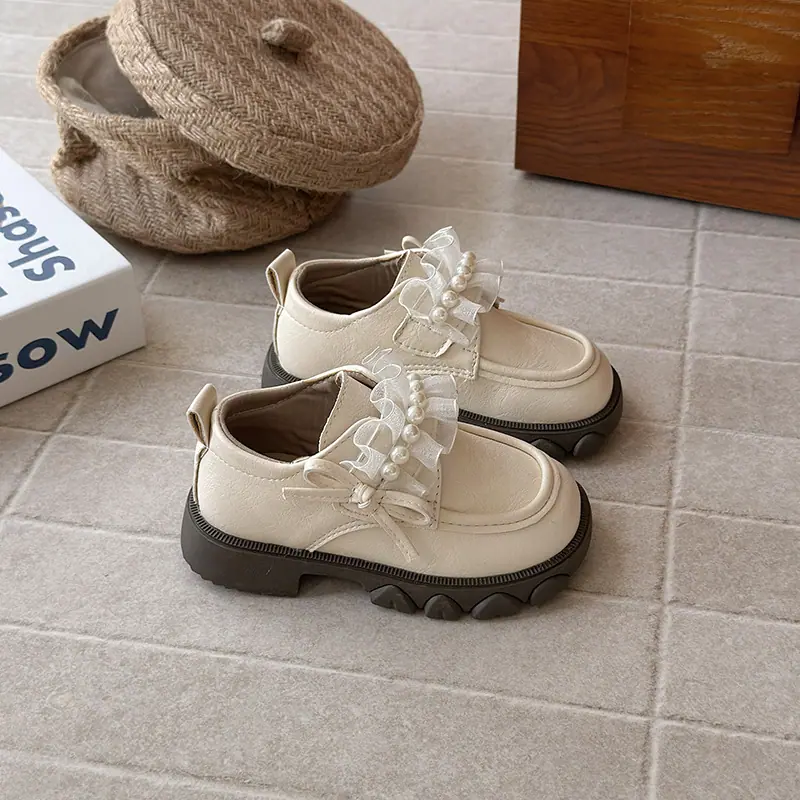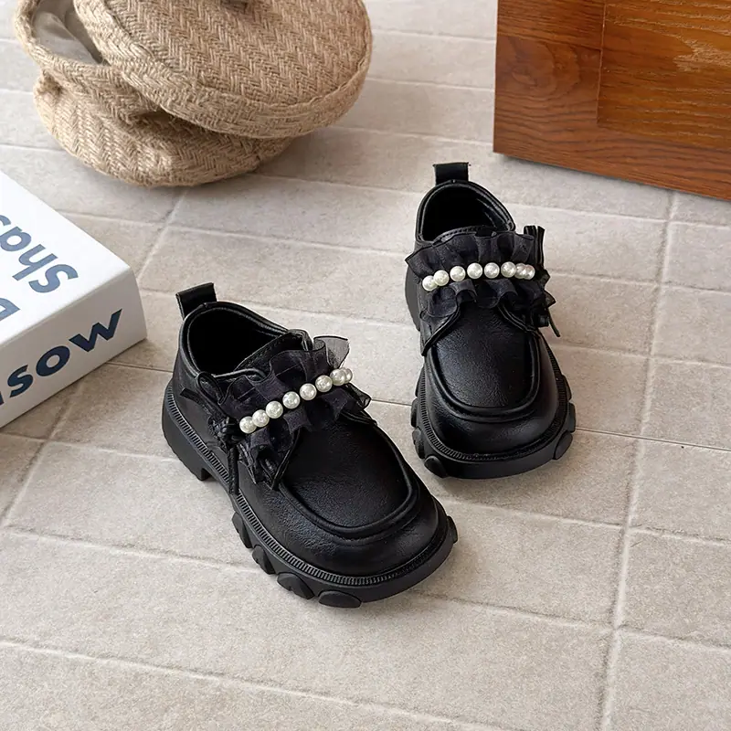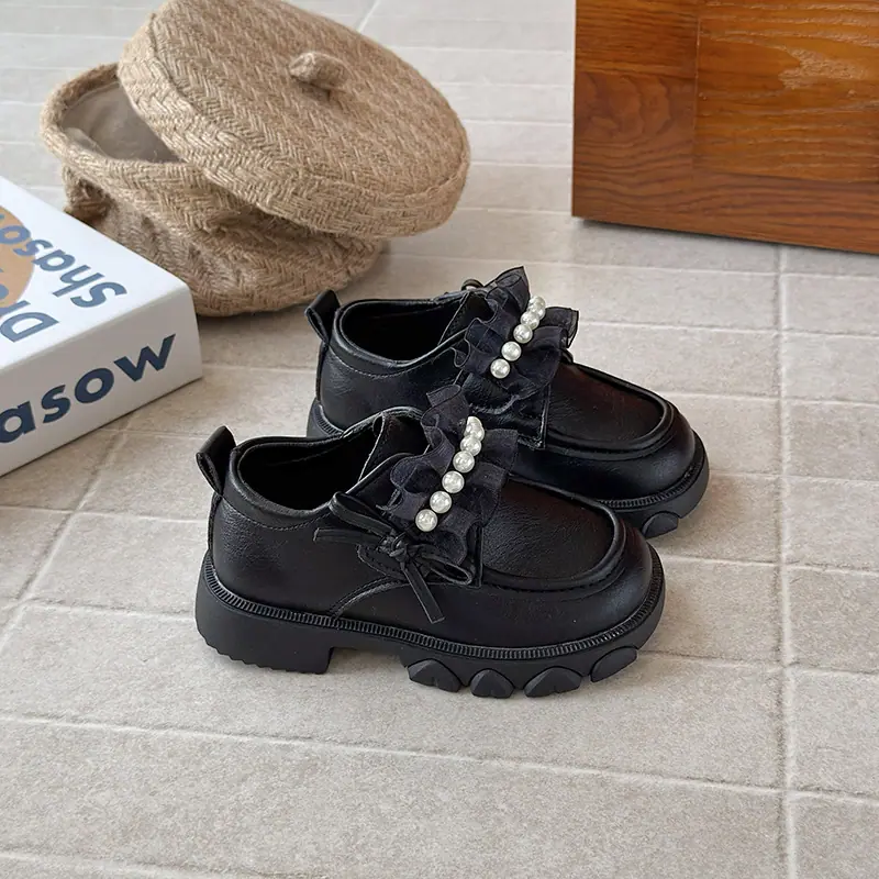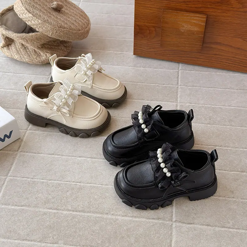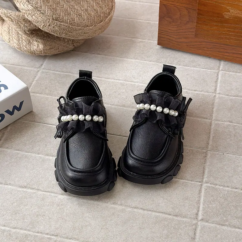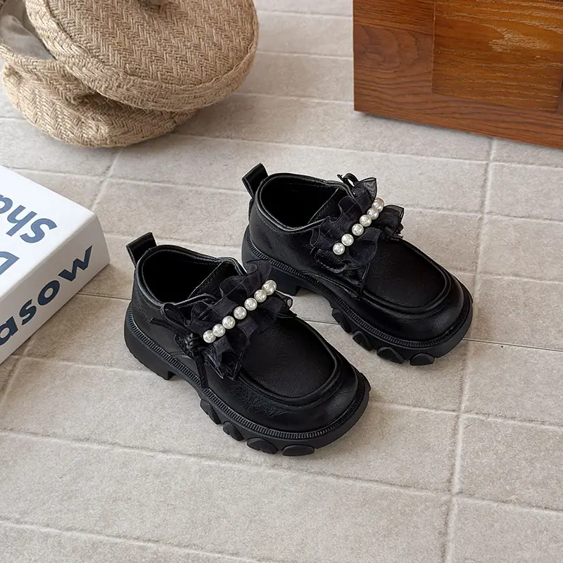 Zapatos de cuero para niña negros estilo británico 2025 primavera y otoño nuevos zapatos para niños zapatos de princesa para niña zapatos sencillos mocasines