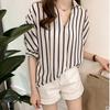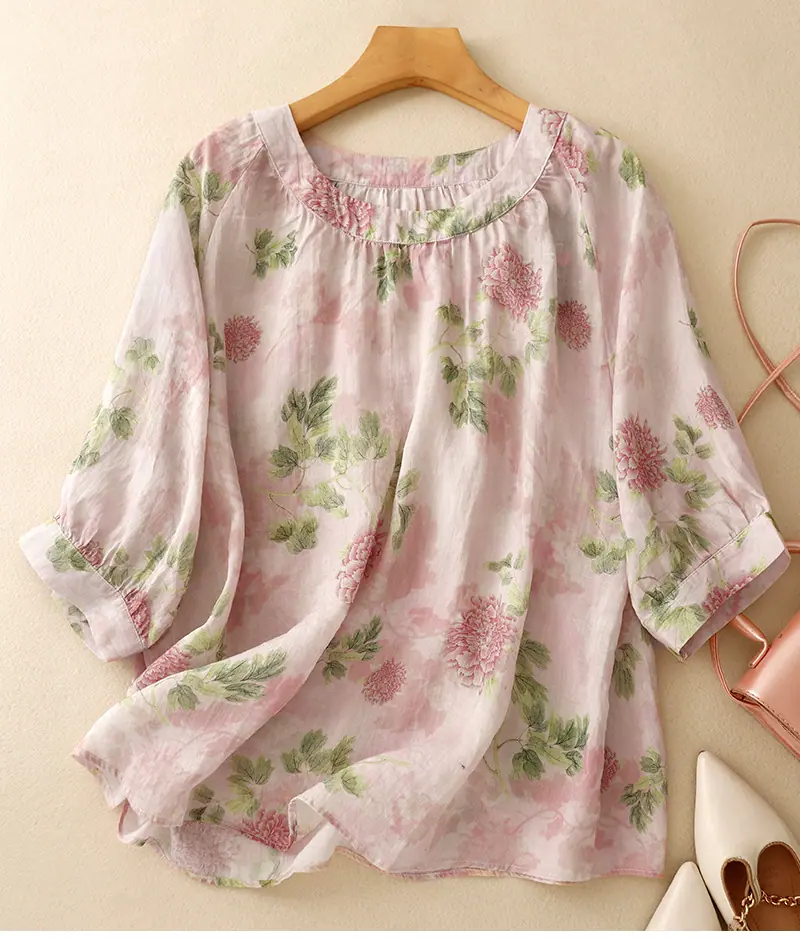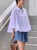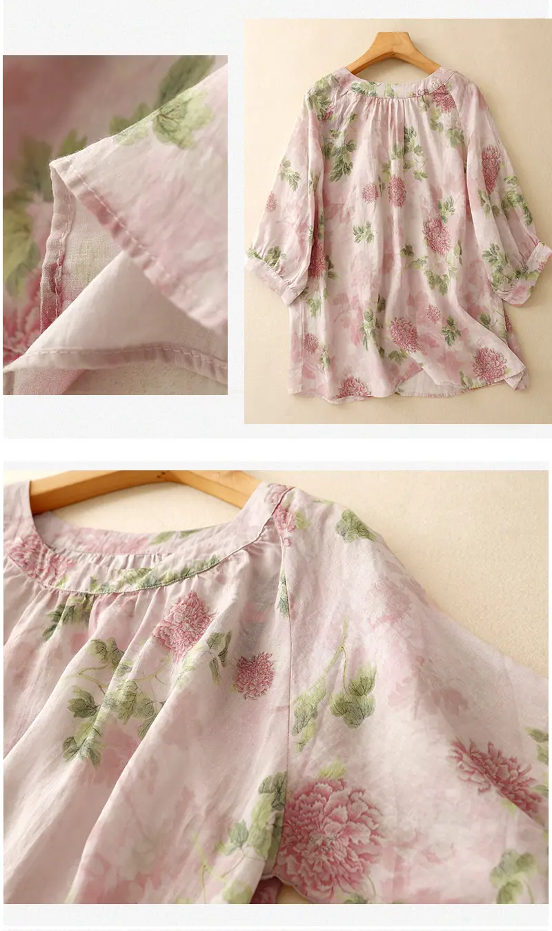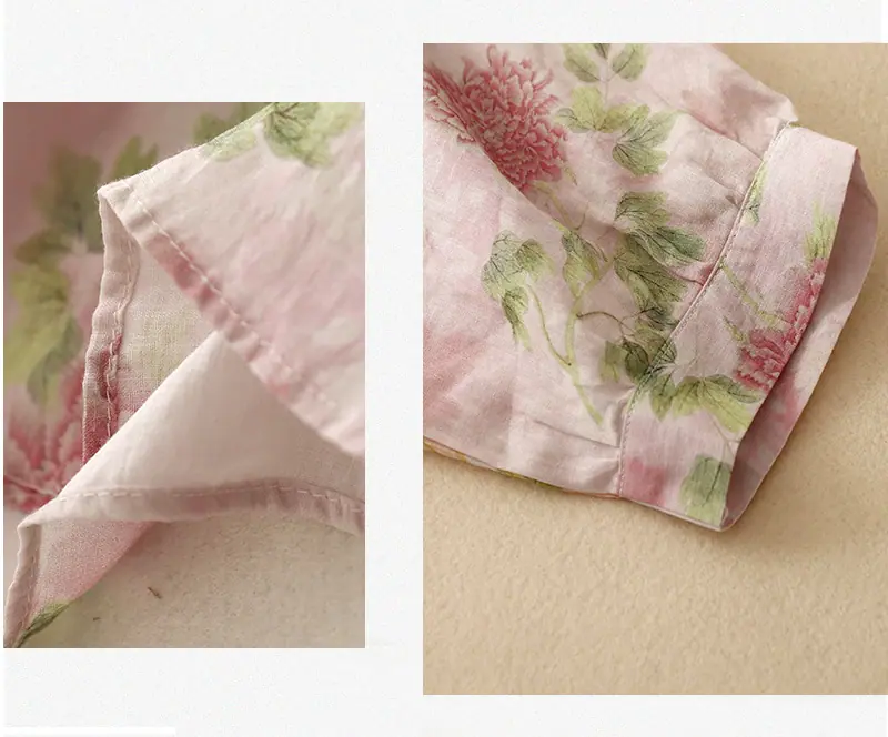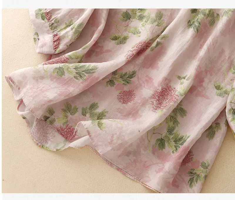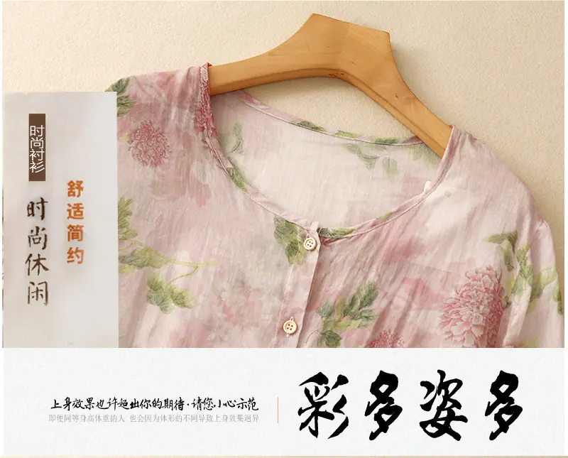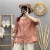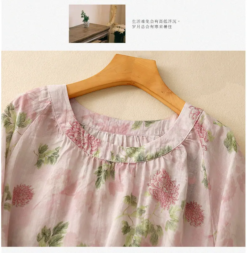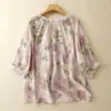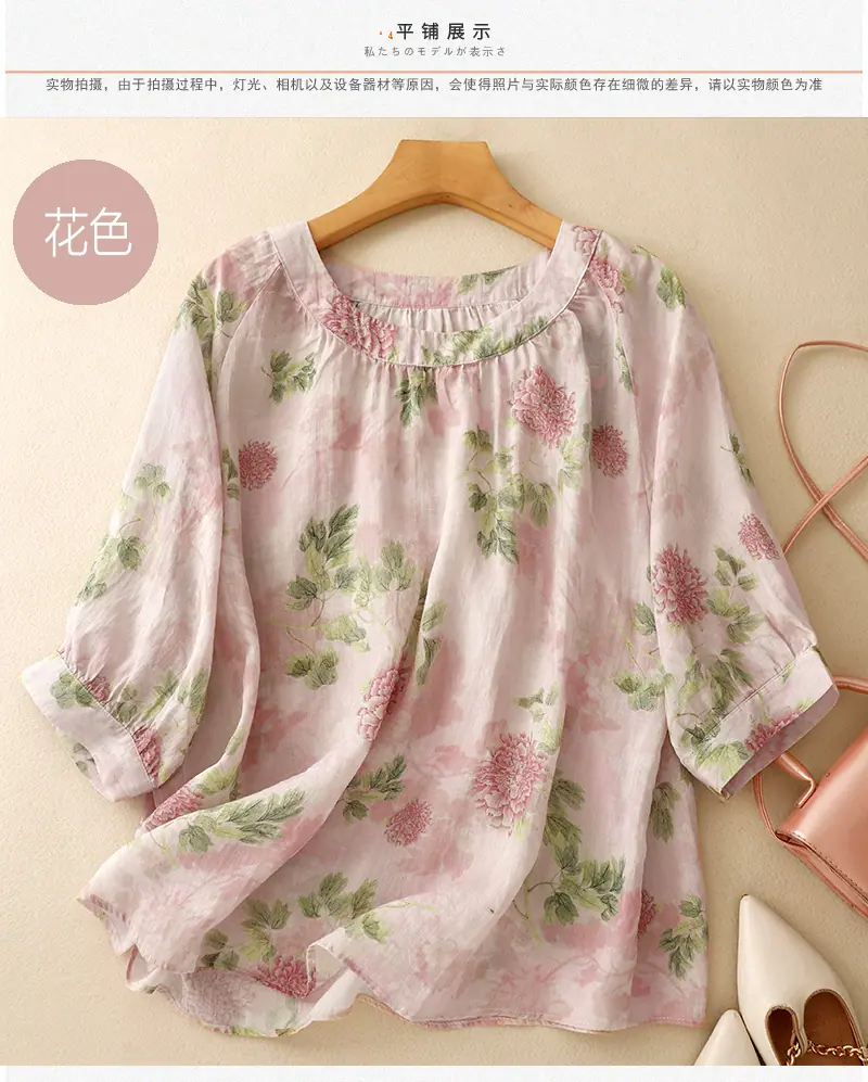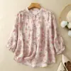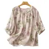 Verano 2025 Nuevo Suelto Literario Dulce Cuello Redondo Jersey Floral Ramio Camisa Color de la Imagen Color Sólido Estilo Patchwork