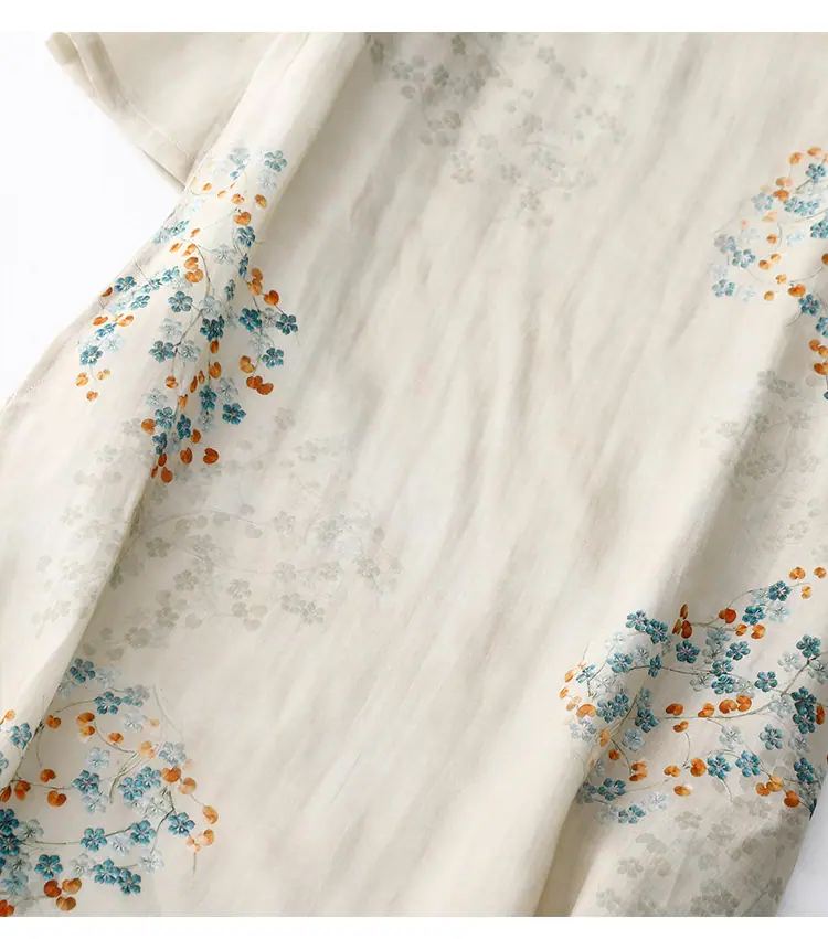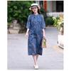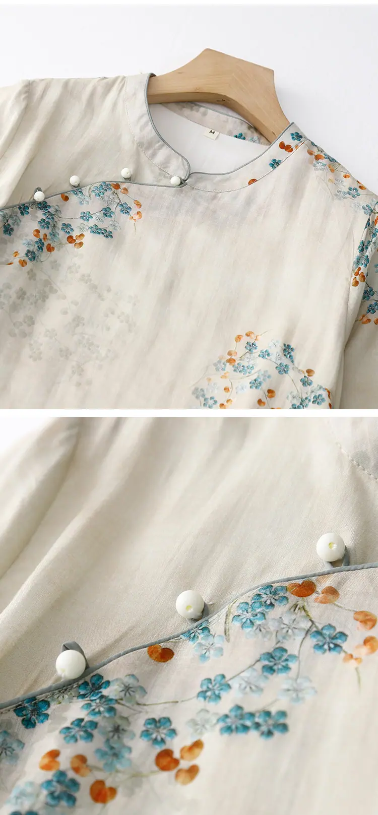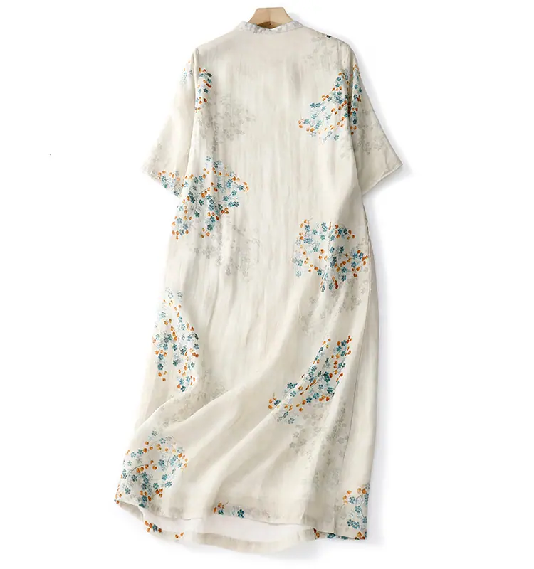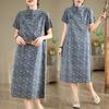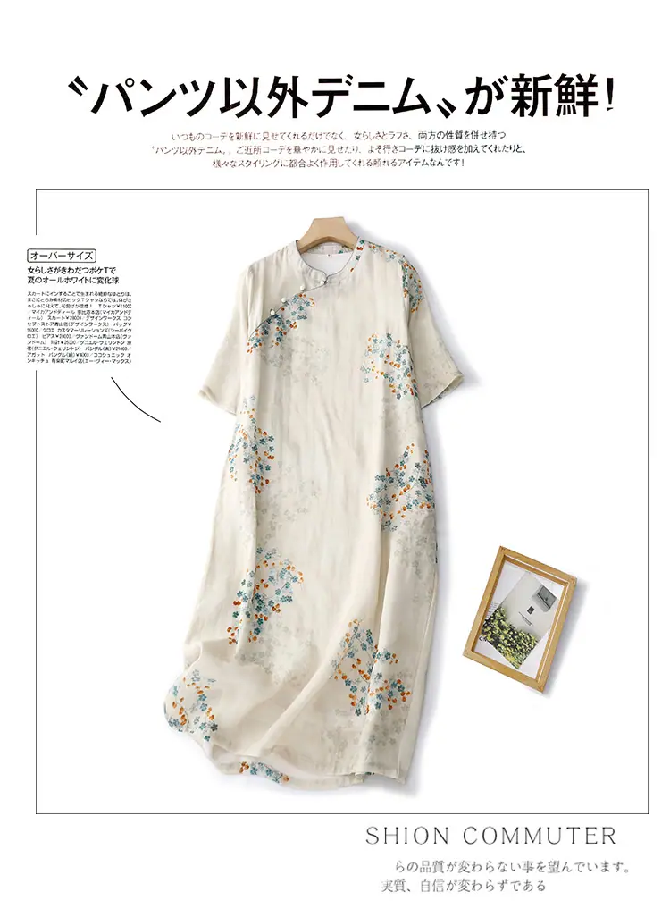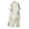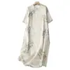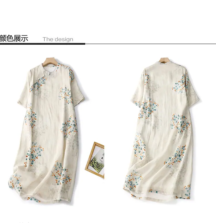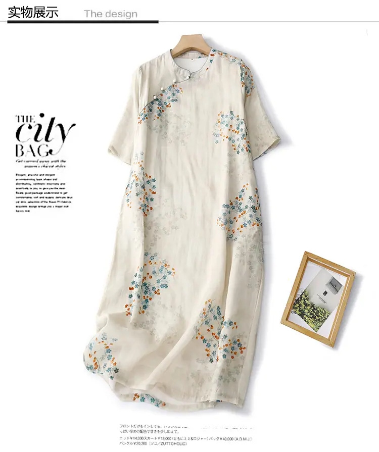 Foto Real Cheongsam Chino Mejorado Reductor de Edad Cuello Mao Solapa Inclinada Adelgazante Verano Ramio Vestido de Manga Media Patchwork para Mujer