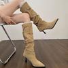 Botas largas retro versátiles de moda para mujer otoño e invierno nuevas botas slouch plisadas botas largas de tacón de aguja adelgazantes botas altas de tacón alto botas ajustadas