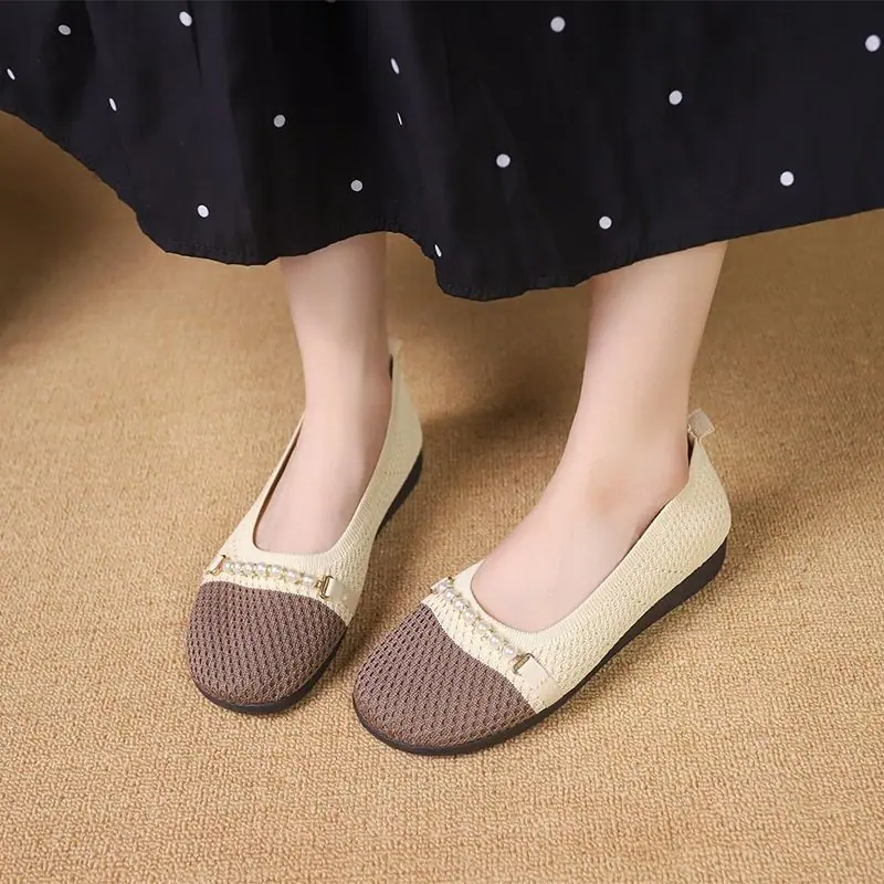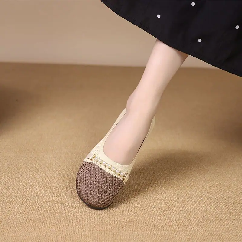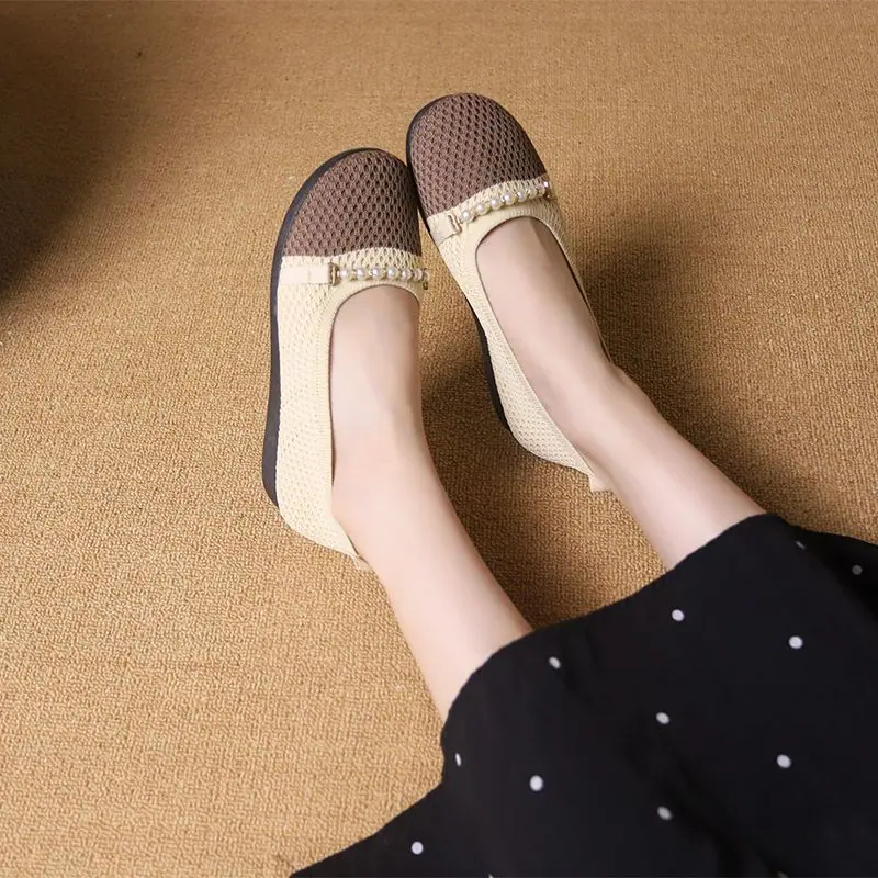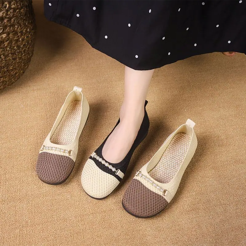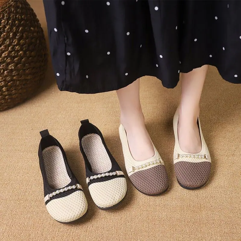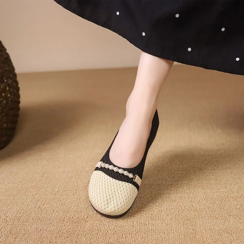 Zapatos de Moda para Madre Suela Delgada Zapatos de Tela de Pekín Antiguos para Mujer Verano Otoño 2025 Nuevos Suela Suave Cómodos Malla Transpirable Ligeros