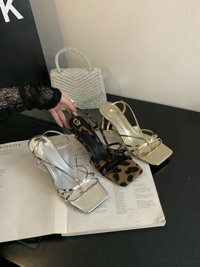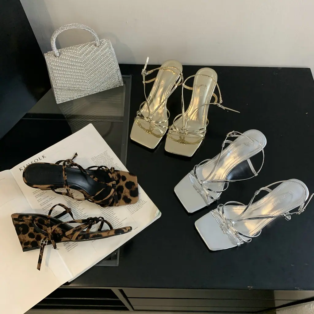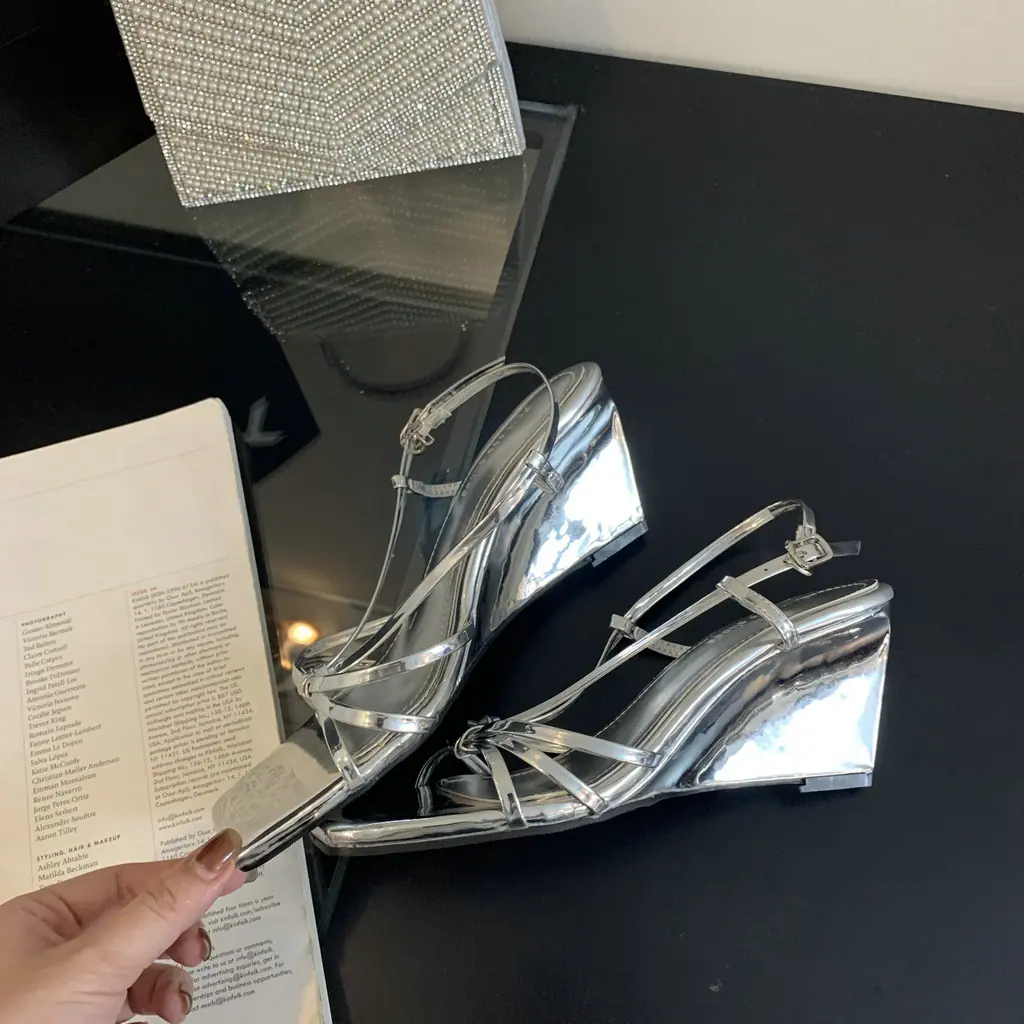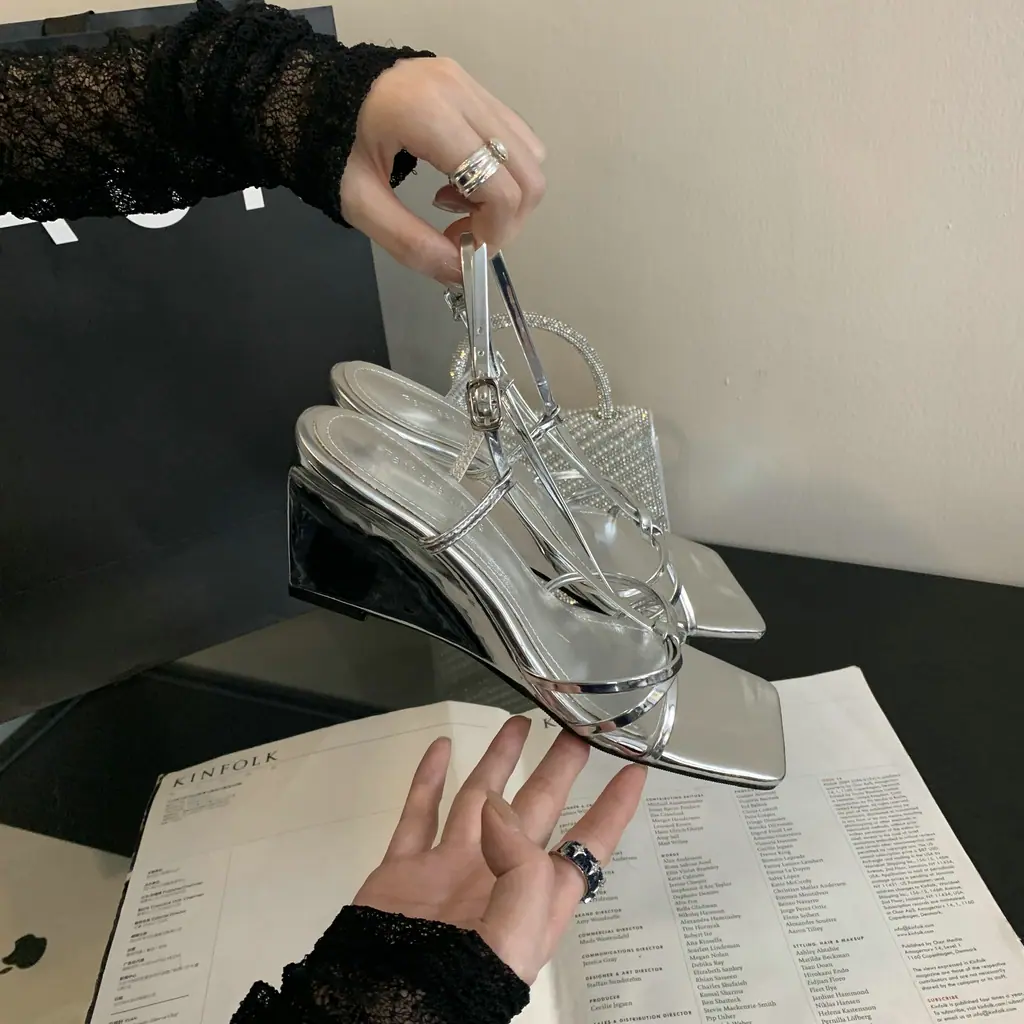 Sandalias de Cuña de Verano 2025 con Punta Cuadrada y Correa Trasera, Sandalias de Tira Fina de Moda Estilo Hada