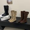 Nuevas Botas de Caña Media con Punta Redonda para Otoño e Invierno 2025 Botas de Gamuza Suave y Cera con Caña Ancha Botas Simples para Exteriores