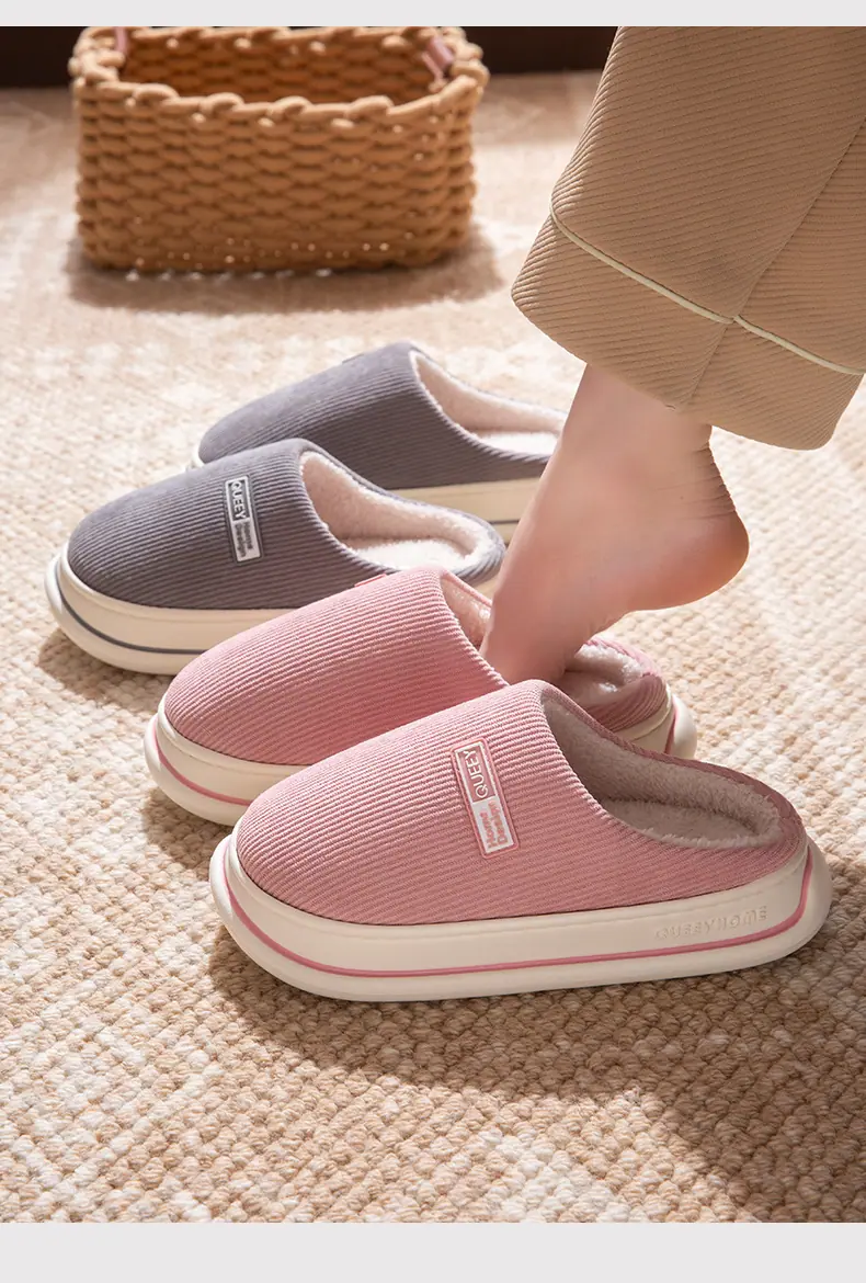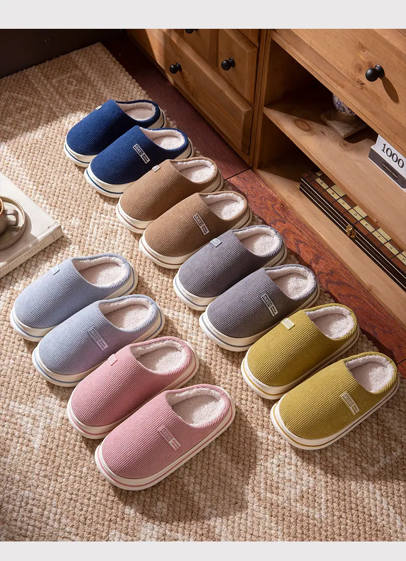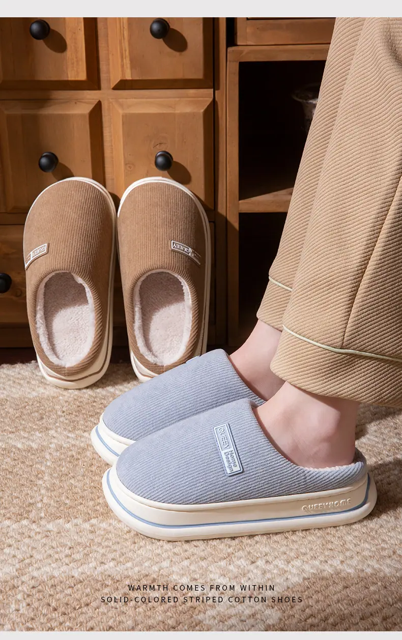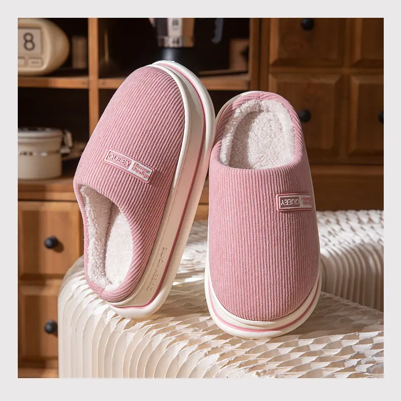 Pantuflas de algodón afelpado otoño e invierno para mujer para el hogar cálidas de suela gruesa antideslizantes 2025 nuevo hogar pareja sensación de 'pisar mierda' hombres