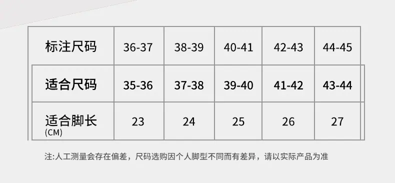 36-37 (suitable for size 35-36), 38-39 (suitable for size 37-38), 40-41 (suitable for size 39-40), 42-43 (suit...