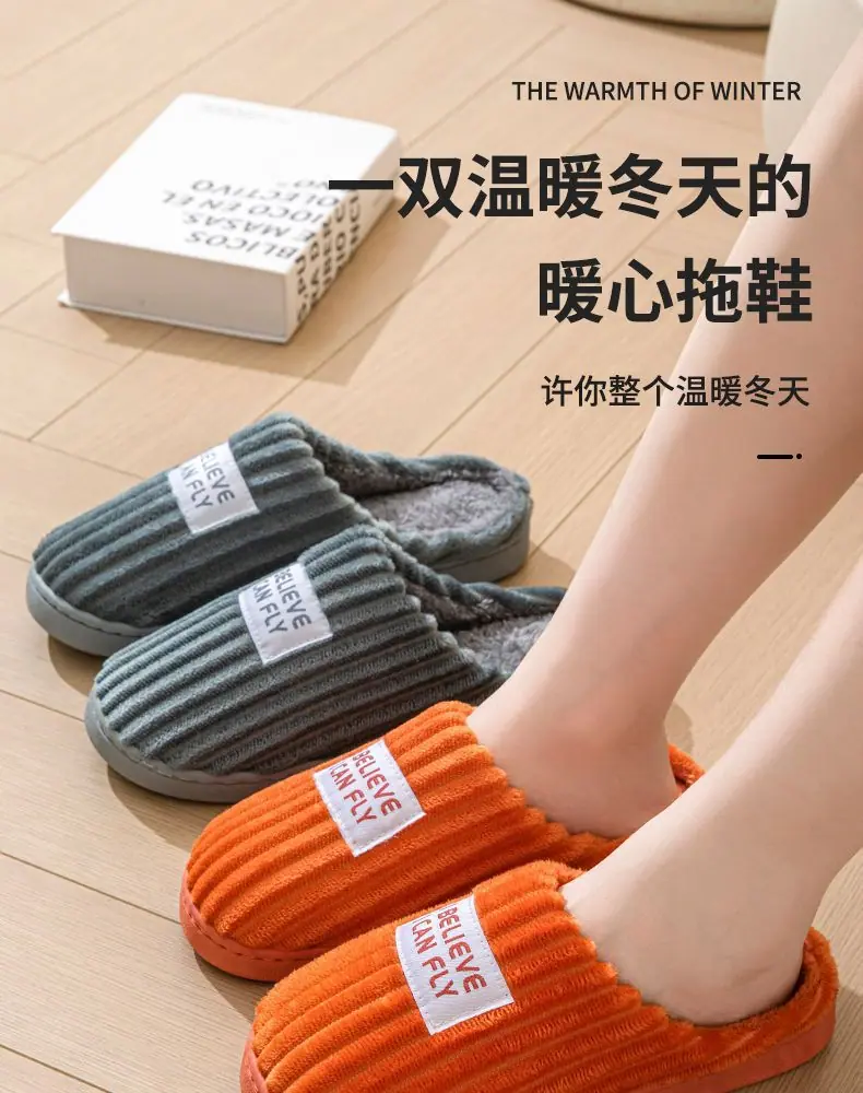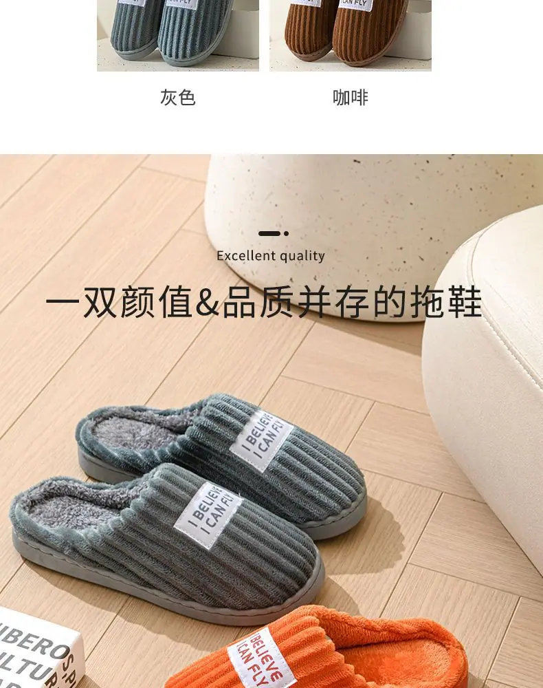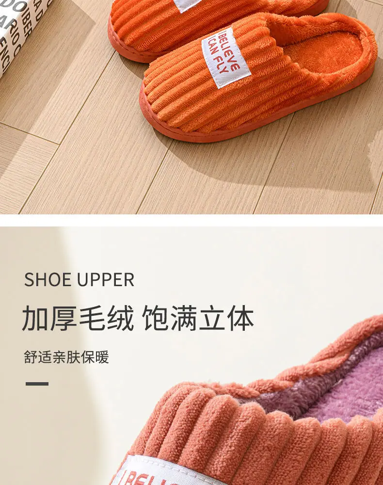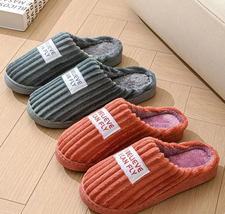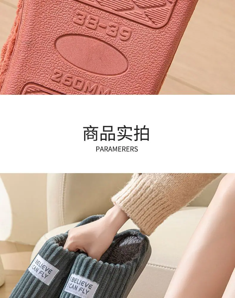 Pantuflas de Algodón para Otoño e Invierno para el Hogar Mujeres 2025 Nuevo Estilo Interior Antideslizante Suela Gruesa Invierno Pantuflas Peludas Cálidas Gruesas Hombres