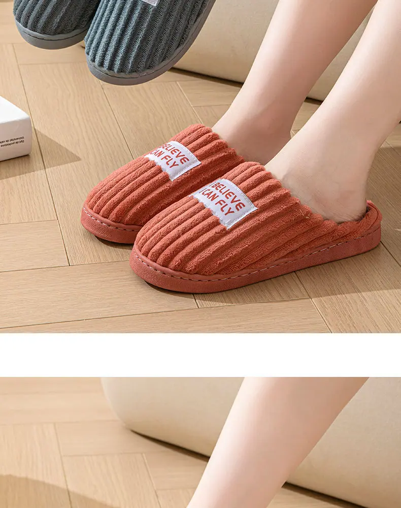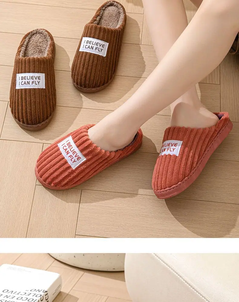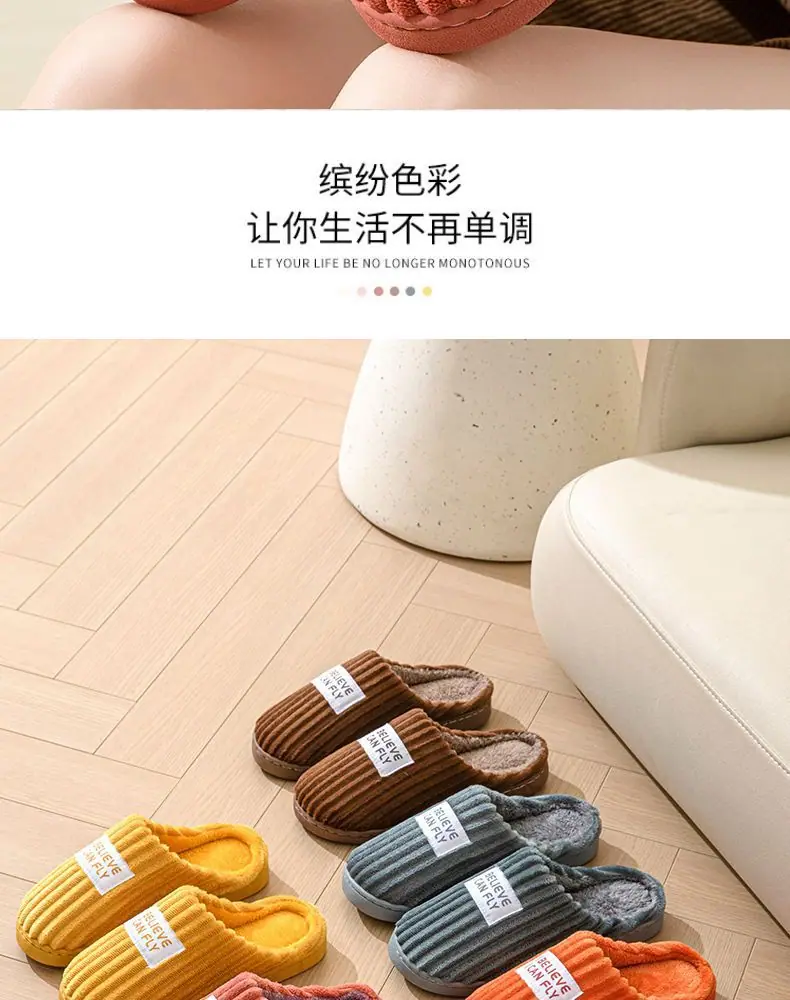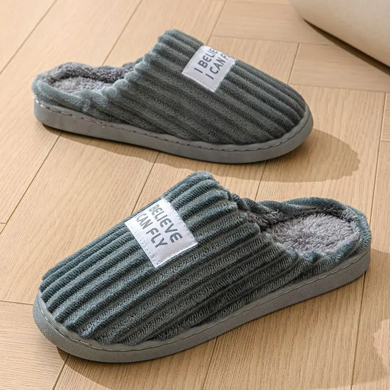 Pantuflas de Algodón para Otoño e Invierno para el Hogar Mujeres 2025 Nuevo Estilo Interior Antideslizante Suela Gruesa Invierno Pantuflas Peludas Cálidas Gruesas Hombres