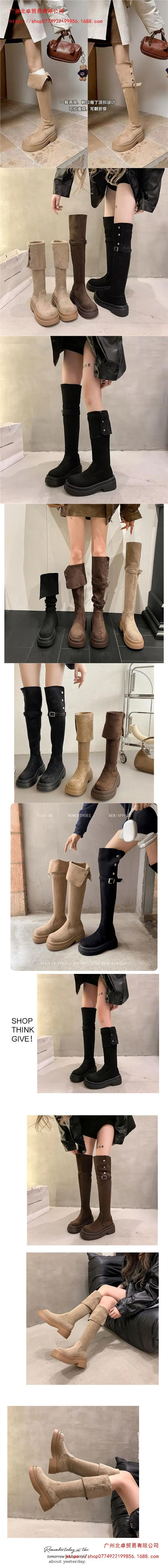 Botas largas de suela gruesa plegables de dos usos para mujer otoño e invierno 2024 nuevas botas de caballero por encima de la rodilla con tacón grueso otoño e invierno