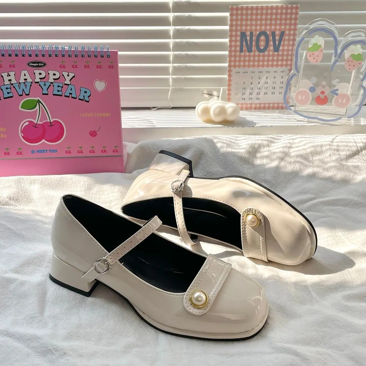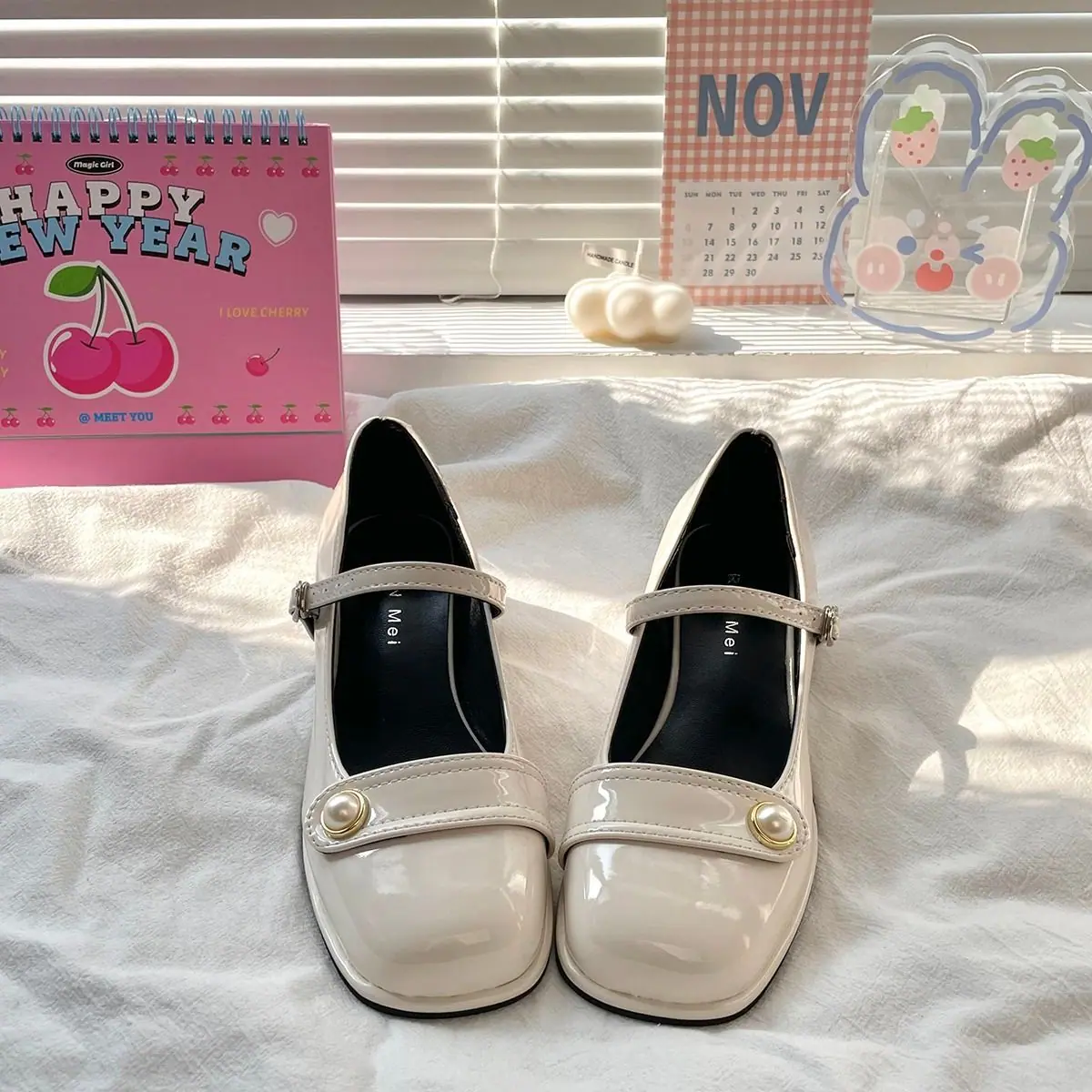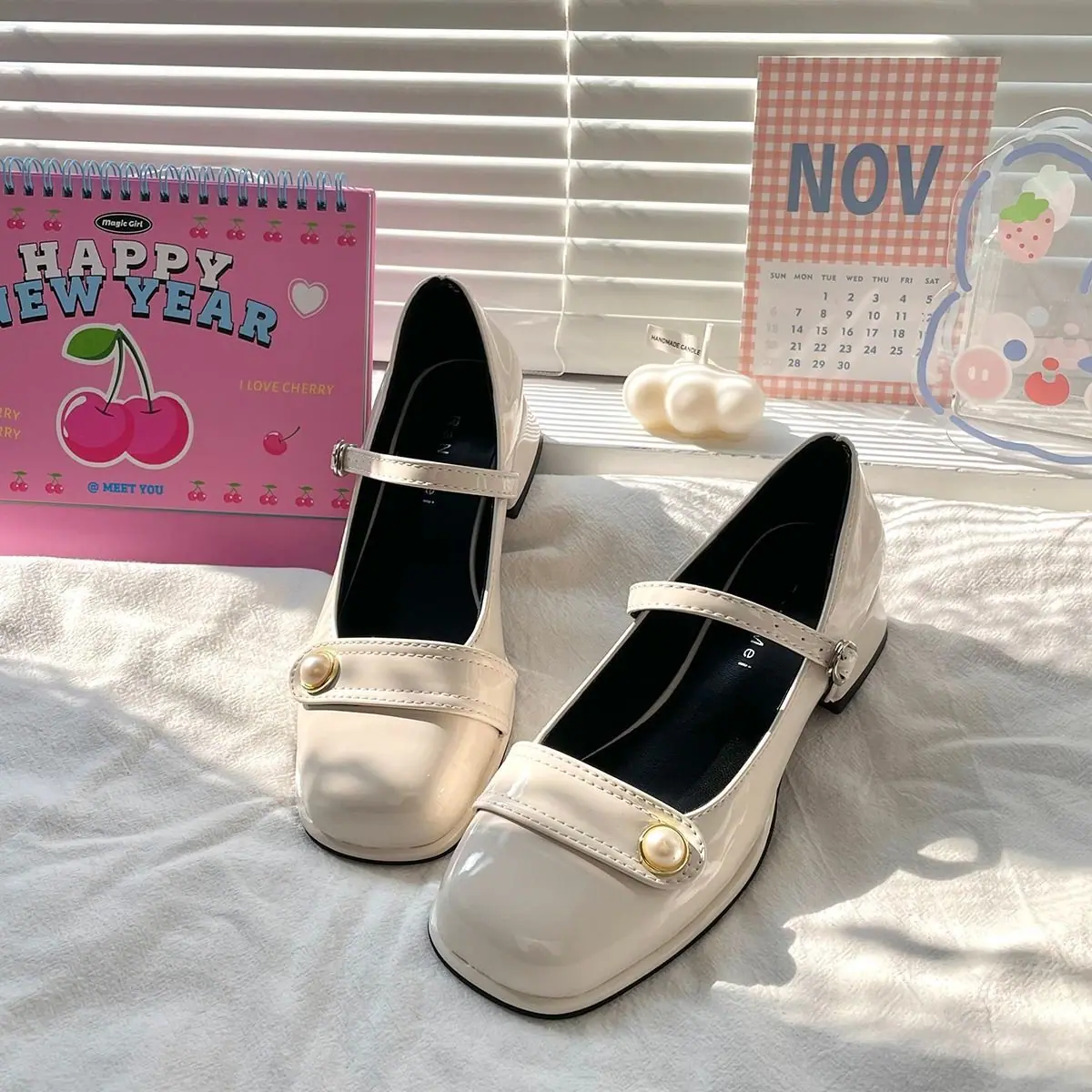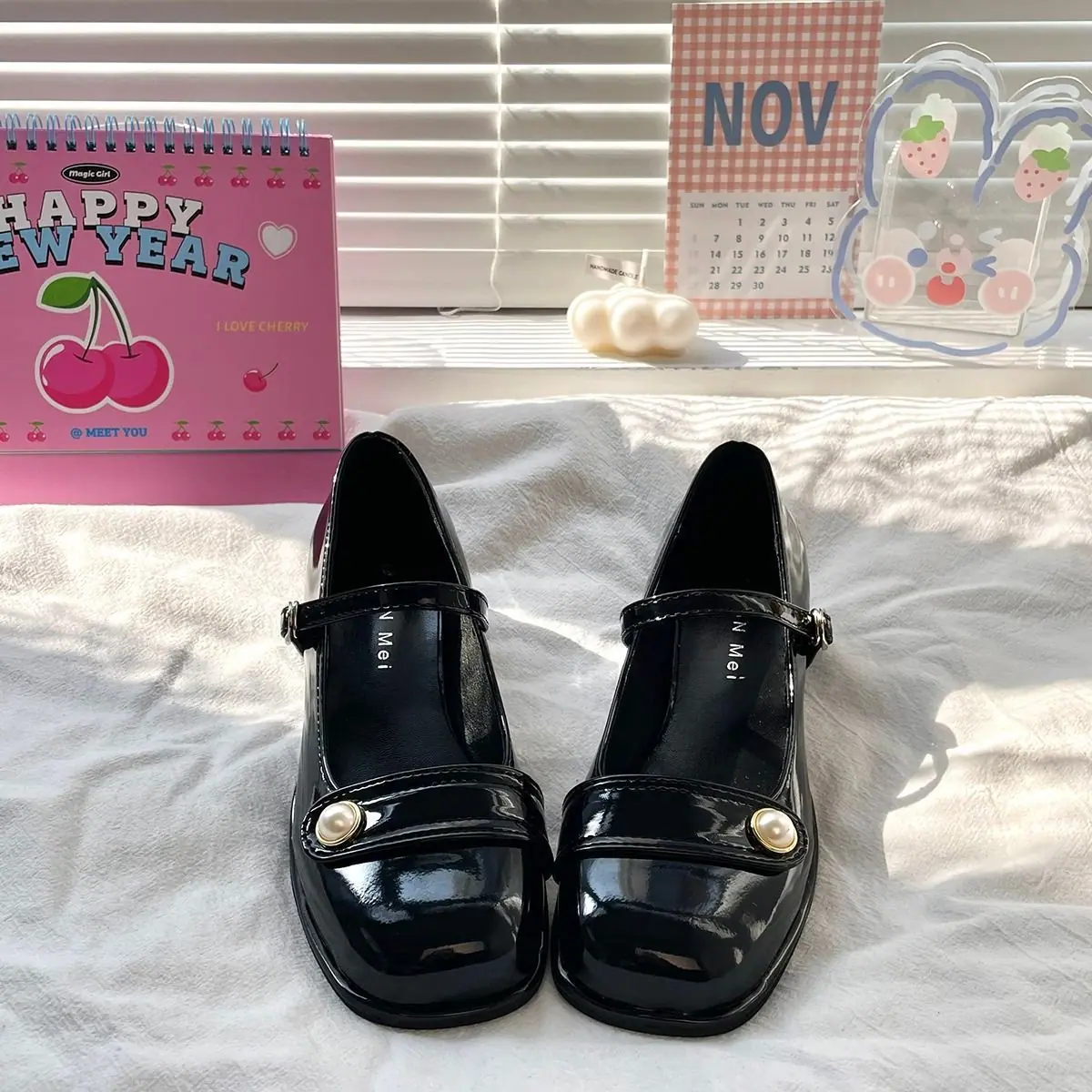 Zapatos Mary Jane de punta cuadrada con una tira y tacones gruesos, estilo británico para mujer, primavera/verano 2025, versátiles