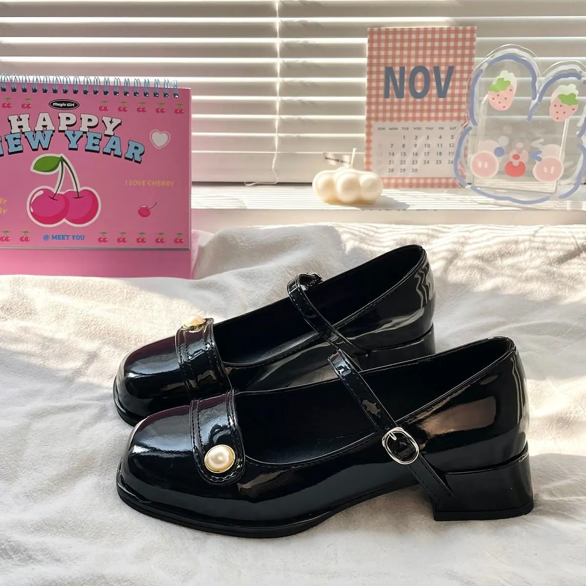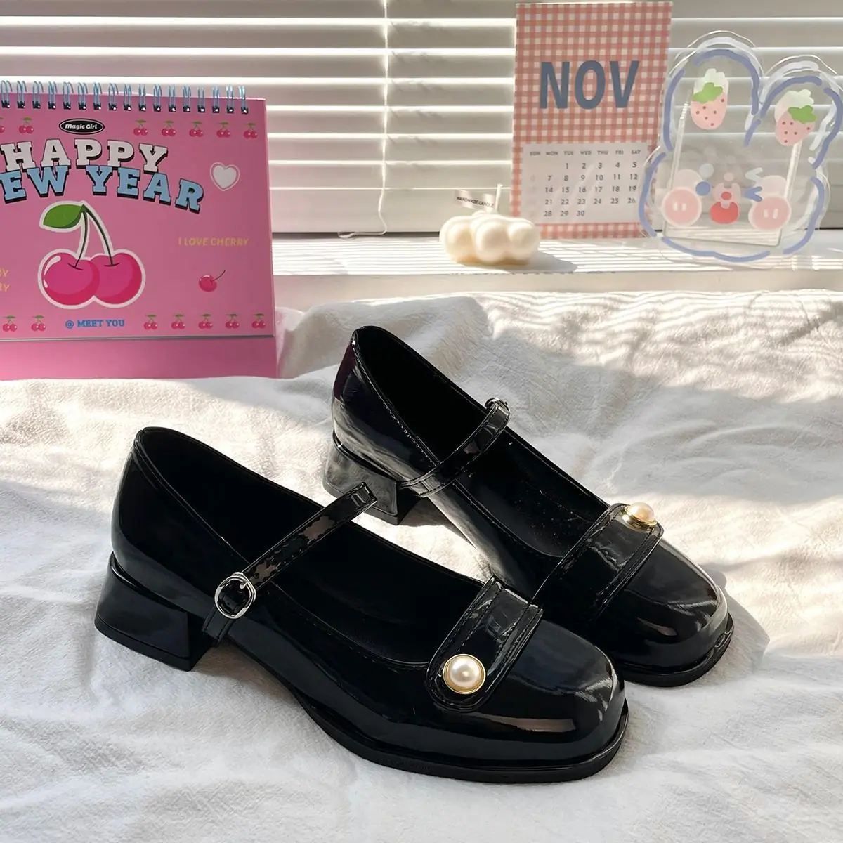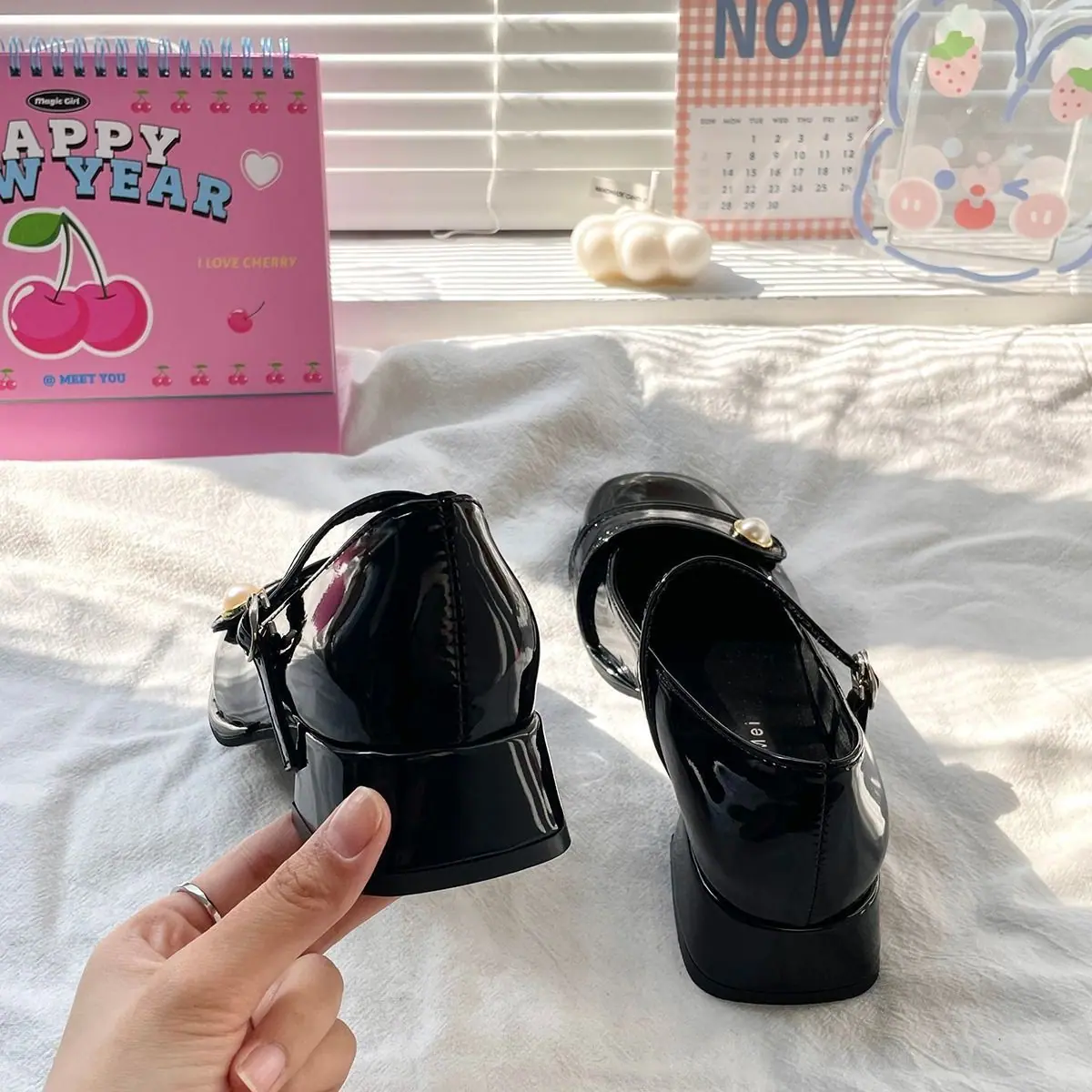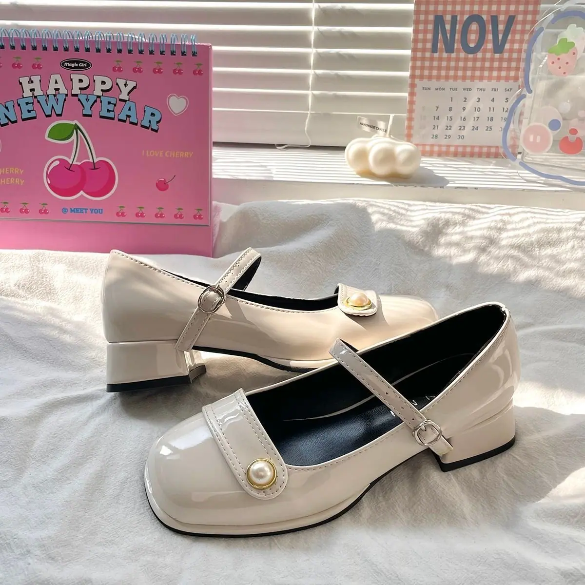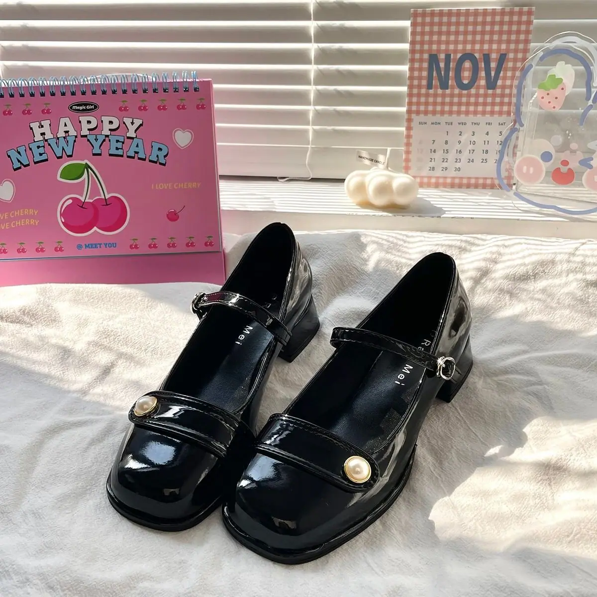 Zapatos Mary Jane de punta cuadrada con una tira y tacones gruesos, estilo británico para mujer, primavera/verano 2025, versátiles