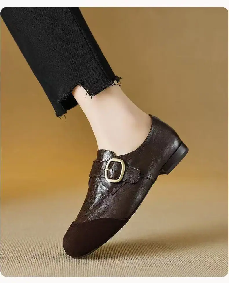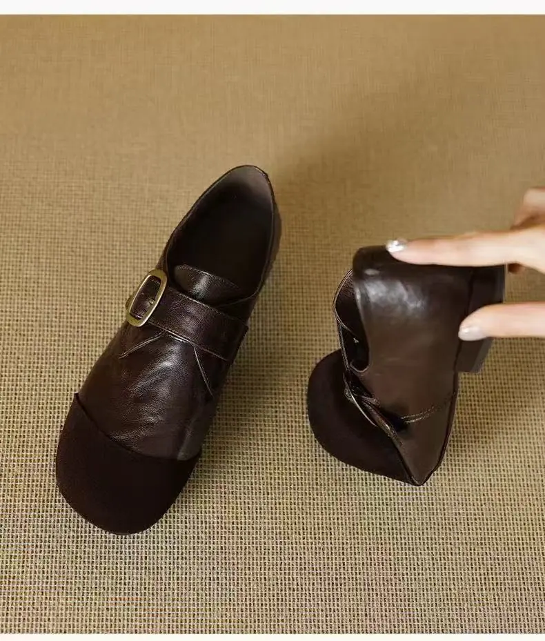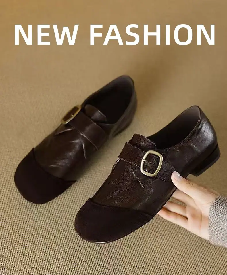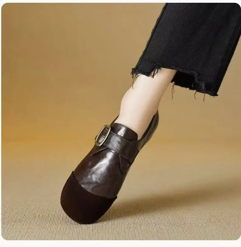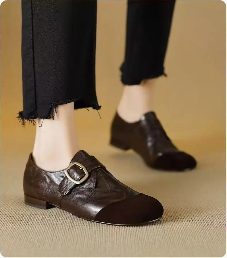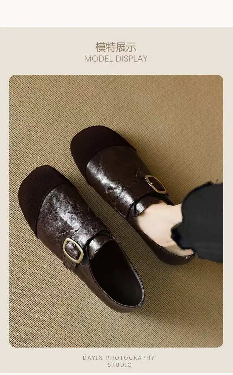 2025 Nuevos Zapatos Mary Jane Retro de Otoño para Mujer Versátiles de Suela Blanda Escote Bajo Zapatos Individuales Franceses Planos Zapatos Pequeños de Cuero