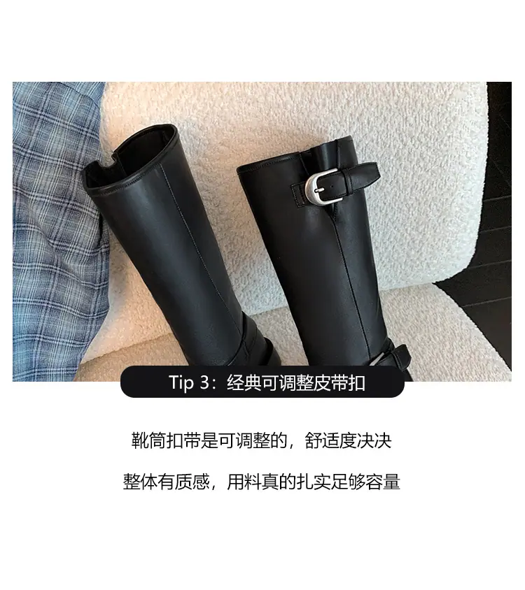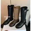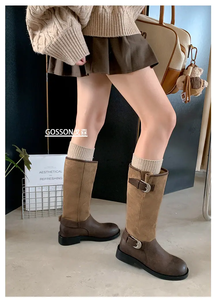 Botas de Mujer Botas hasta la Rodilla 2025 Nuevo Otoño e Invierno Tacón Grueso Punta Redonda Patchwork Botas Western Fruncidas Botas Apiladas Botas de Caballero