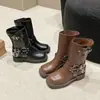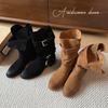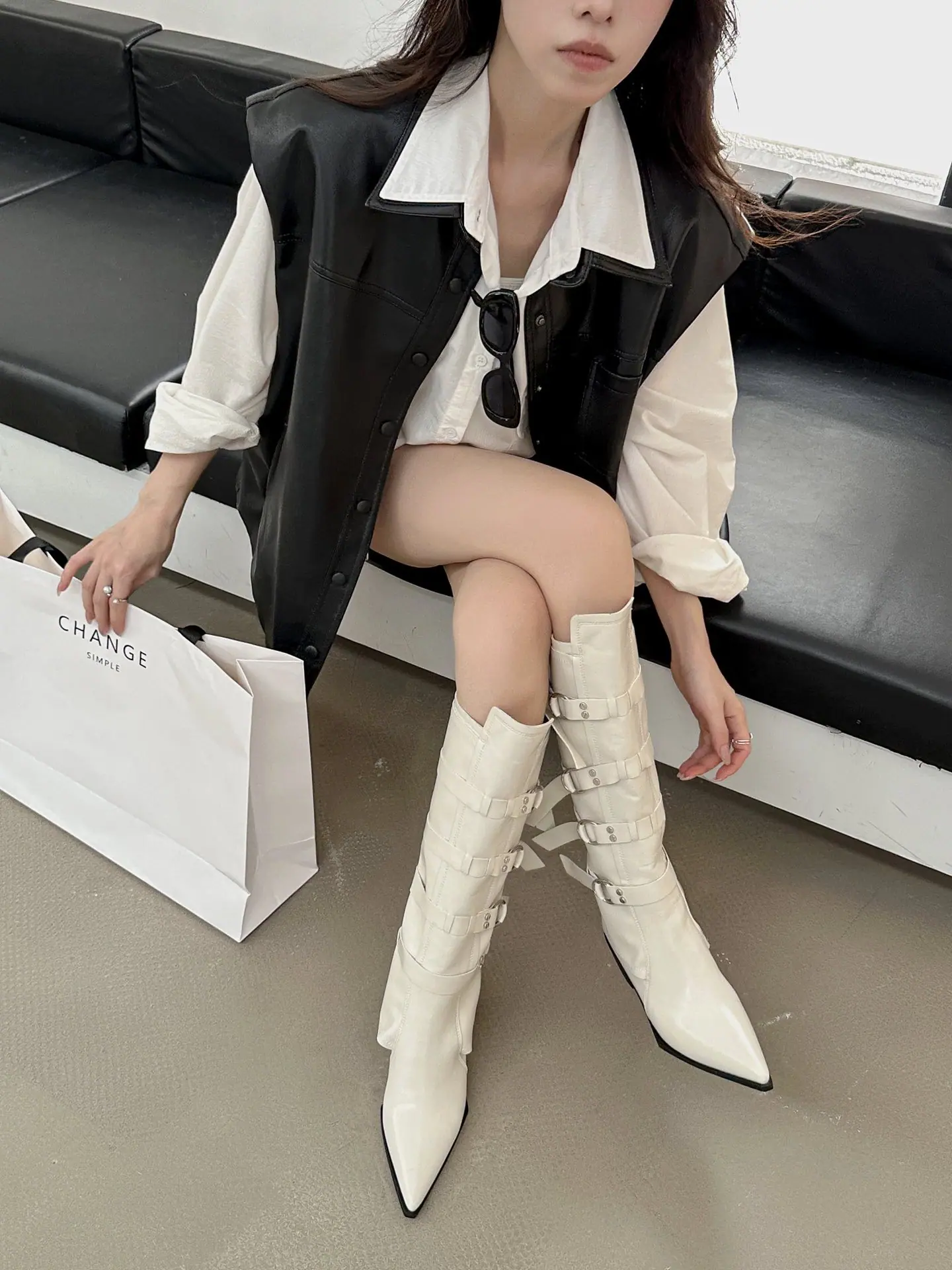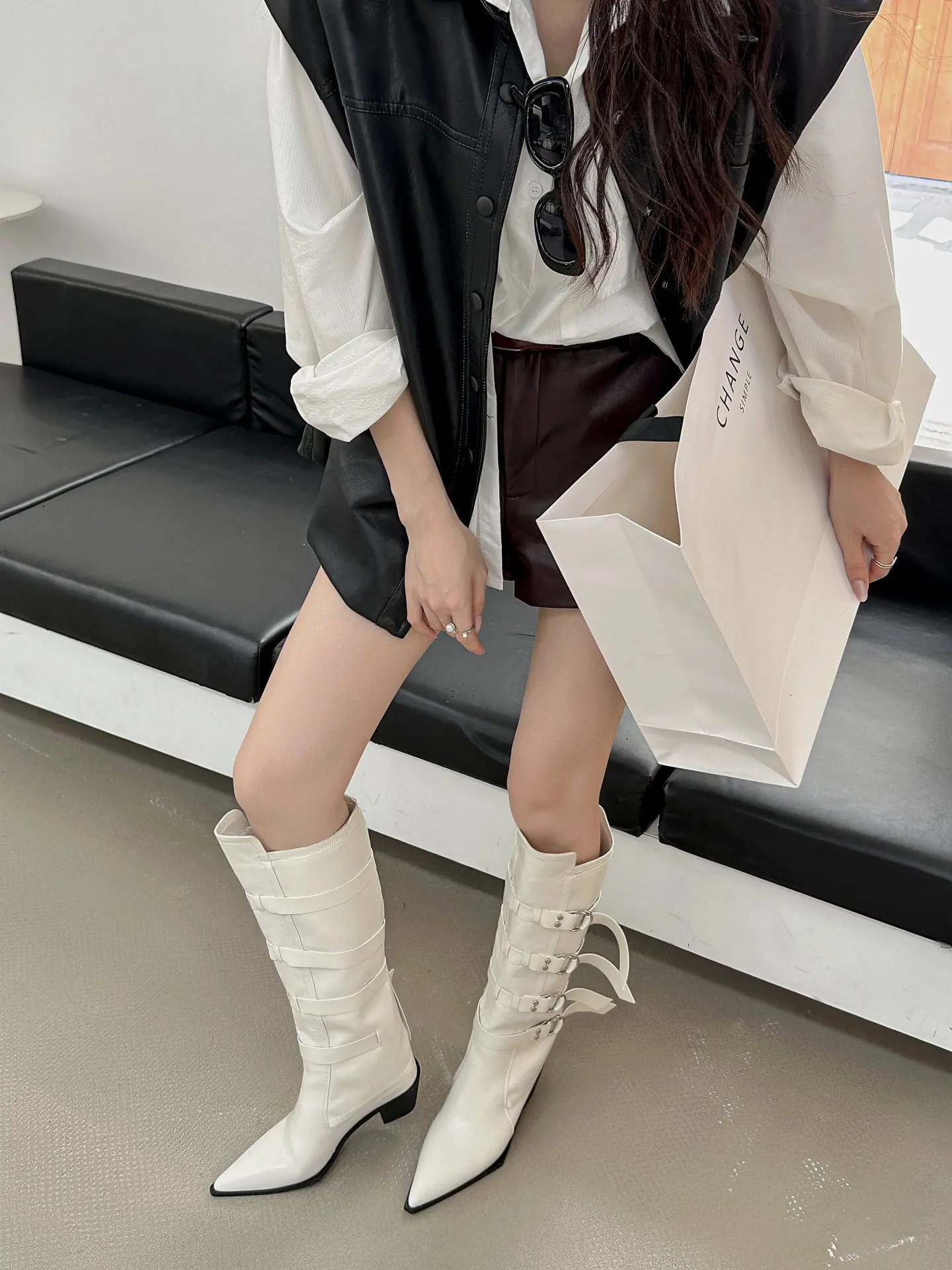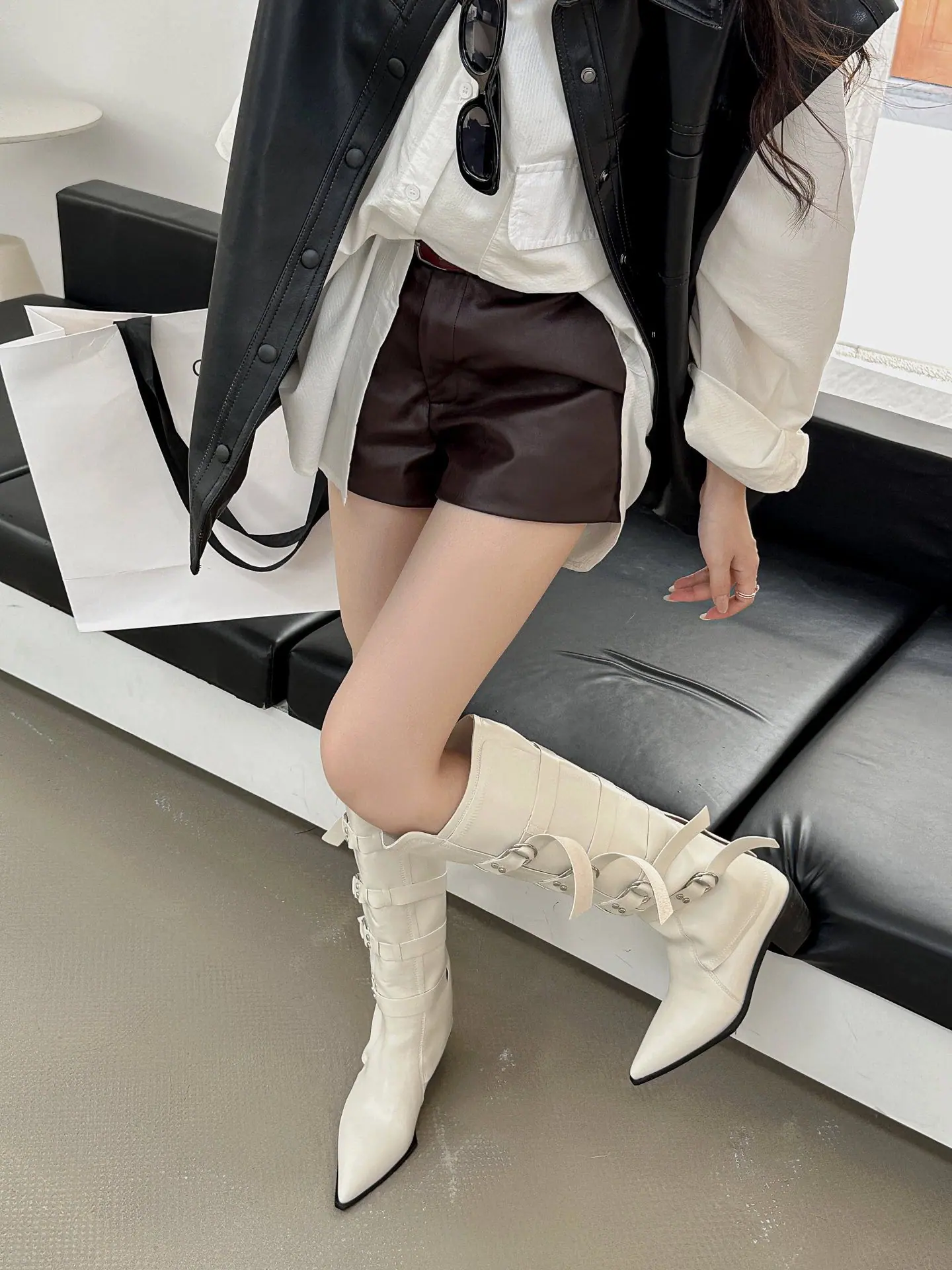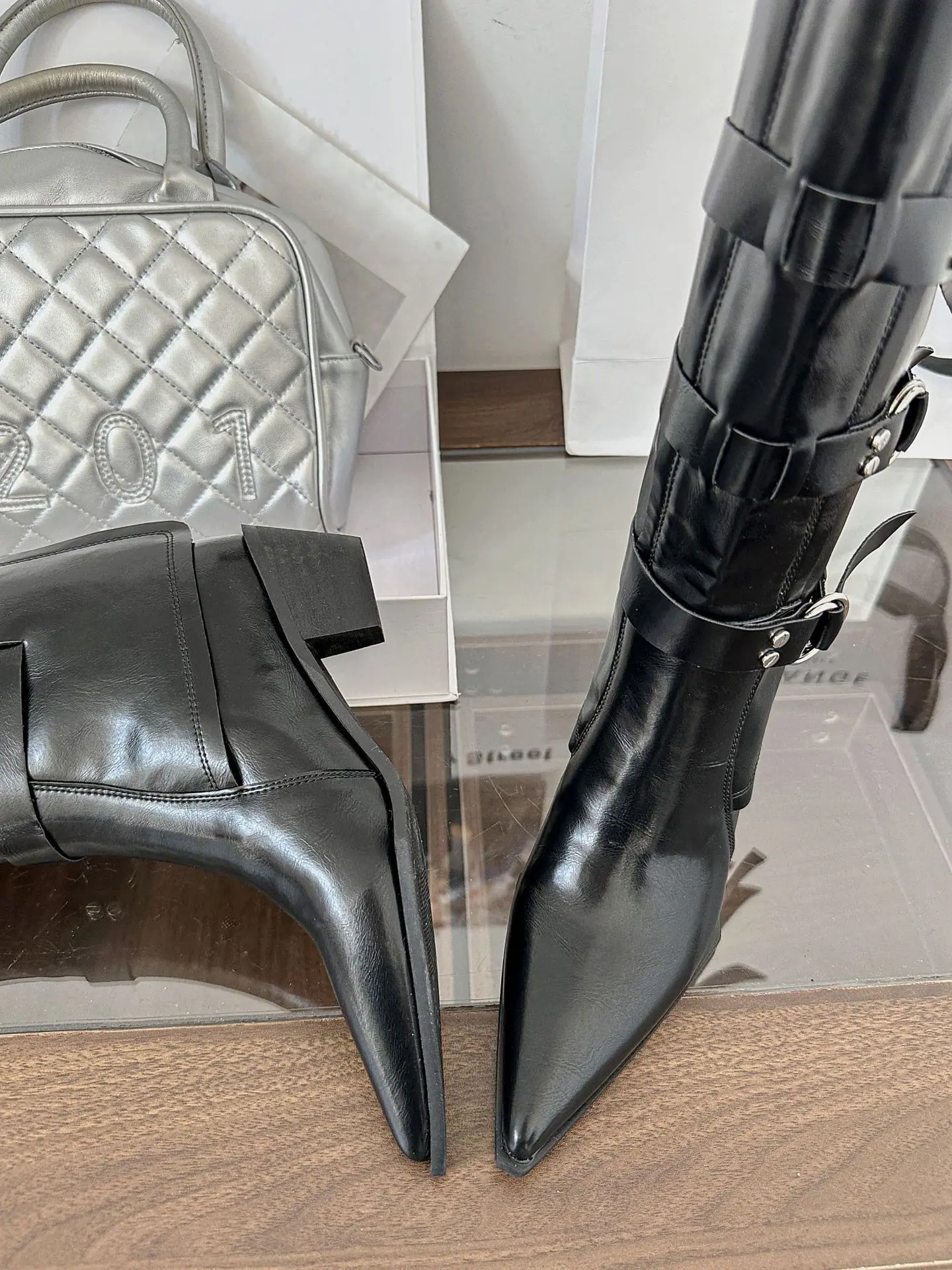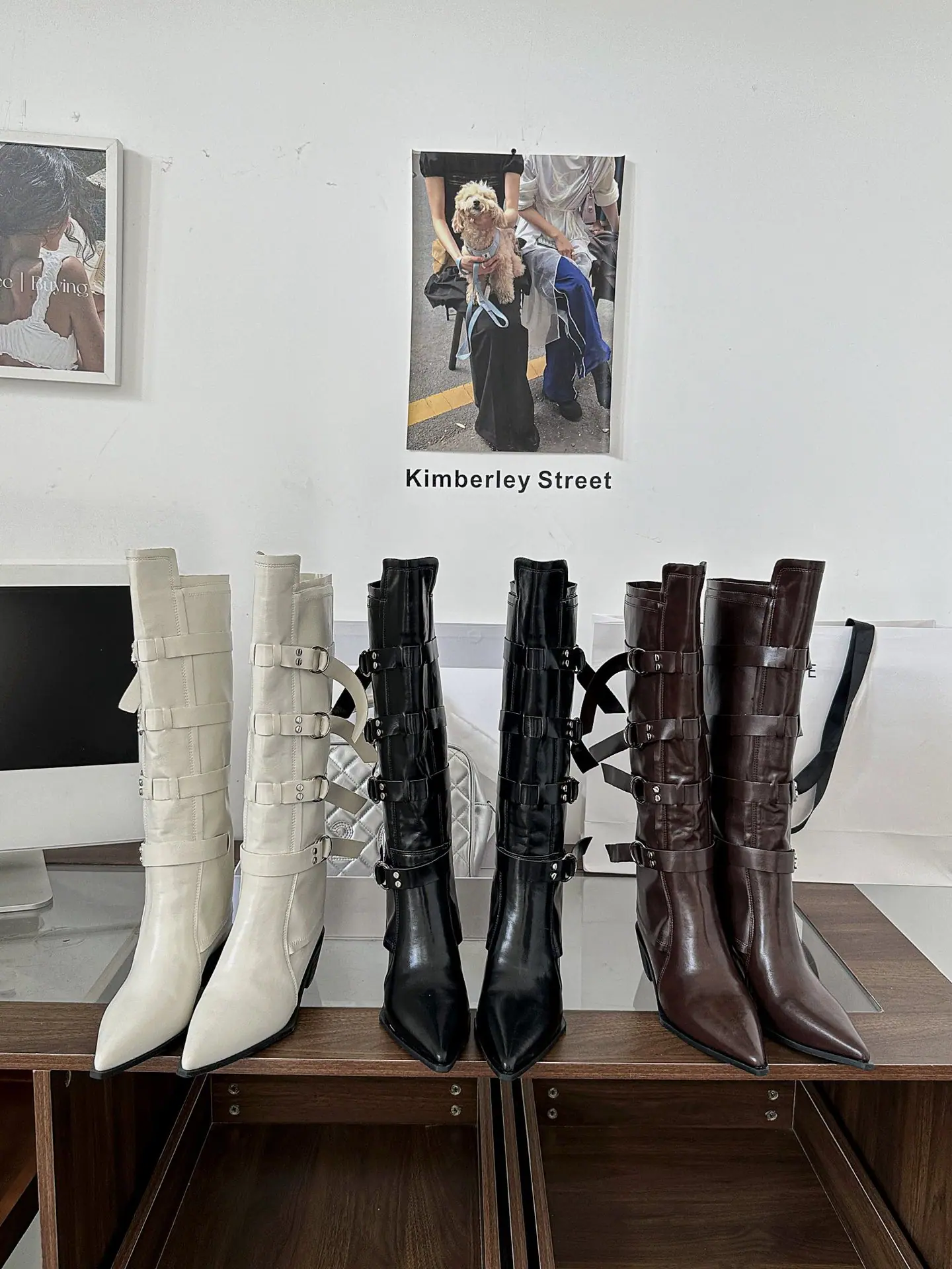Botas de Caballero hasta la Rodilla con Hebilla Marrón Retro para Mujer 2025 Otoño/Invierno Nuevas Botas de Moda de Tacón Grueso Estilo Vaquero Occidental