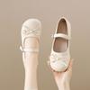 Zapatos Mary Jane 2025 Verano Nuevo Blanco Estilo Japonés Estilo Punta Redonda Boca Baja Tacón Grueso con Lazo para Falda Zapatos Lindos