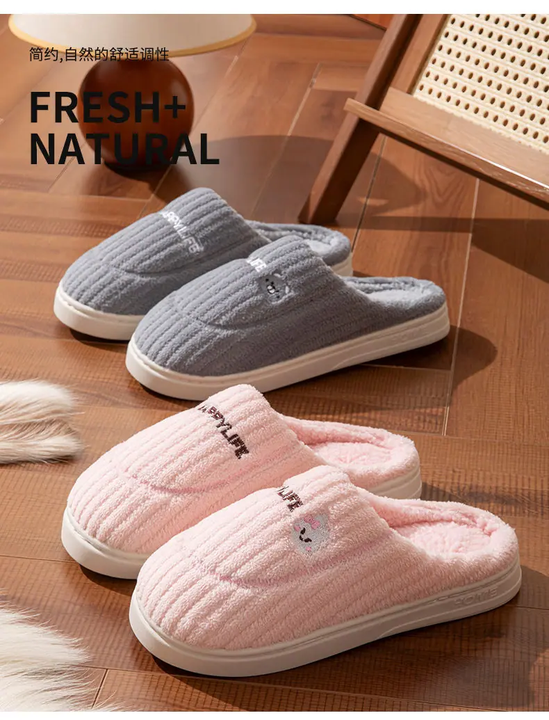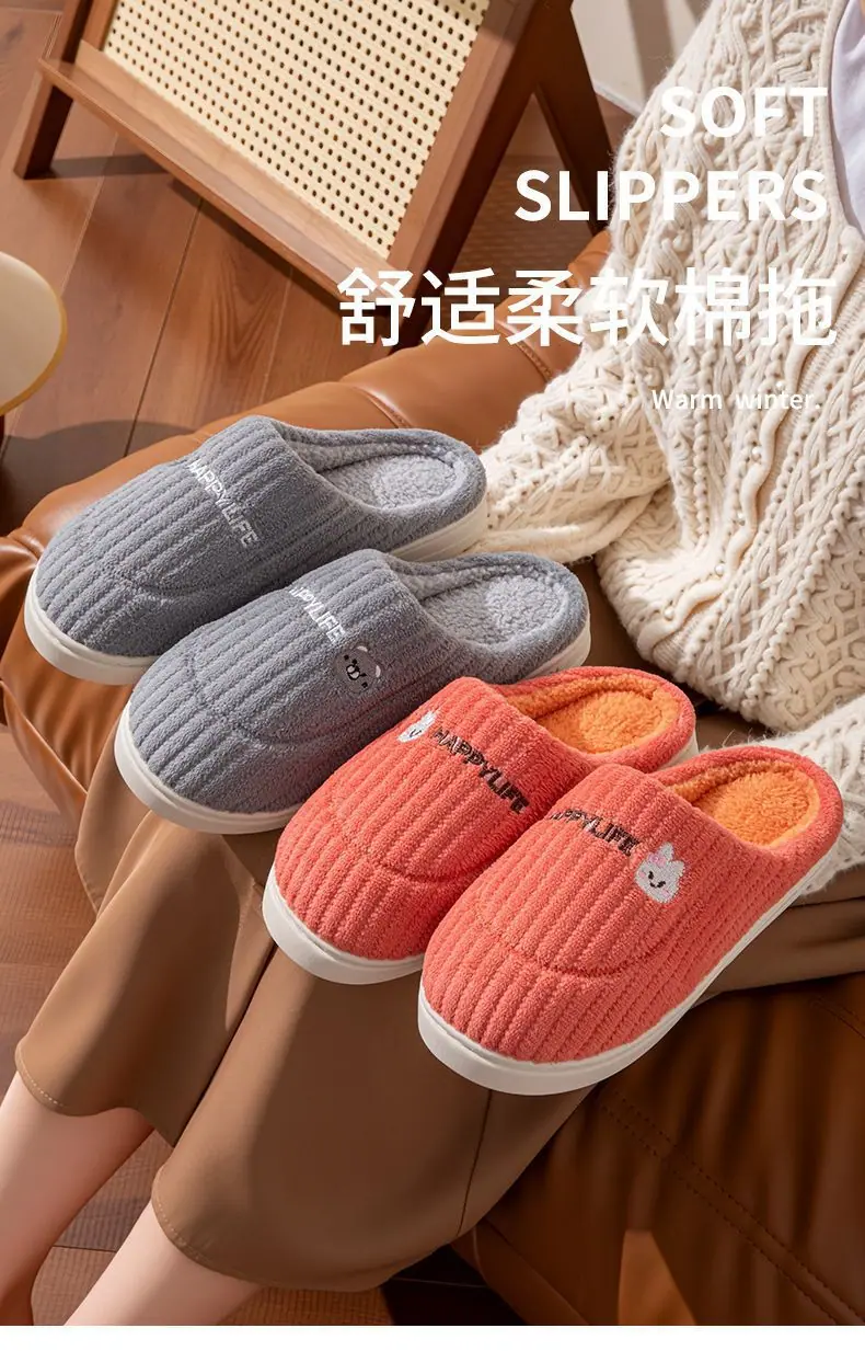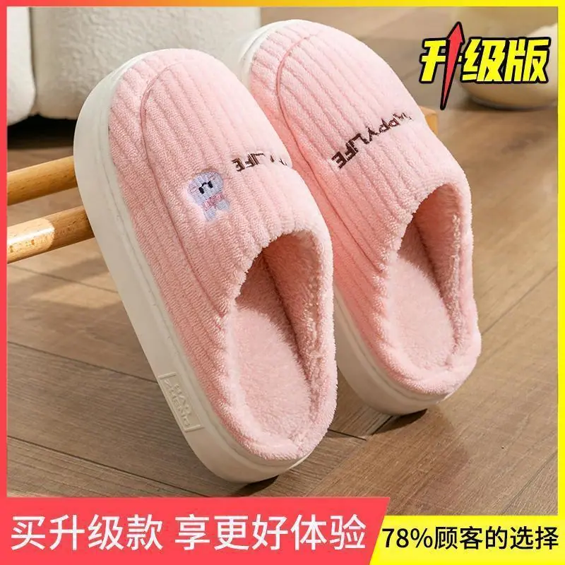Pantuflas de Pareja Antideslizantes para Interior del Hogar Zapatos para Hombre para Después del Parto Zapatos de Punta Cerrada Pantuflas de Algodón Felpa para Mujer Pantuflas de Algodón para el Hogar Otoño e Invierno