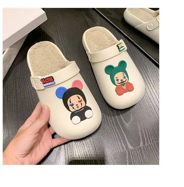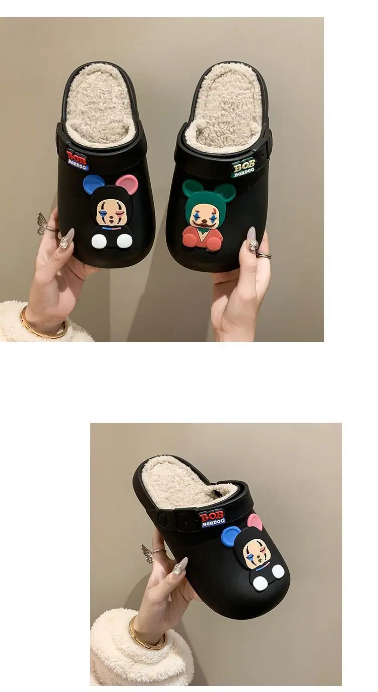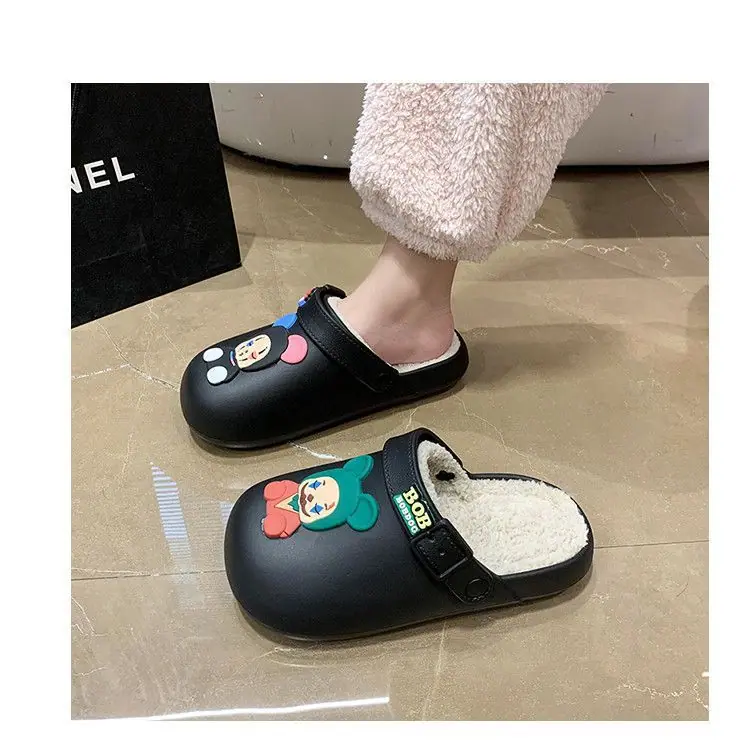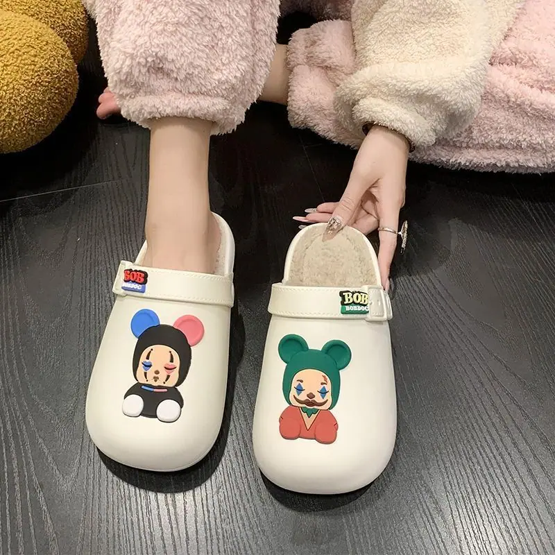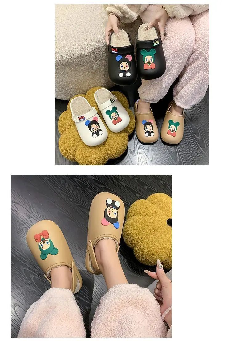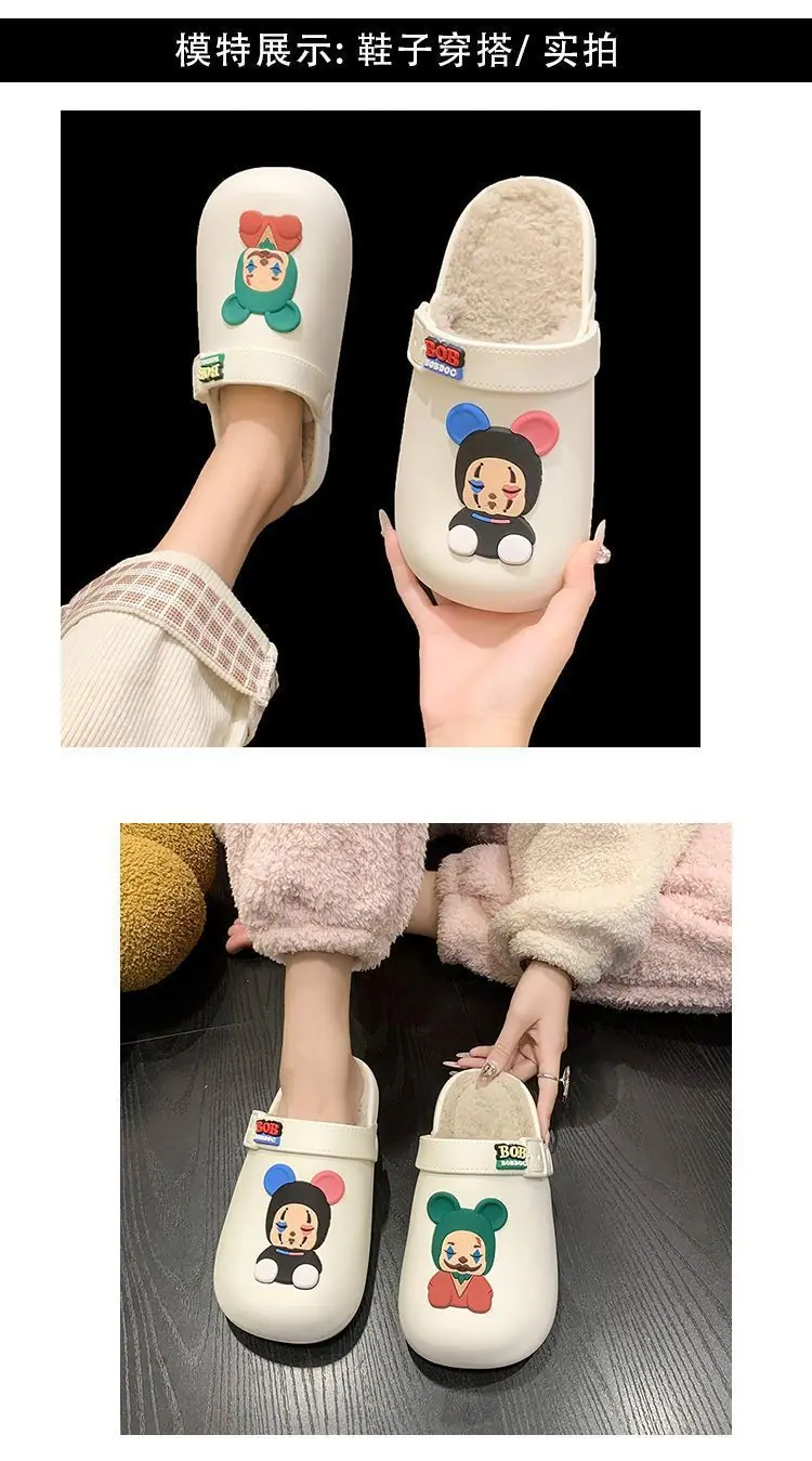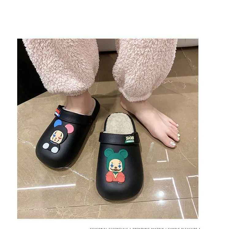 Pantuflas de algodón más pantuflas peludas de terciopelo pantuflas de punta cerrada invierno exterior cálido 2025 antideslizantes nuevo dibujo animado interior hogar