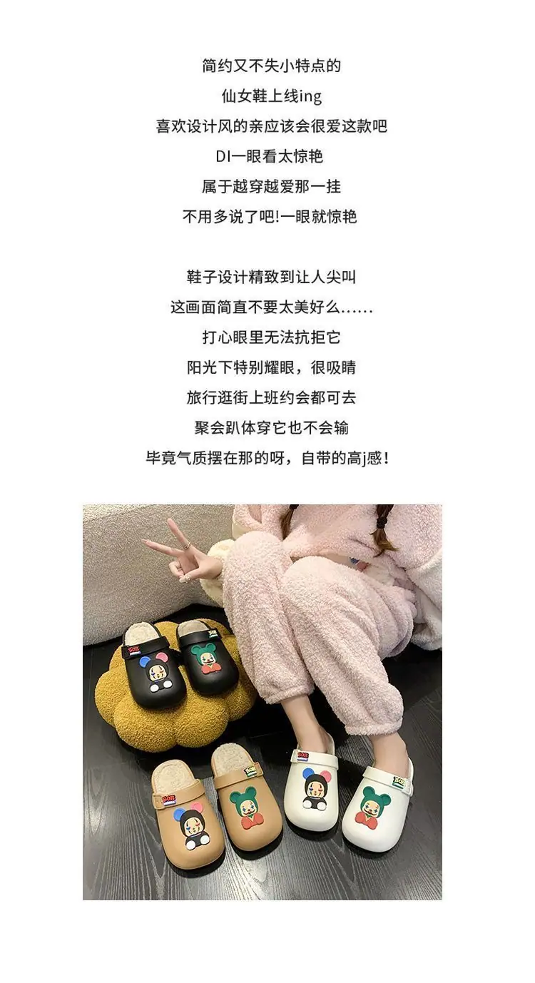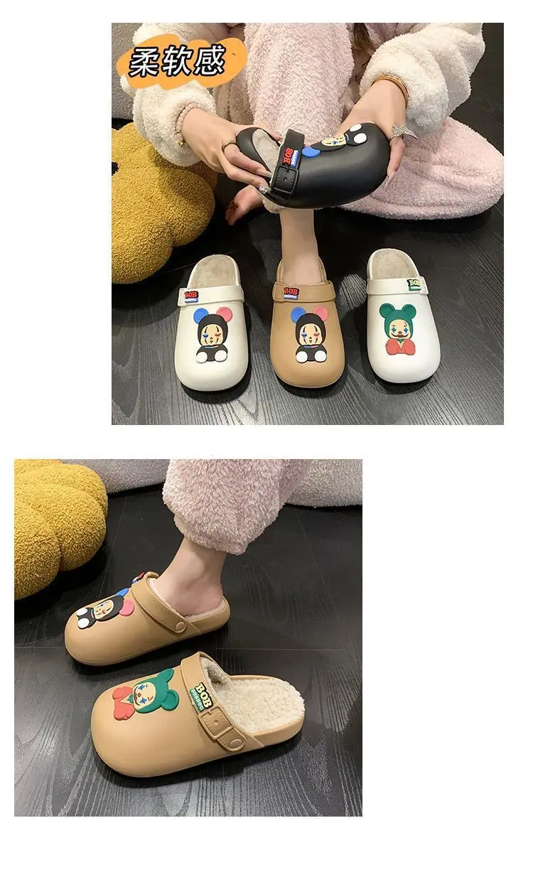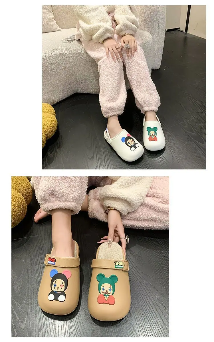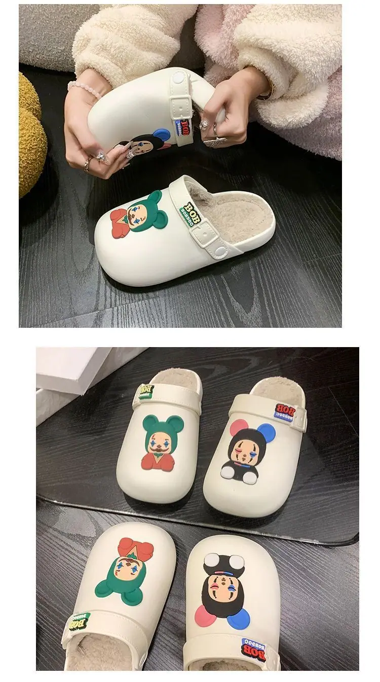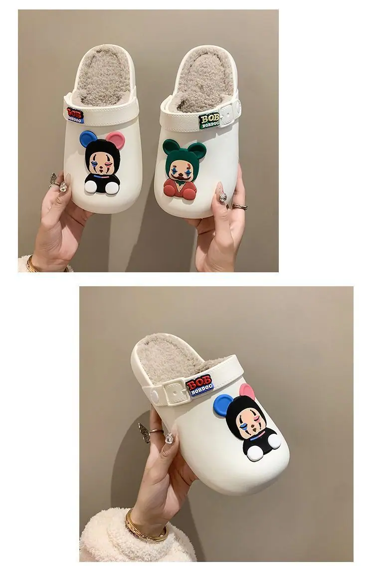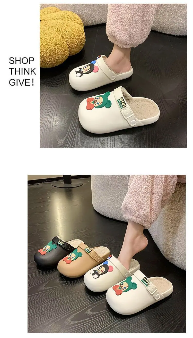 Pantuflas de algodón más pantuflas peludas de terciopelo pantuflas de punta cerrada invierno exterior cálido 2025 antideslizantes nuevo dibujo animado interior hogar